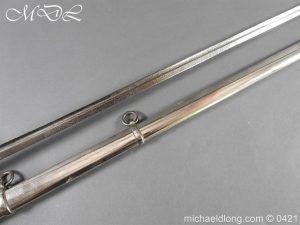 10th Hussars Officer’s Sword by Wilkinson Sword No 60662 special regulation pattern for the 10th Hussars, basically a 1912 sword but with a 3 bar hilt. The straight blade engraved with GRV to one side the reverse with regimental badge and X Royal Hussars complete with parade scabbard. For reference, please see Swords of the British Army by Brian Robson page 102
