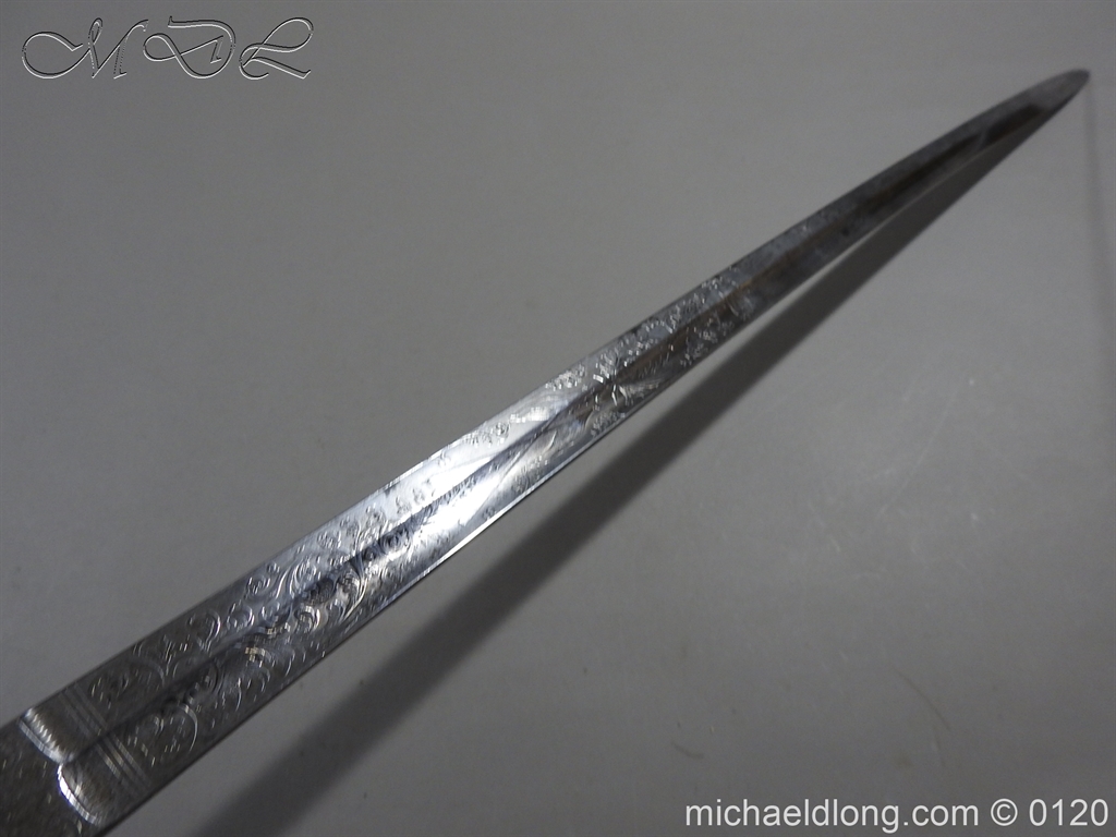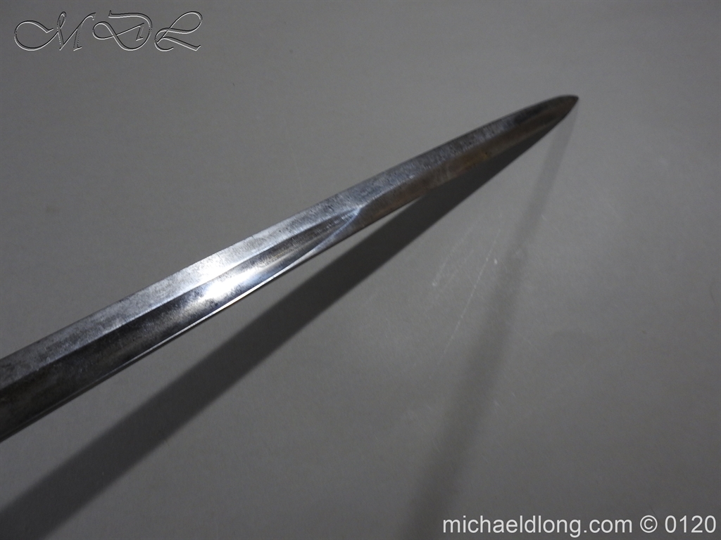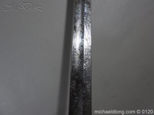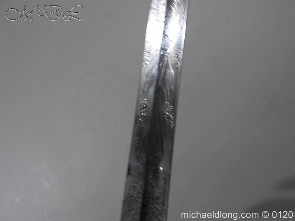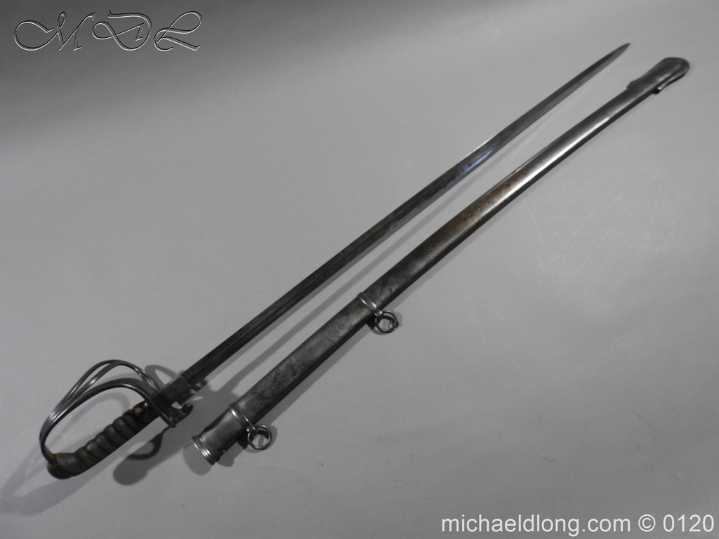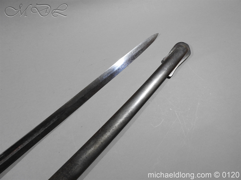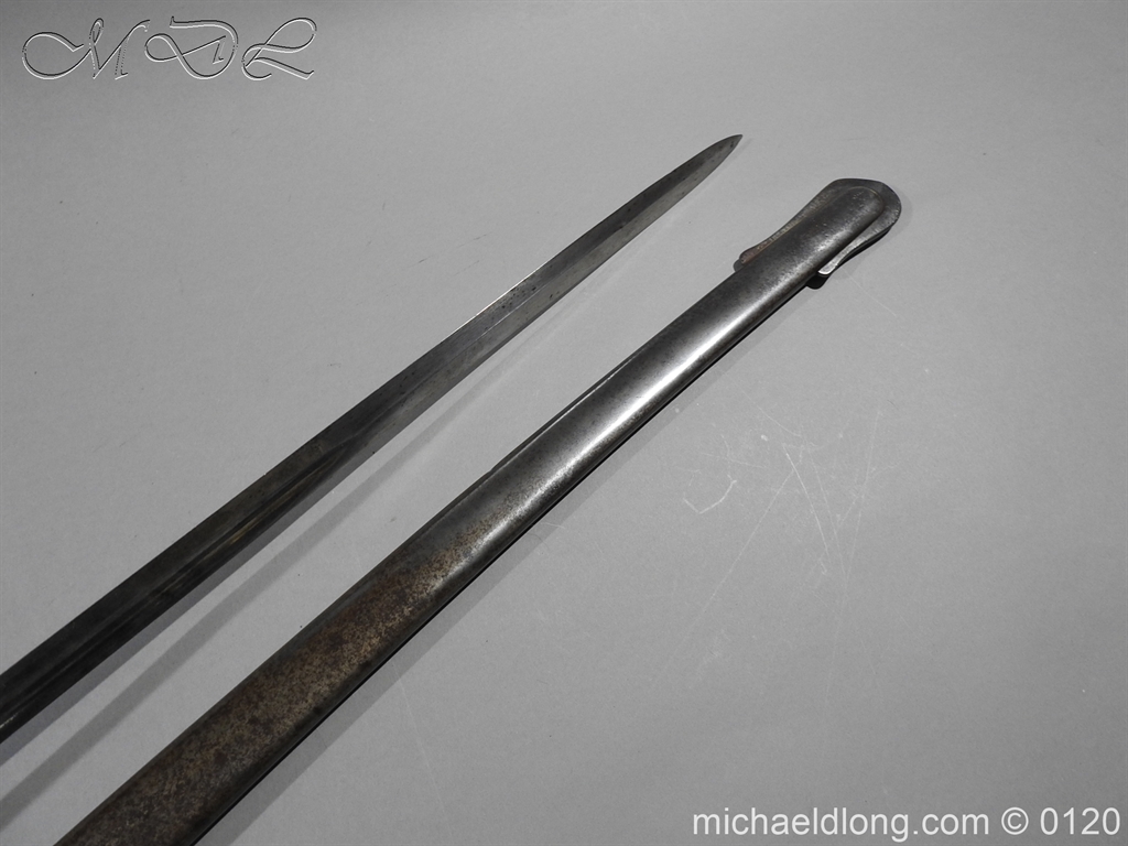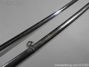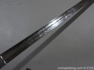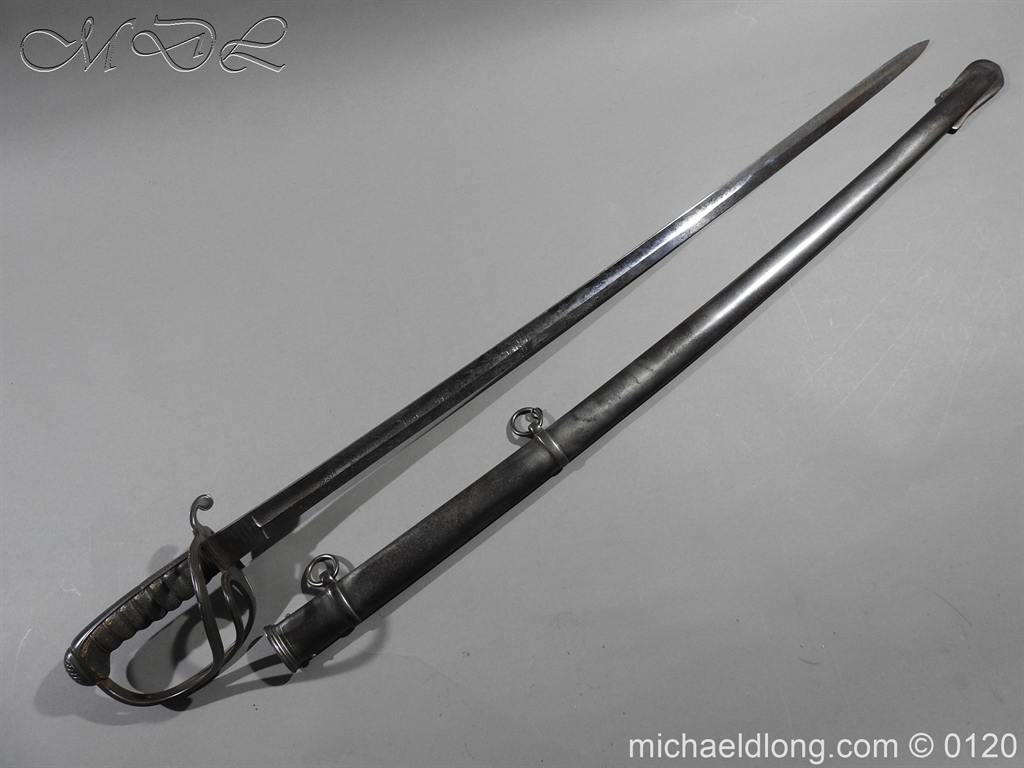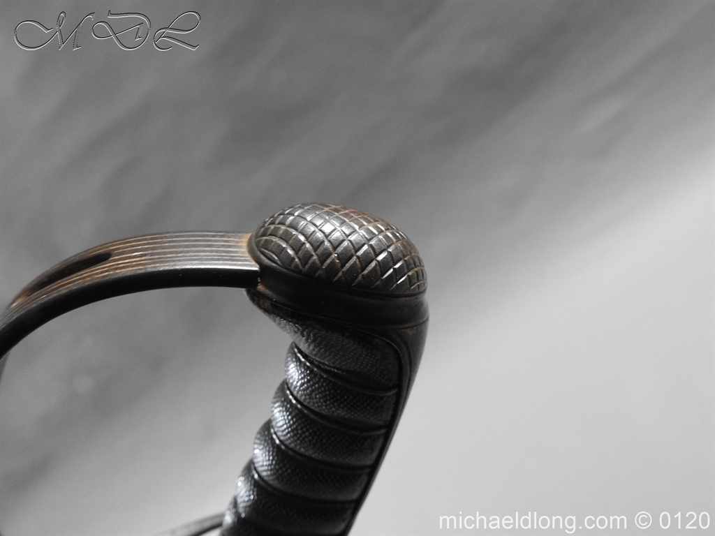 15th Hussars Victorian Officer’s Sword 1821 pattern regulation three bar hilt chequered pommel and fish skin grip. The blade in good condition engraved with XV Hussars crossed lancer, VR and Crown plus owner initials and crest further research needed. Marked Johnston London – Dawson’s Dublin complete with steel scabbard