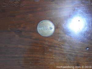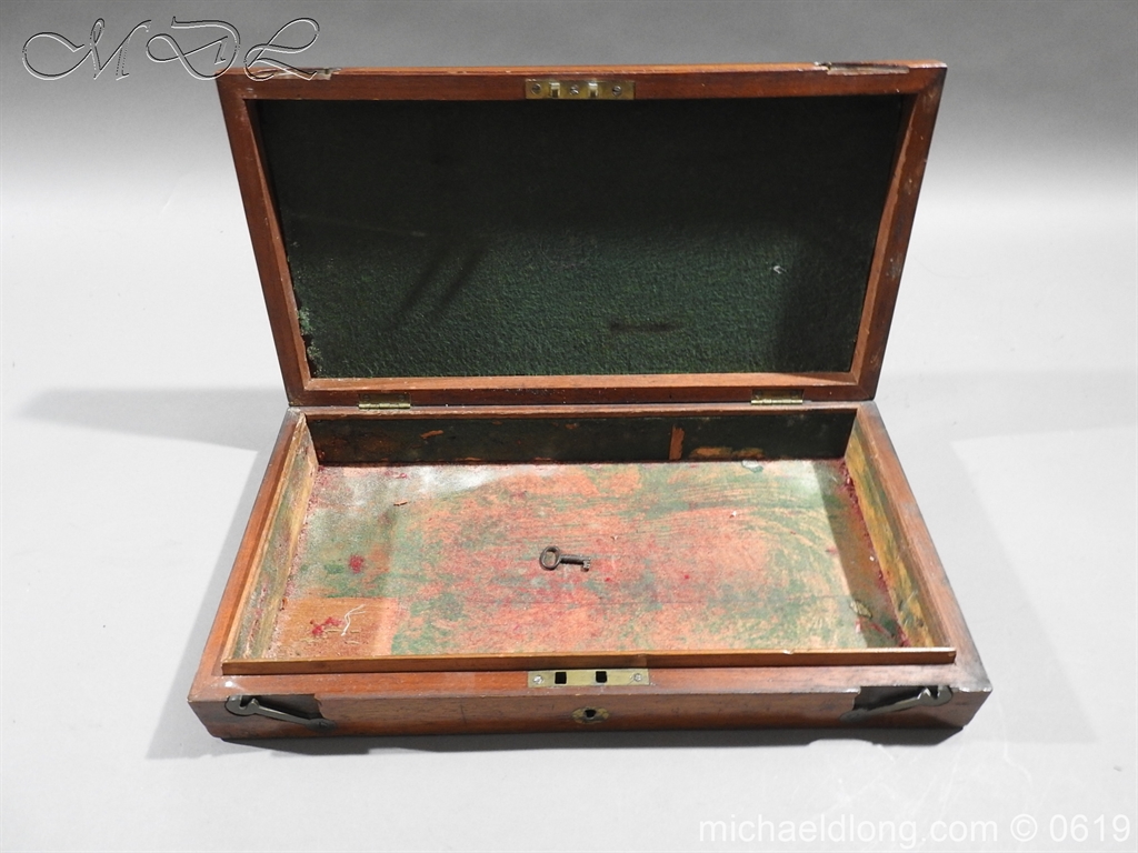 Excellent box with original key no internal partition brass furniture age wear only size 37.5cm x 20cm x 6.5cm Brass escutcheon to lip with initials W L S