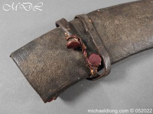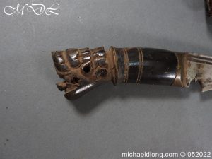 19th century Kukri or Khukuri with the hilt curved into a animals head complete with original leather bound scabbard overall length 41cm the blade 31cm