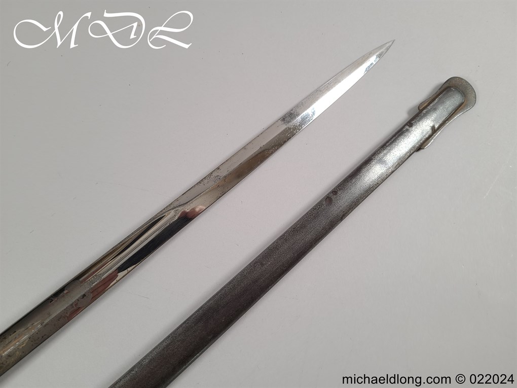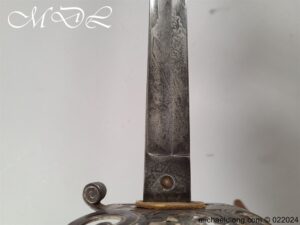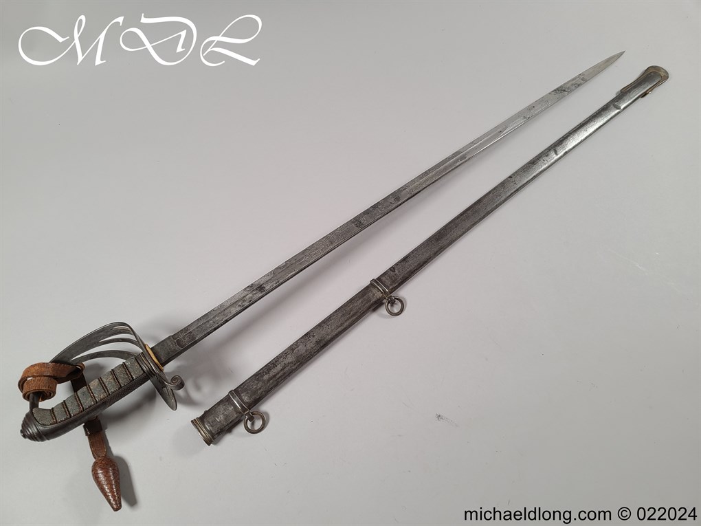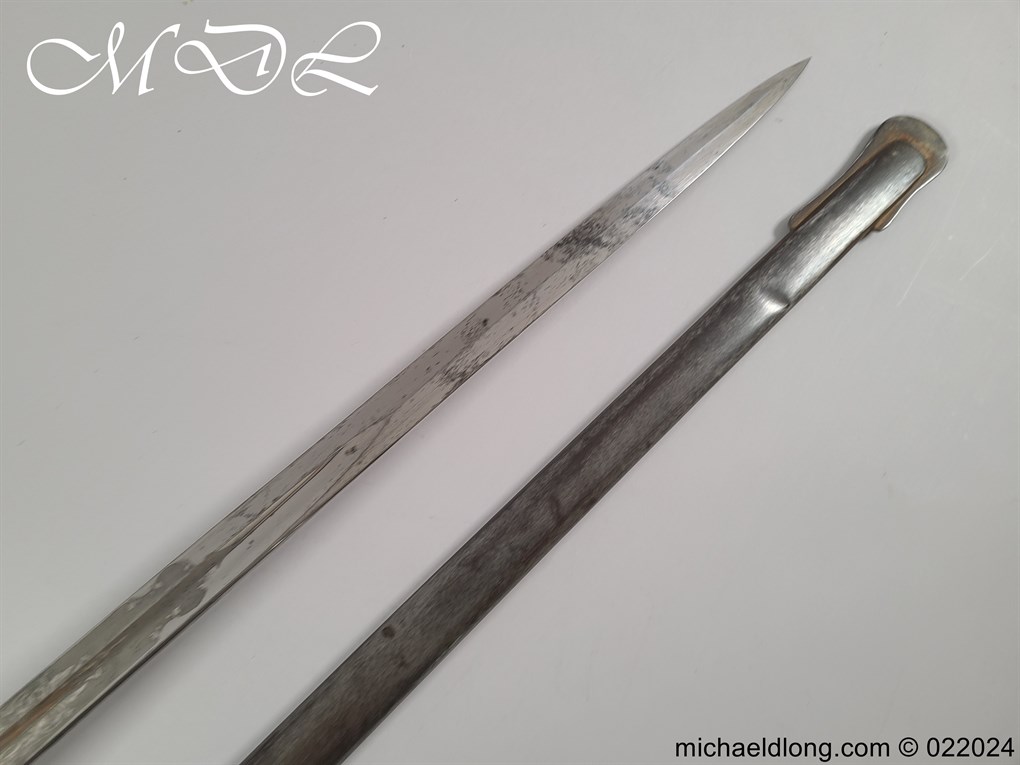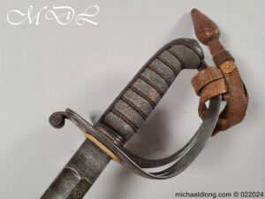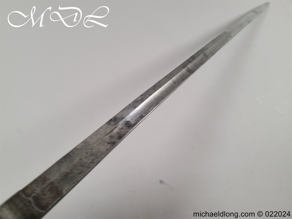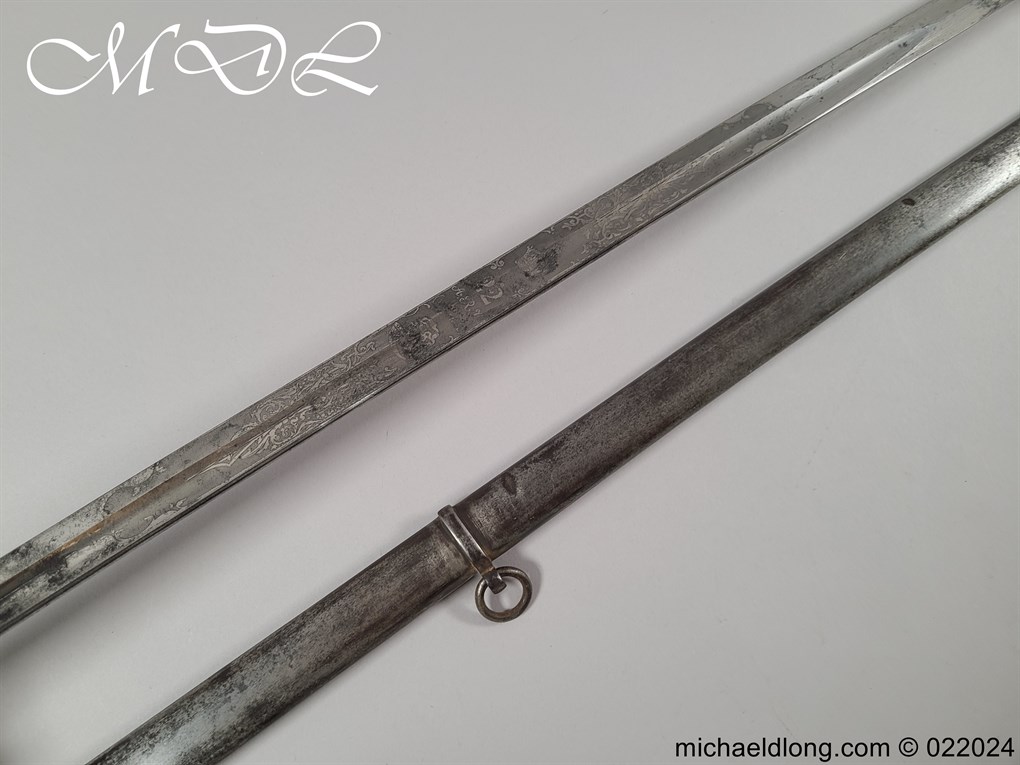 Victorian 22nd Auchmull Rifle Volunteers Officers Sword named to Andrew Smith. Regulation hilt with slung bugle and Victorian crown, fish skin grip, service knot and stepped pommel. The blade well etched with crown and bugle to one side the reverse with crown 22nd ARV and below Auchmull. Marked Hobson and son London and complete with steel scabbard, overall length 98cm the blade 82.5cm