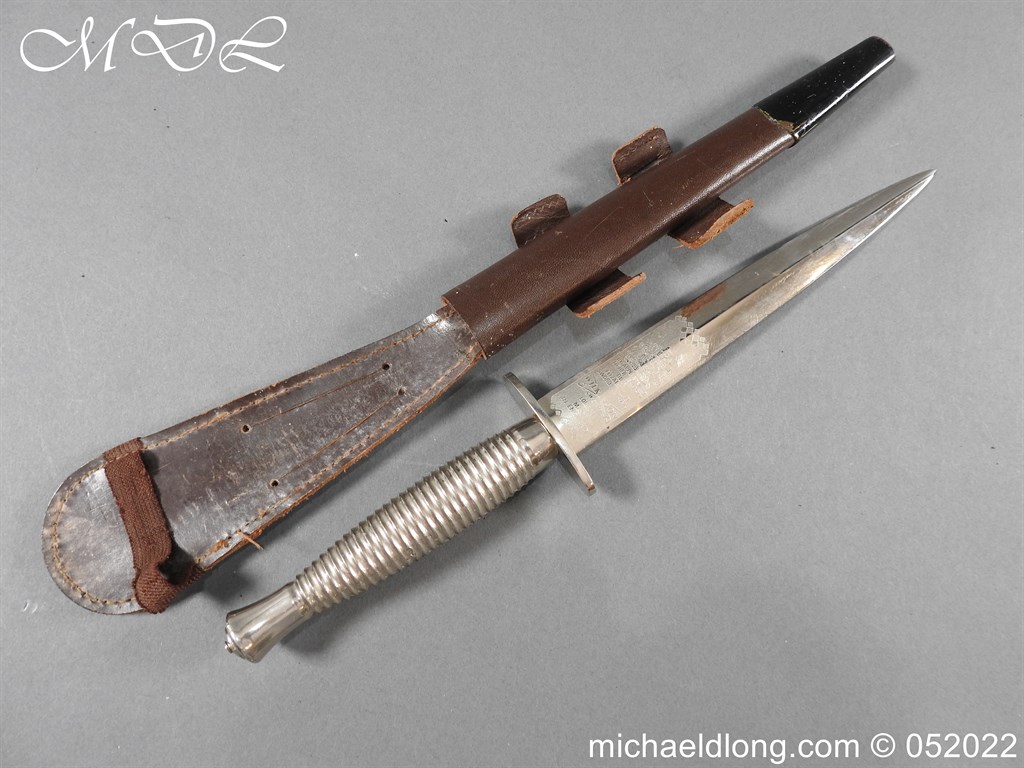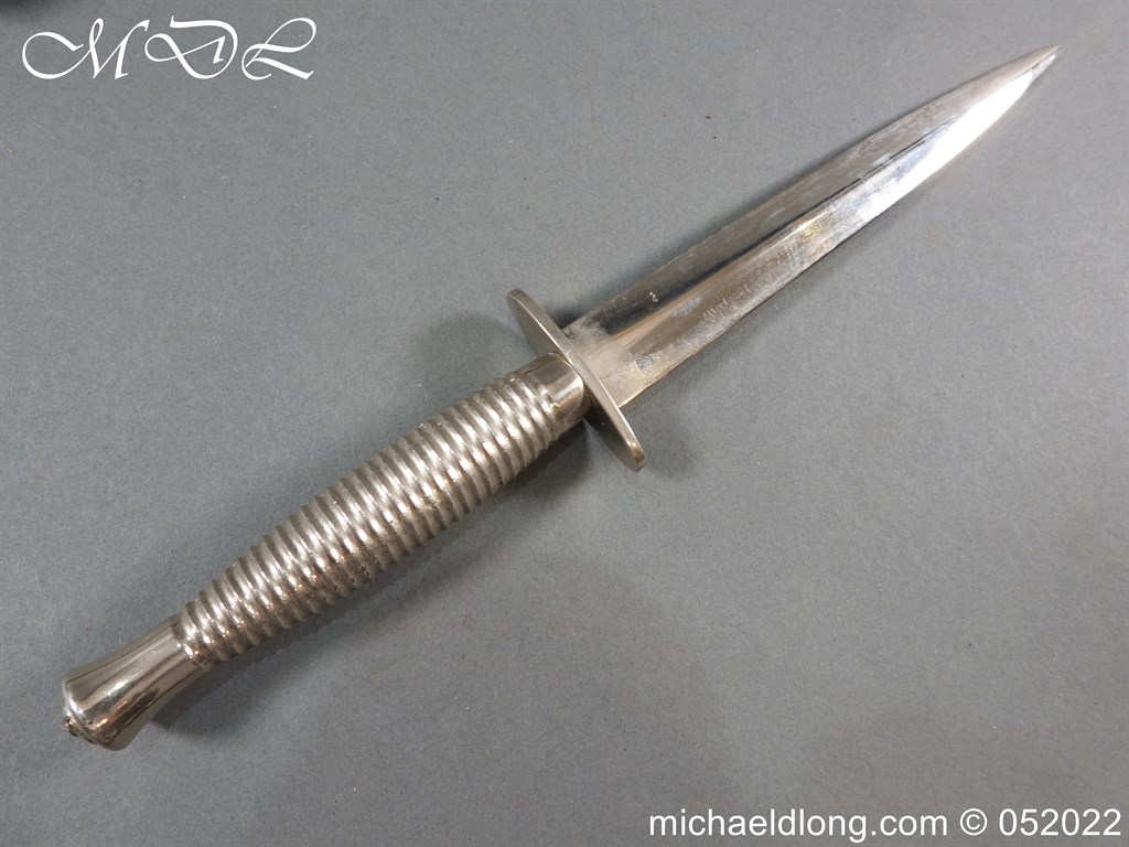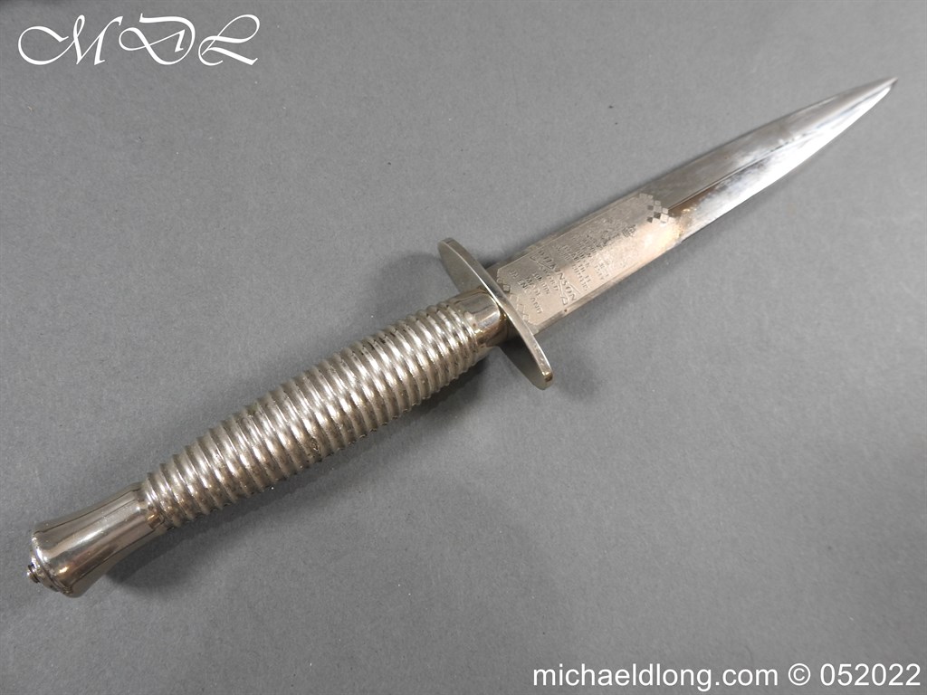 3rd Pattern Fairbairn Sykes FS Fighting Knife by Wilkinson Sword plated with engraved blade