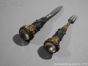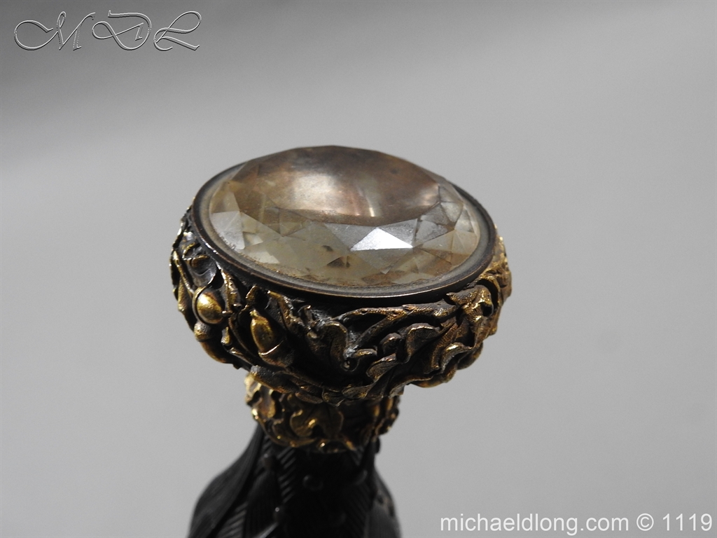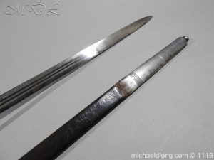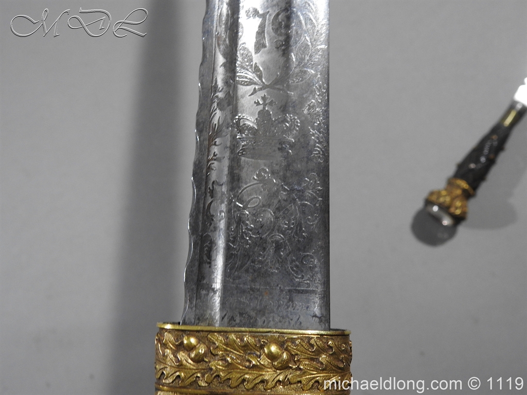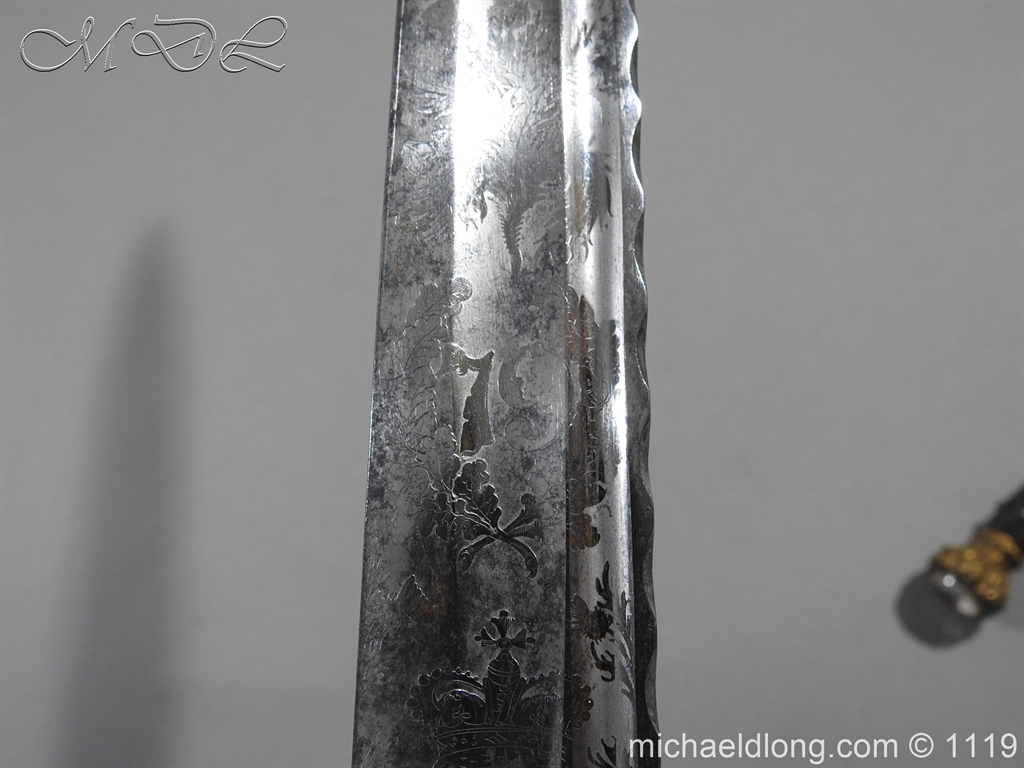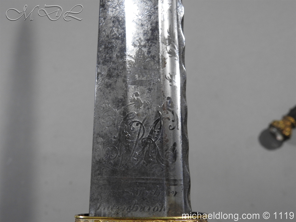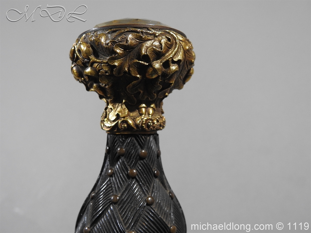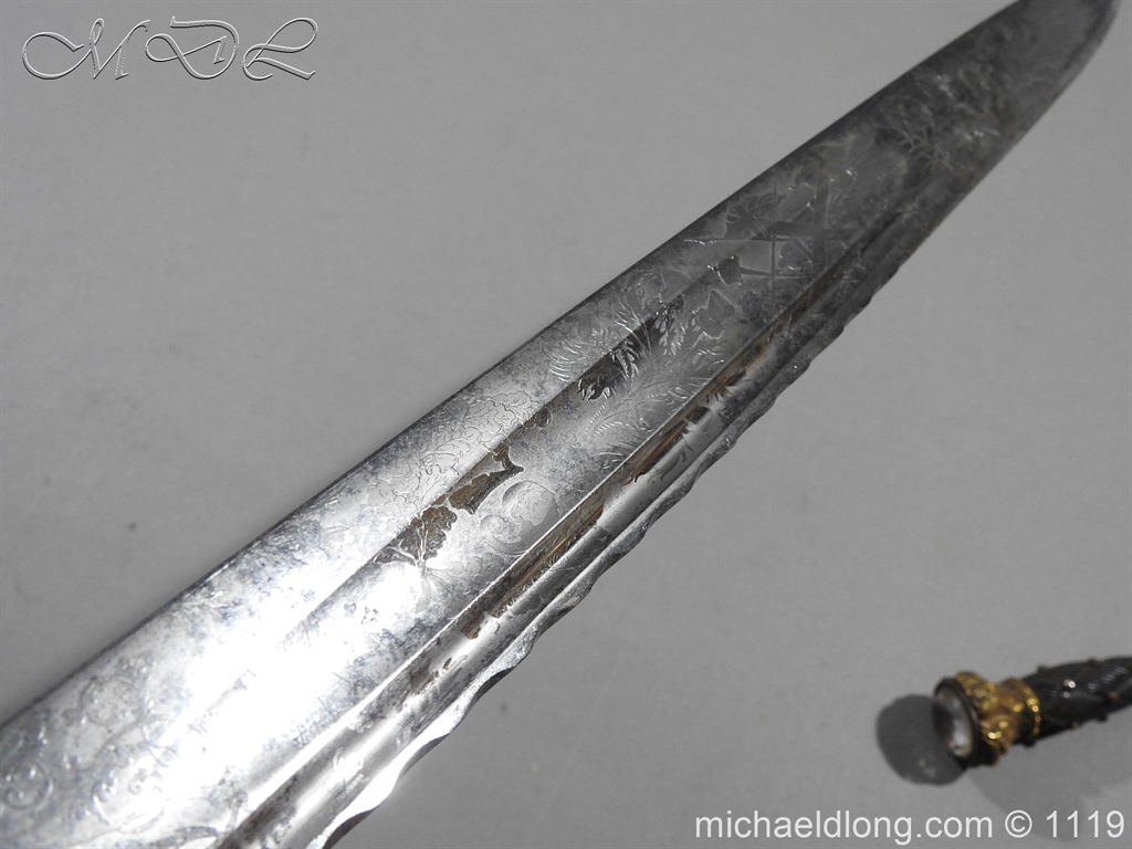 A charming collection of one officer’s items consisting of hi broadsword which retains it’s liner, fringe to the basket hilt and it’s black leather scabbard with steel mounts. 79th Highlanders dirk with etched blade heavy thistle ornamented gilt mounts to scabbard, bogwood grip terminating in heavy oakleaf decoration and foiled citrine with matching knife and fork. 79th large gilt sporran cantle bearing the battle honours Peninsula Egypt Waterloo Plaid or kilt pin in the form of a small basket hilted sword, his shoulder belt plate, plaide brooch, gilt glengarry style whistle boss, bronzed glengarry badge, white metal larger glengarry badge plus his Crimea Medal with clasp Sebastopol named to Captain Harry Murray 79th Highlanders. Together with a full length watercolour study of the captain in his 79th Highlanders uniform showing clearly all the above items signed and dated 1848 Sword and dirk matching Edinburgh makers