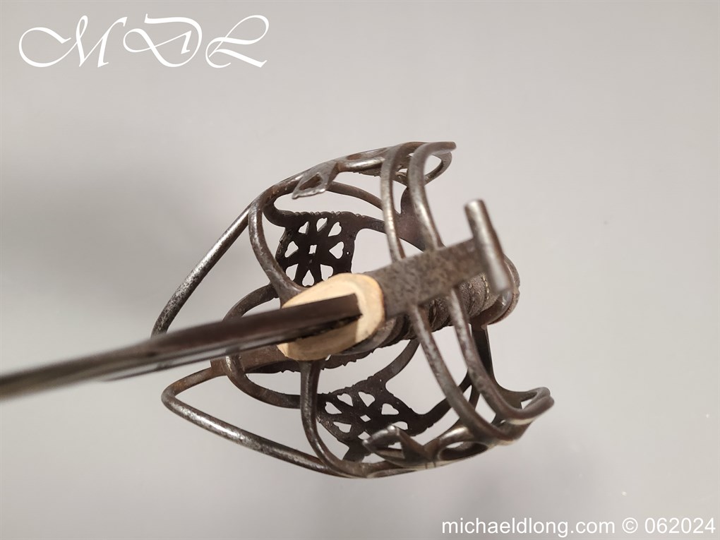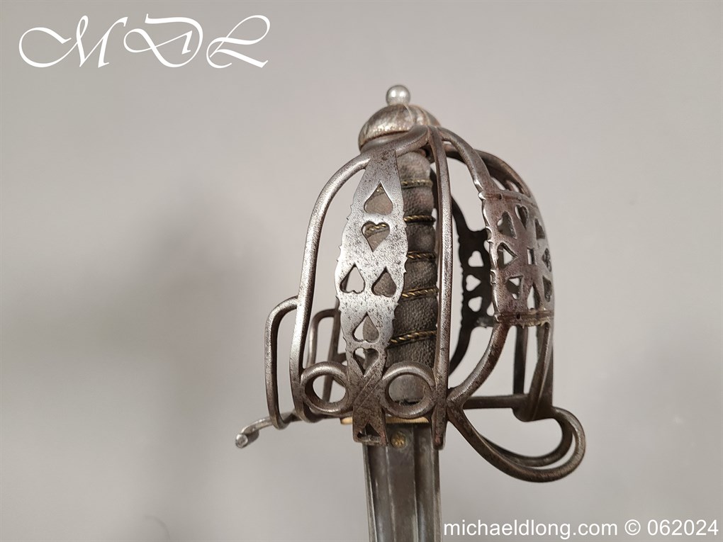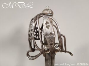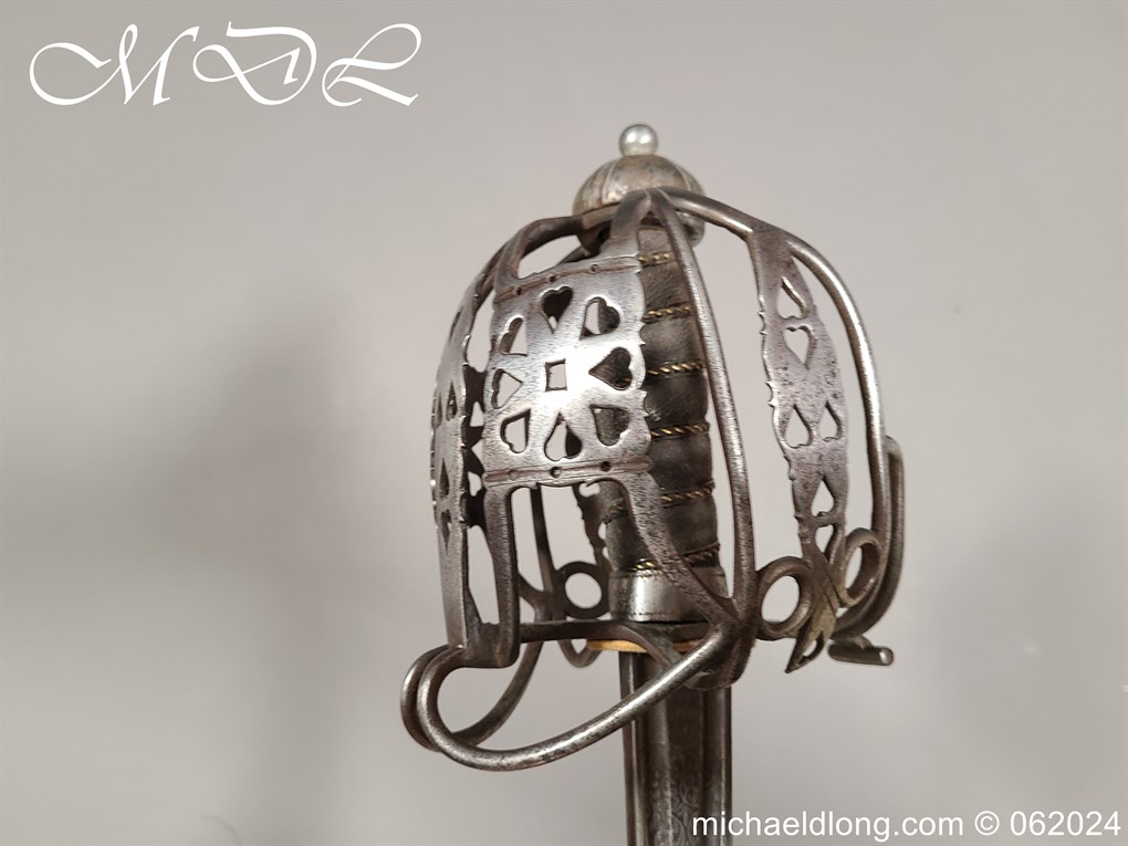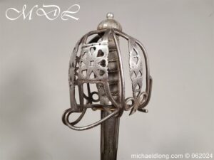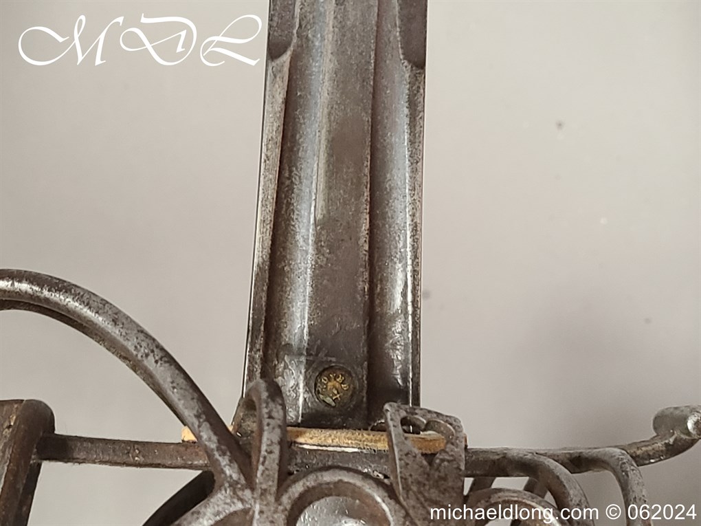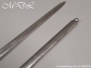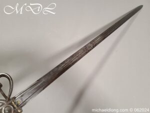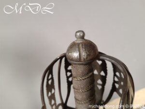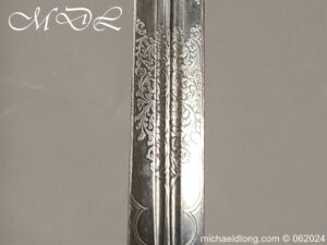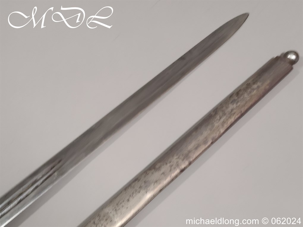 Aberdeenshire Highlanders Victorian Officers Sword, early example regulation basket with fish skin grip secured with twisted brass wire. The blade broad sword with deep engraving one side V R and Crown the reverse with Aberdeenshire Highlanders and regimental badge and Meyer Dublin. Complete with steel scabbard with two loose rings. Overall length 98cm the blade 82cm