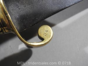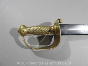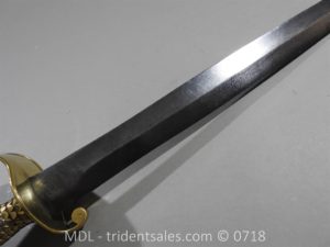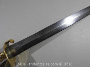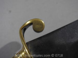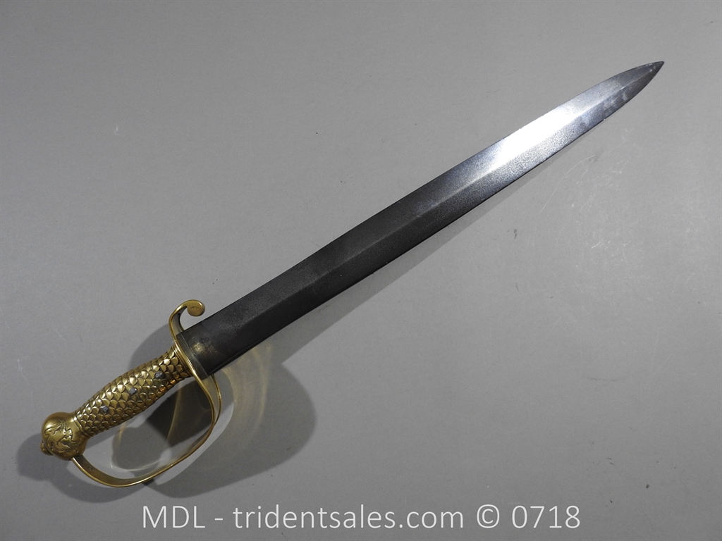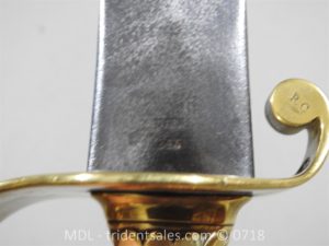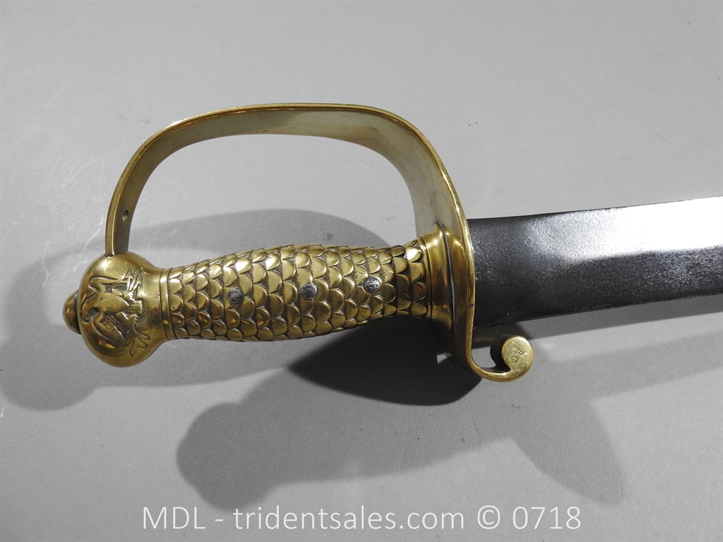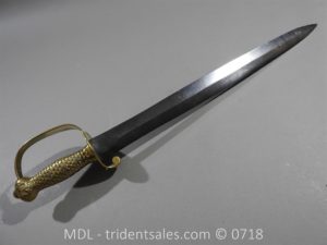 By N. P. Ames, Massachusetts. All brass hilt and guard. Guard quillon marked R.C. ( Rufus Chandler and Joseph Lenmand ,Ames Inspectors) and on the reverse J. L. in an oval panel. Guard flat stamped C4 or 64. Steel blade marked N. P. Ames over Springfield, other side USN over 1845 over R. Length. 672 mm Blade 534 mm