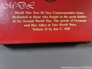 World War Two Commemorative issue No 27 The Pistols of Germany and Her Allies in Two World Wars, Volume. Third Printing with Update, 360 pages. Covered are the Army, Luftwaffe, Kreigsmarine, Police and NSDAP pistols of Nazi Germany, and the pistols of her Axis allies: Italy, Hungary, Romania, Croatia, Slovakia, and Finland. Historic background is also covered. These pistols were used by the Axis powers in their drive to conquer the world and saw actin in the great battles of World War II. A summary fold-out map shows this rich array of pistols distributed across the world at war and battle photographs show these pistols in action. Over 300 Axis pistol variations from 20 nations are described in detail with 600 photographs. Very Scarce and highly sought after important reference for collectors of these handguns. In new condition