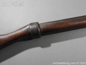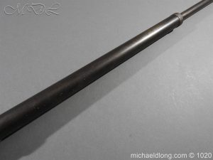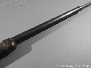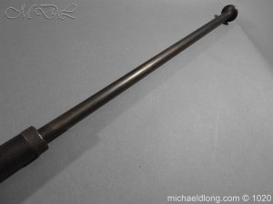 M1915 bayonet training rifle constructed like a rifle with wood stock and cup steel butt plate the action and barrel are just a tube, with wooden fore stock, containing a large coil spring into which a floating steel rod is secured with a steel disk to the front all in good working order, on contact with an opponent the rod compresses into the tube simulating bayonet combat.