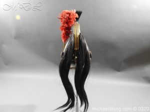 scales and rosettes bearing a white metal grenade, falling black hair plume at the back and red feather plume to left side and leather lining dated 1851 with a V and 3 to rear of skull