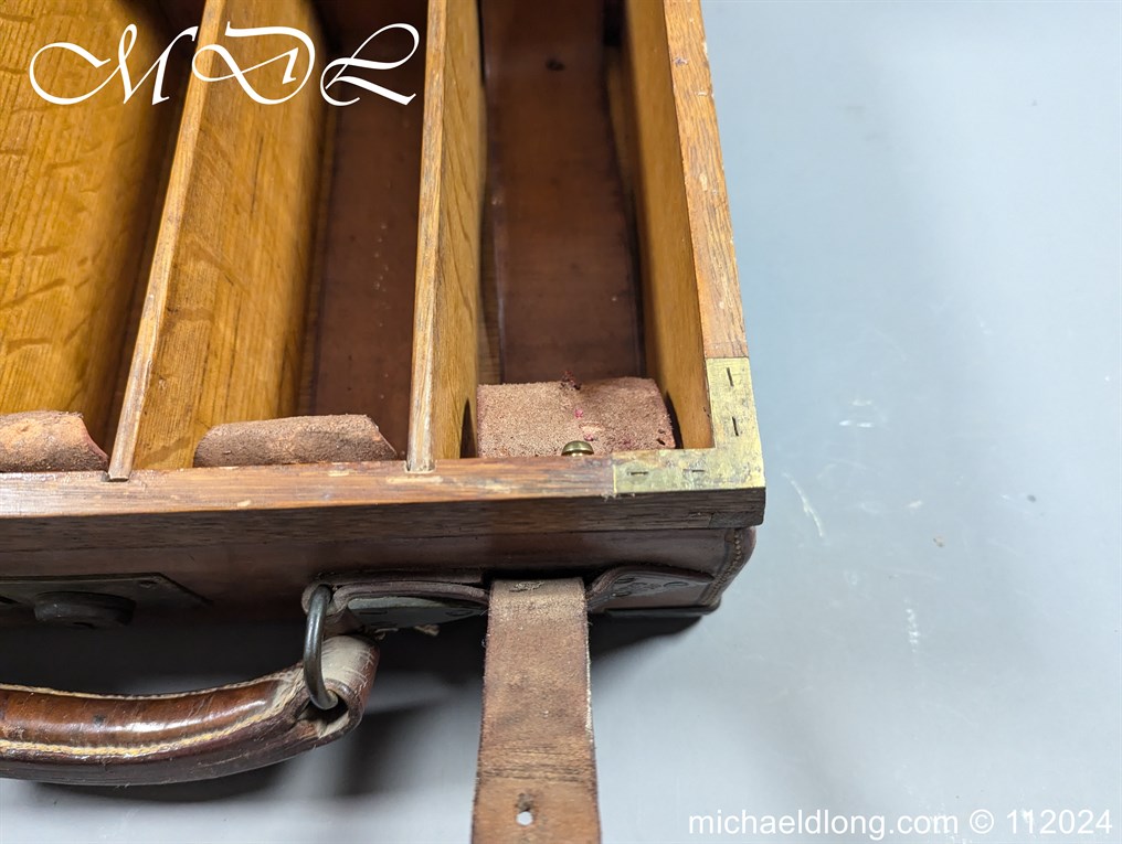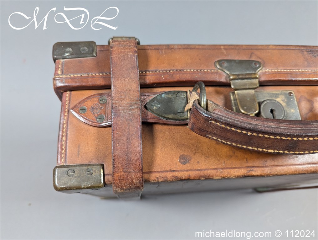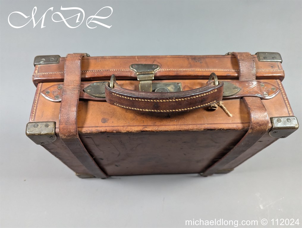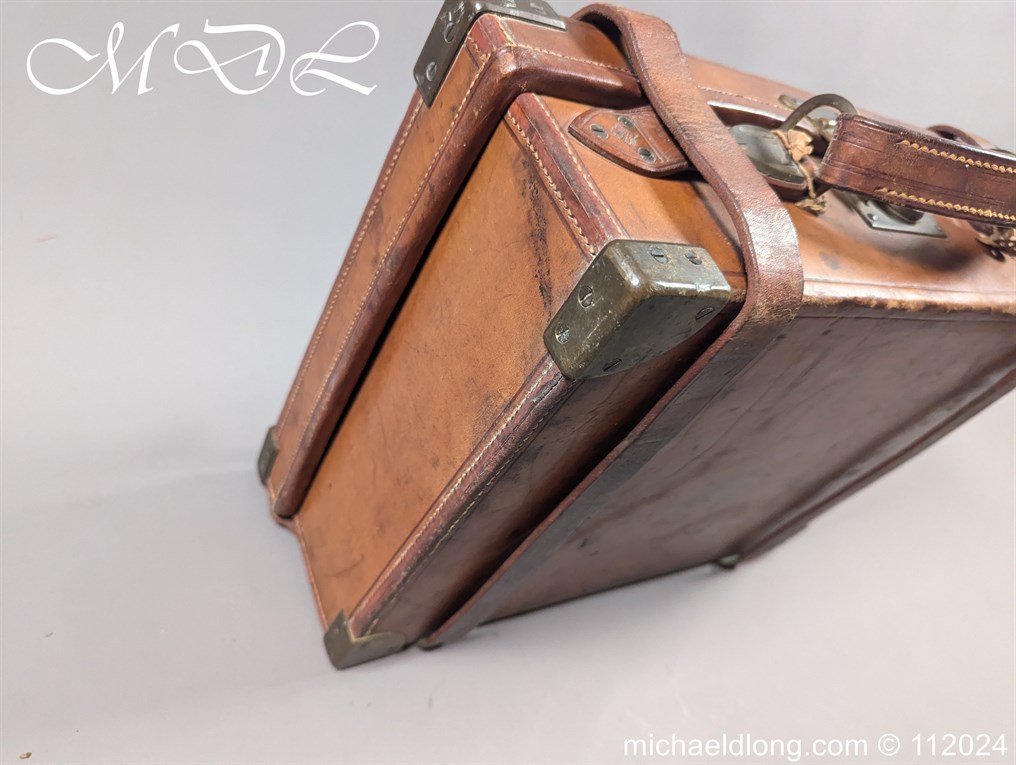 Boss and Co Brass Mounted Leather Cartridge Magazine, totally original looks like it has had no use or very little. The leather work is in overall good condition with age wear and the internal with wear to the red lining but all strap good no key. Would think it would hold 250 cartridges, overall size 40cm x 30cm x 15cm