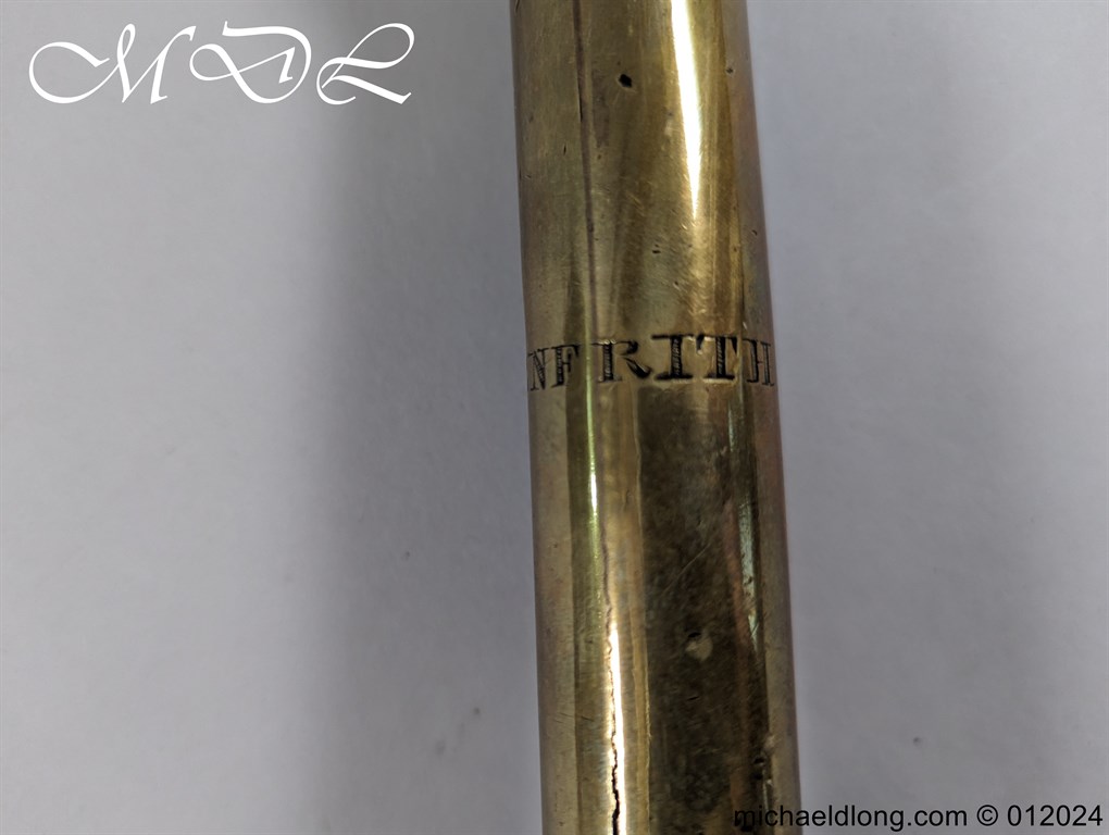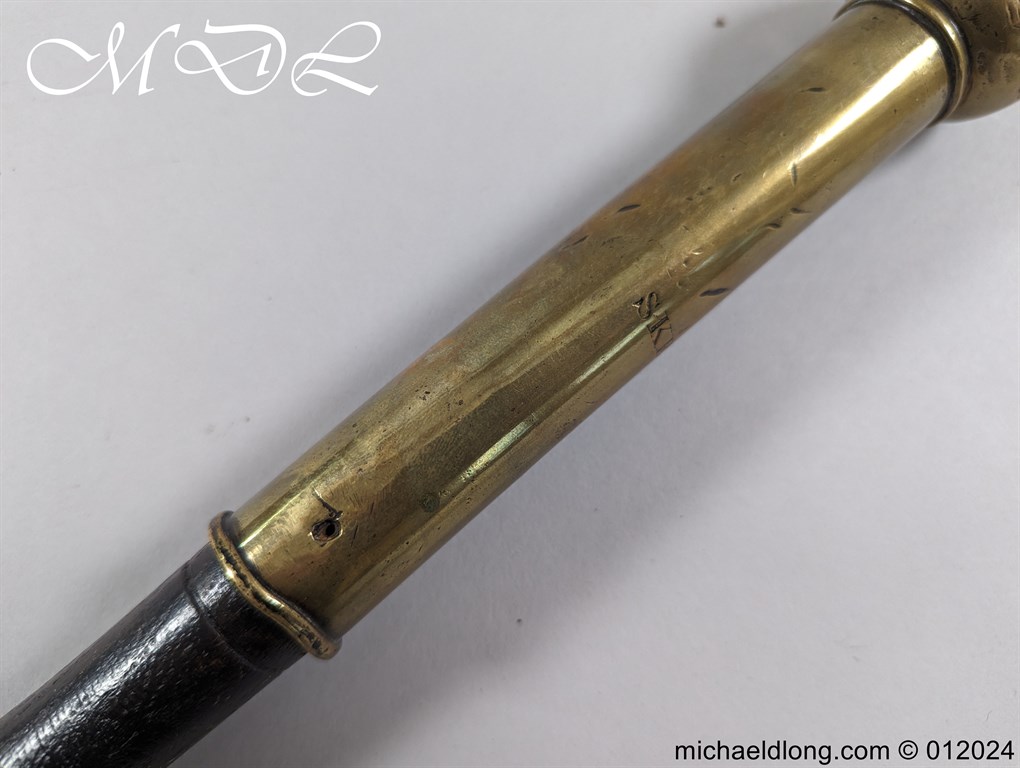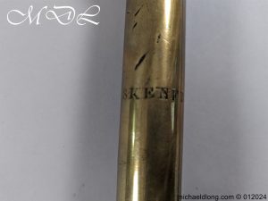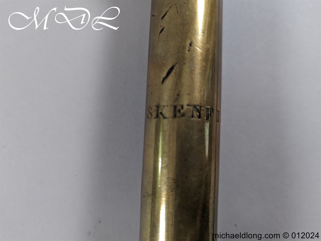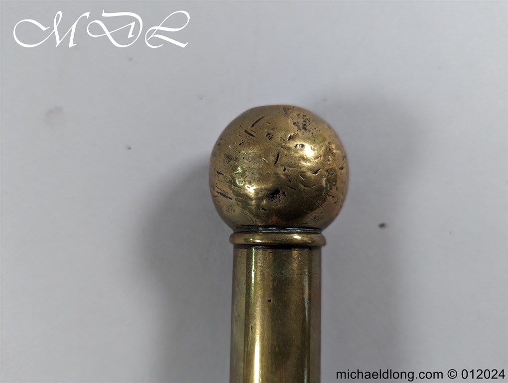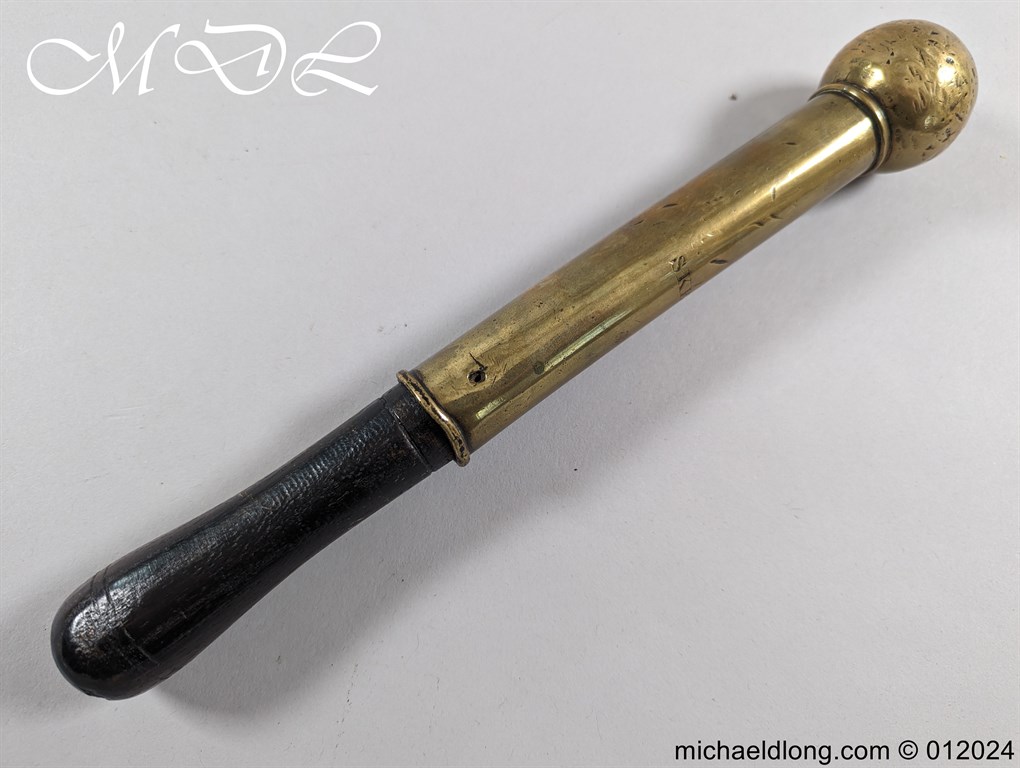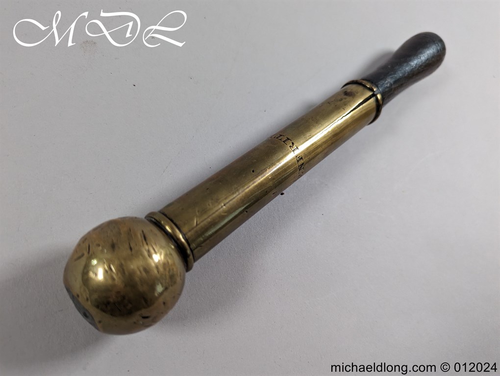 Brass 19th Century Skenfrith Tipstaff – Monmouthshire, brass ball filled with lead with matching shaft which is engraved Skenfrith complete with turned wooden handle overall length 28.5cm