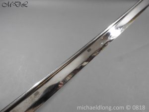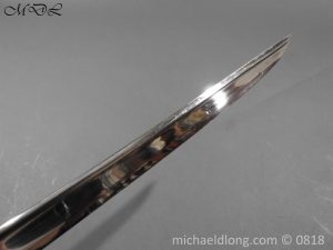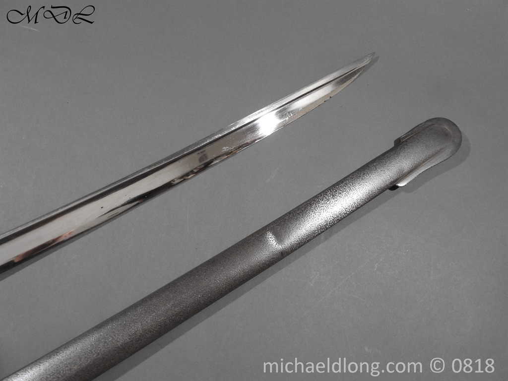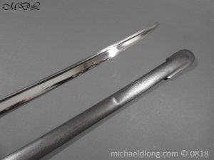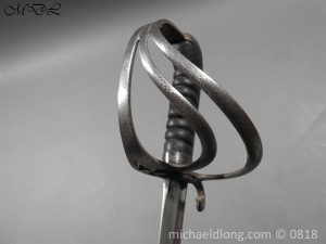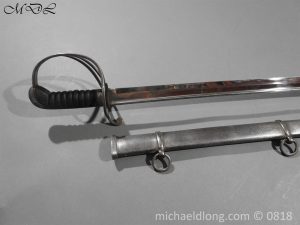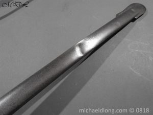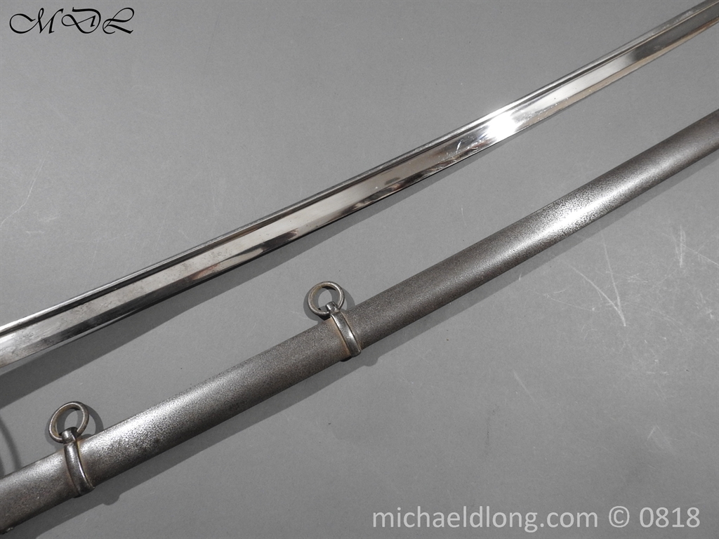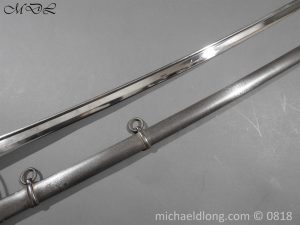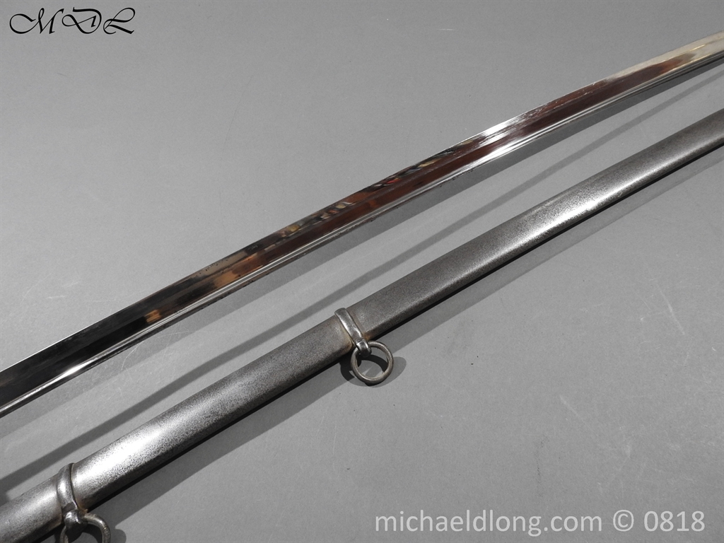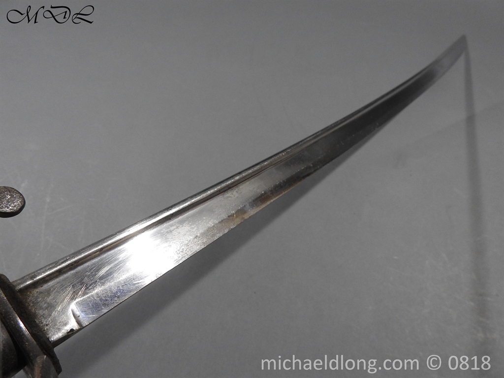 1821 pattern trooper sword, leather covered wooden grip, 3 bar guard with smooth dome pommel. The single edged pipe backed blade curved blade complete with steel scabbard Dimensions: Blade Length: 90 cm – Overall Length: 104 cm