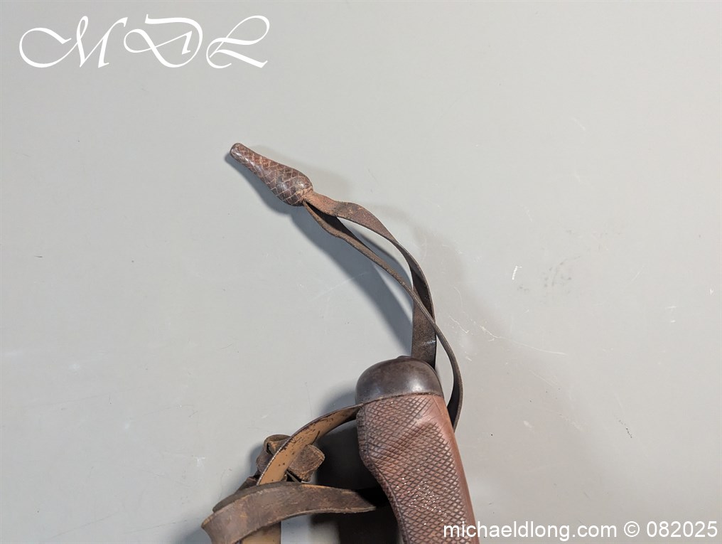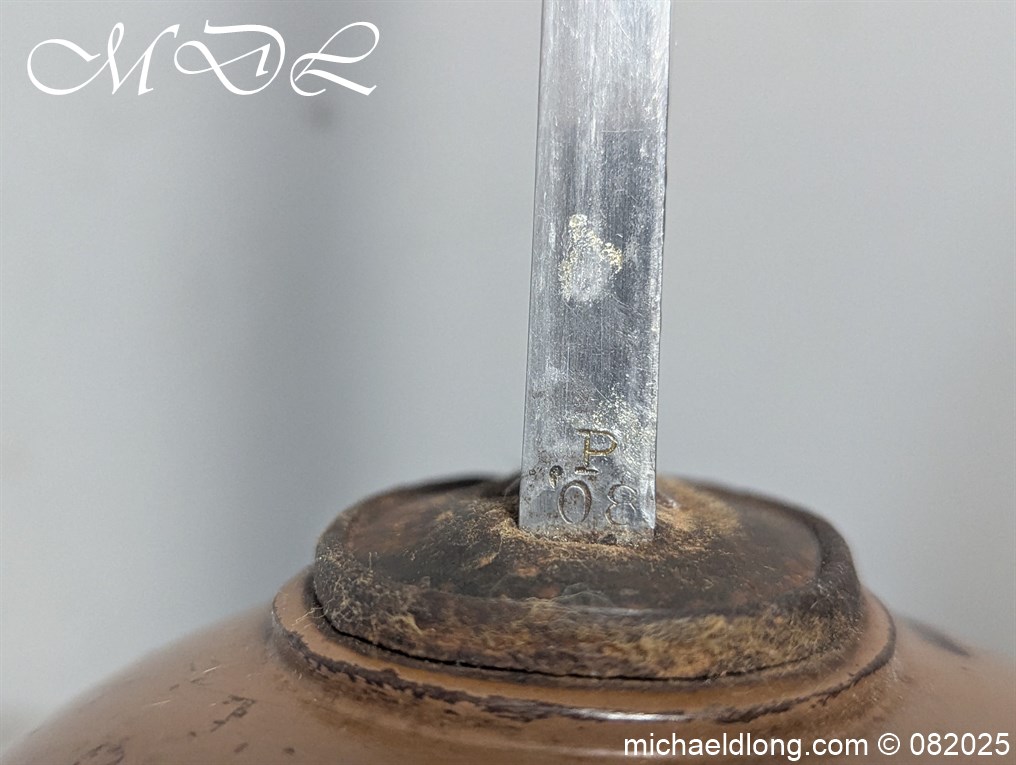British 7th Hussars 1908 Troopers Sword by Wilkinson excellent example regulation sword and original paint. The blade marked Wilkinson with issue and inspection marks as is the scabbard but it is also stamped 7H 735. No damage to sword or scabbard and nice age wear to paint complete with service knot and leather strap maker marked and dated 1916, totally original sword super example.