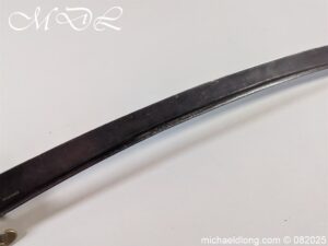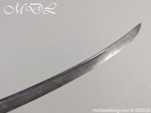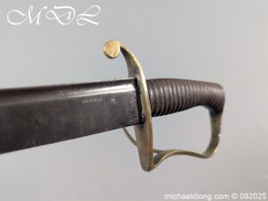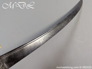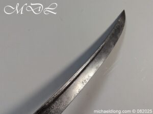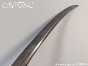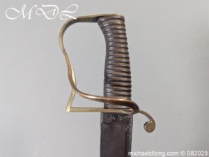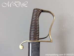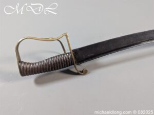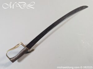 Very similar to a British Army Hospital Corps Sword c 1861 slightly curved blade with flat back and narrow top fuller however maker marked Enfield with GR and crown. It has been indicated to me that these were initially issued for use by Coast Guard c 1800 and later re-issued to the British Army in 1861 from surplus stock, adopted as a sword to be carried by British Army Hospital Corp Privates Brass hilt with side guard and cast ribbed grip overall length 29.5 inch the blade 25 inch