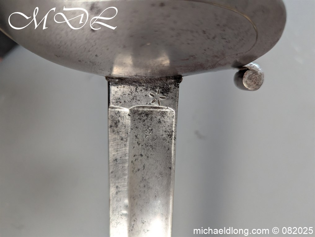British Heavy Cavalry 1821 Pattern Troopers Sword slightly curved blade with single wide fuller, spine marked Enfield 1838 with a Crown VR plus blade with inspector – issue stamps. Steel bowl guard, guard marked R D Royal Dragoons and E 20 also a star mark which is repeated on the blade leather grip no scabbard overall length 42 inch the blade 36.25 inch Notes: The Royal Dragoons took part in the charge of the heavy brigade at the Battle of Balaclava in October 1854 during the Crimean War.