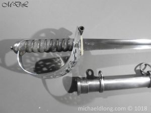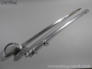 Current regulation Household cavalry troopers sword in excellent condition, polished regulation hilt with wire bound fish skin grip. Slightly curved blade again in super condition with British military stamping and conplete with steel scabbard again with inspection stamps which has been cleaned. Overall length 106cm blade 88cm