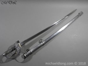Current regulation Household cavalry troopers sword in excellent condition, polished regulation hilt with wire bound fish skin grip. Slightly curved blade again in super condition with British military stamping and conplete with steel scabbard again with inspection stamps which has been cleaned. Overall length 106cm blade 88cm