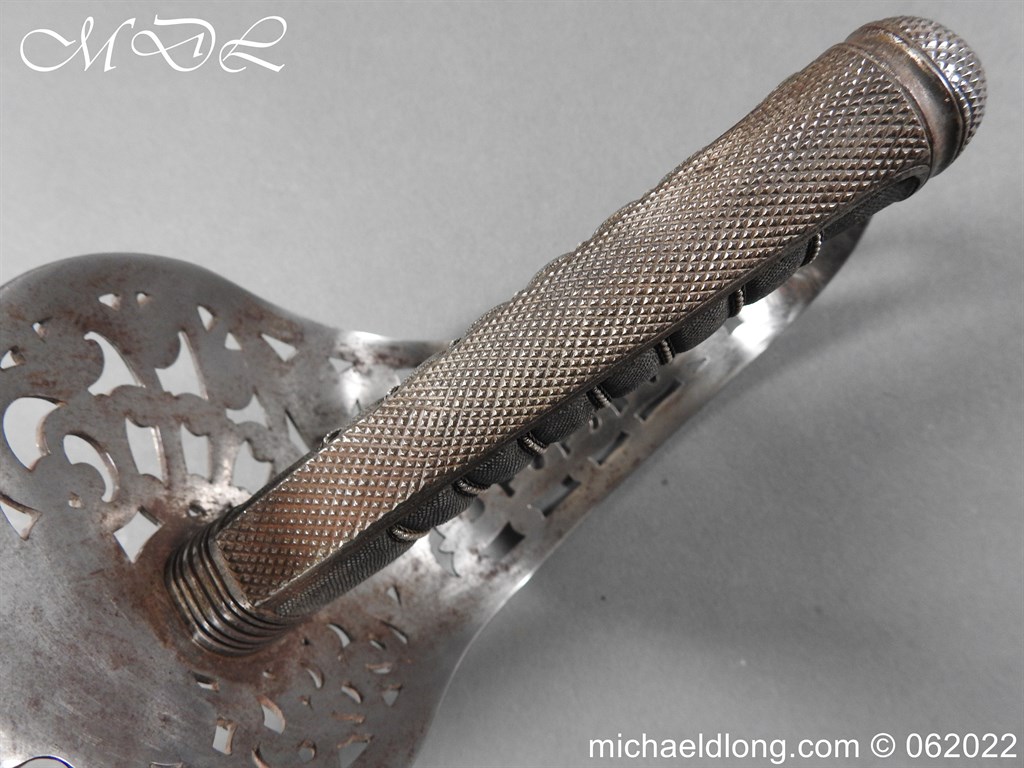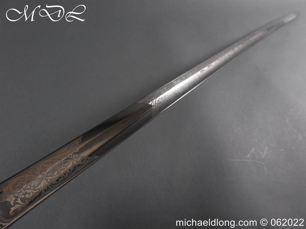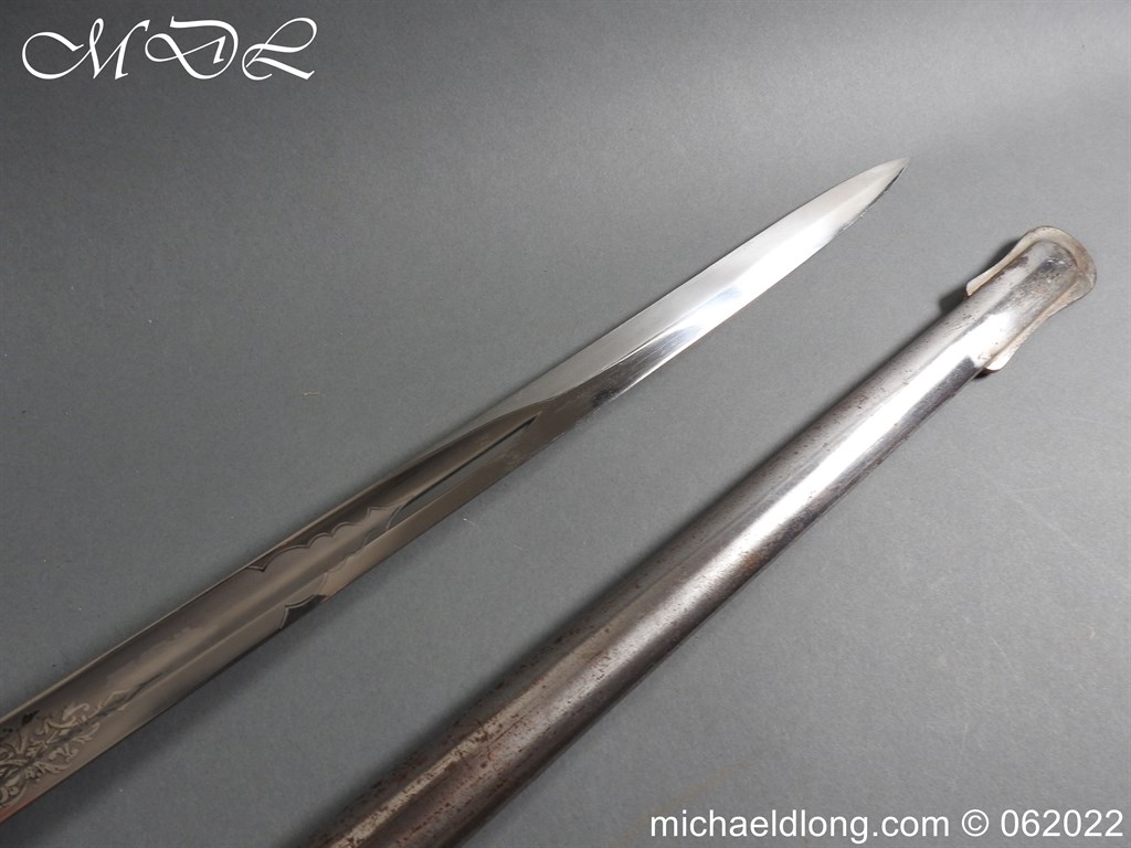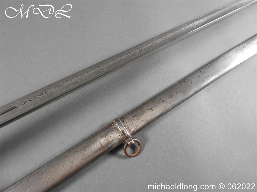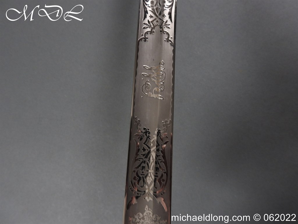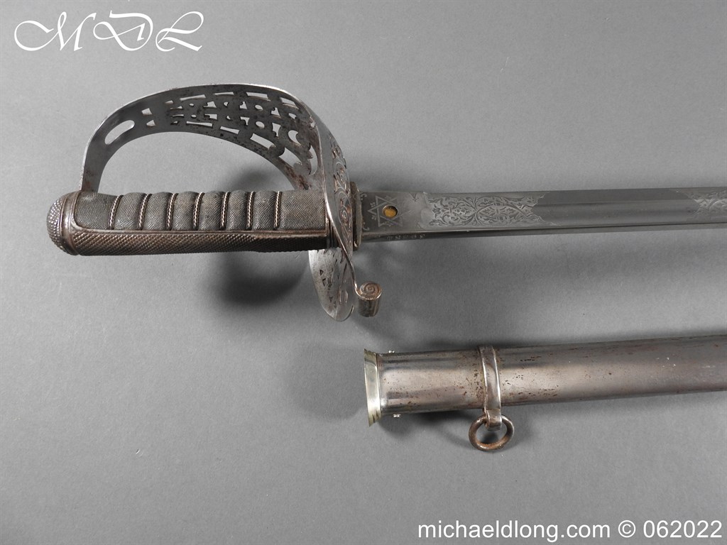 British Officer’s Cavalry Sword By Wilkinson No39354 belonging to Sir William Younger, 1st Baronet, of Auchen Castle. Regulation pattern sword with ladder hilt, chequered pommel and back strap and complete with fish skin grip. The blade in stunning condition with etched ERVII and crown owners initial WY and makers details Henry Wilkinson. Complete with steel scabbard with 2 loose rings. Notes: He was Lieutenant 16th Lancers, Captain Lanarks Yeo, Major Sherwood Rangers (Notts Imperial Yeo), Member of Parliament (M.P.) (C) Stamford and (Lib) Peebles and Selkirkshire Jan–Dec 1910, memb Royal Commn Housing in Scotland 1913–17, Honour Doctor of Law in 1895