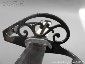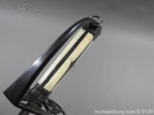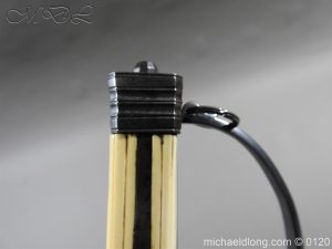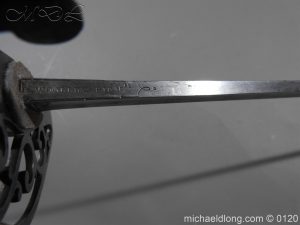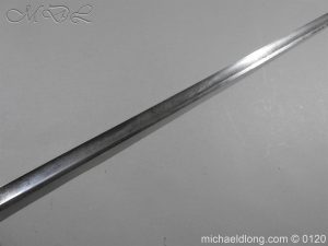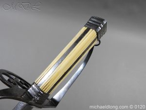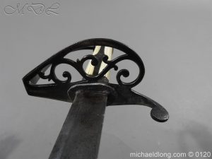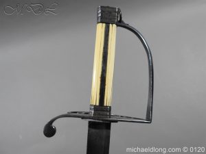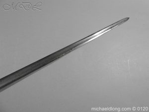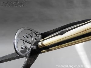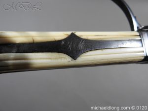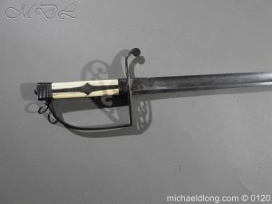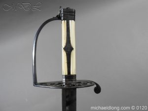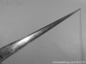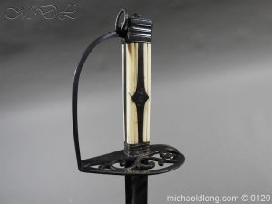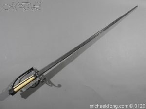 British Officer’s Spadroon with decorative polished steel hilt and side guard. The square section bone grip with steel insert to each side one with the initials DM The blade straight 1796 style infantry single edged with the spine being maker marked Woolley Birm no scabbard. – overall length 98cm blade 83cm