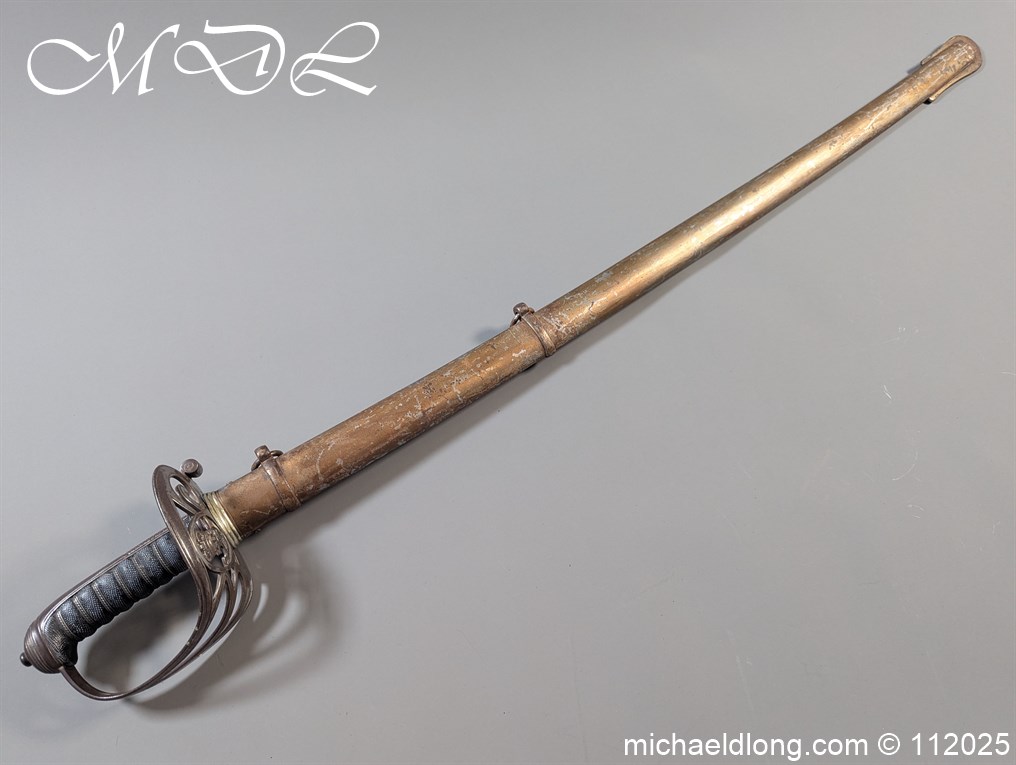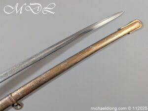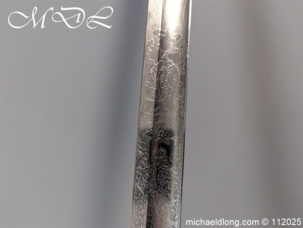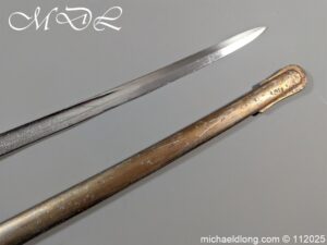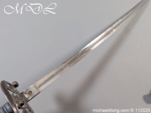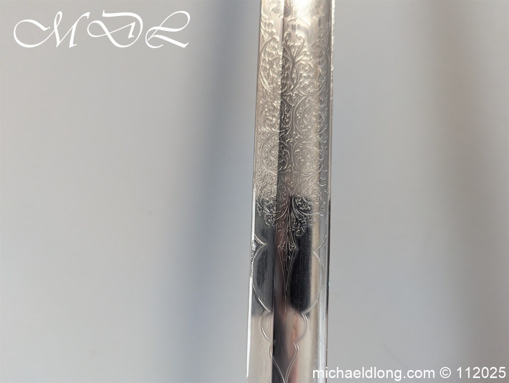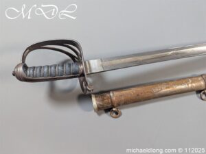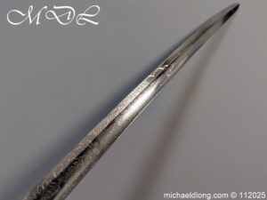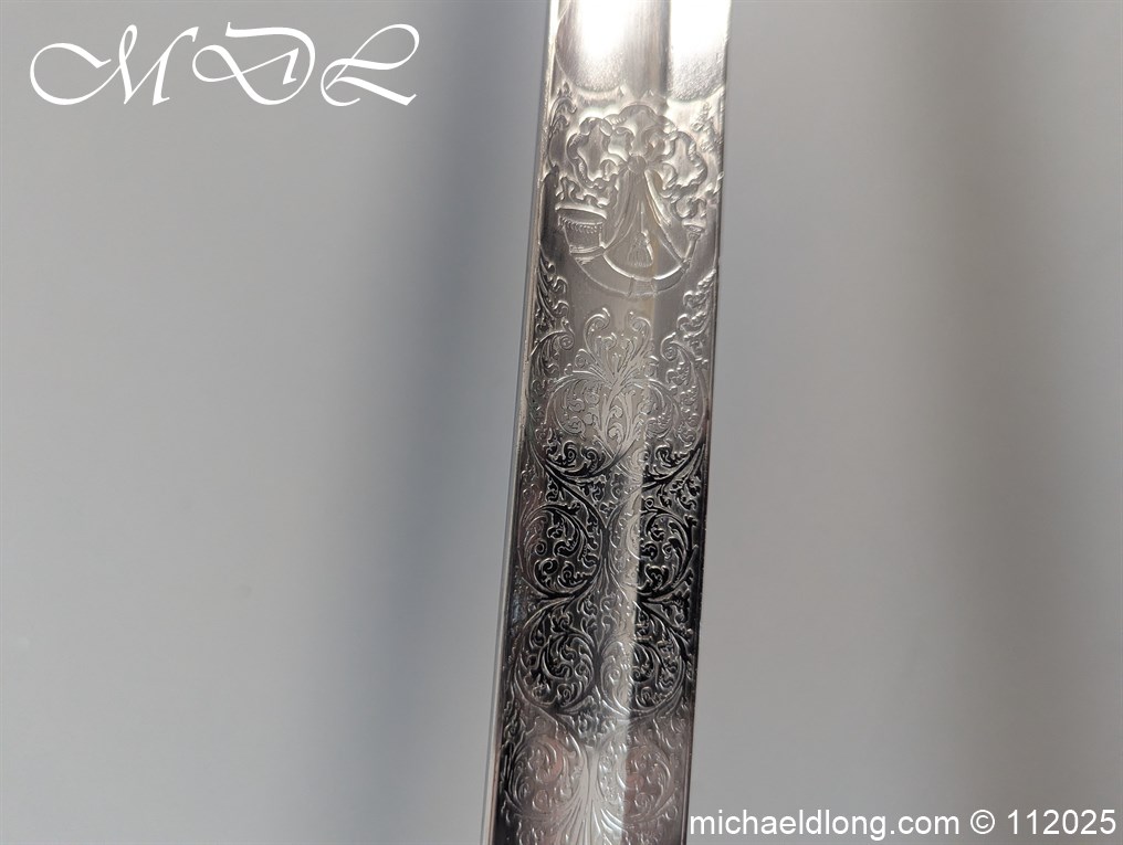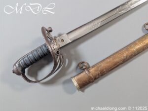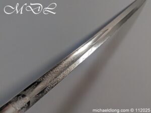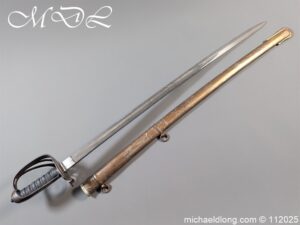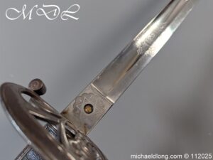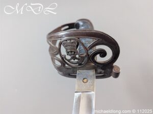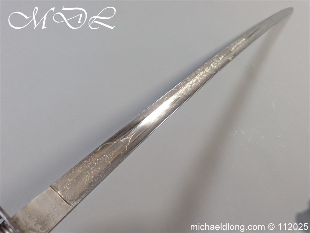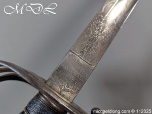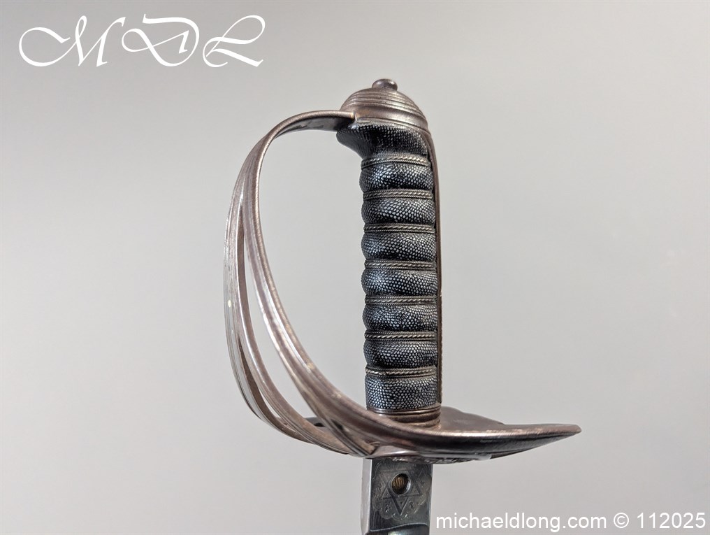 British Rifles Officers Sword by Wilkinson in very good condition number 10160 Rifles Sword R. W. Grey 14/2/1860 of Northumberland. Early example so the quality of the sword is excellent, regulation hilt, grip and back strap. The blade is super with deep engraving detailing V R crown the reverse with slung bugle and family crest. Maker marked Henry Wilkinson Pall Mall London with proof plug to the reverse side and the spine numbered. Complete steel scabbard with no damage or dents but it has been varnished at some point which could be removed easily. Notes: 26th Customs & Excise Middlesex RVC of four companies raised on 9 February 1860 was recruited from customs officers in the London docks. Under the command of Major Lieutenant-Colonel from 1861 Ralph William Grey, former MP and Commissioner of Customs