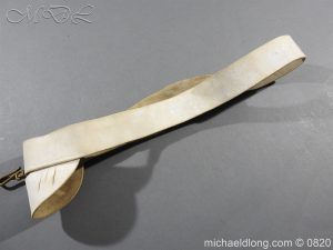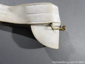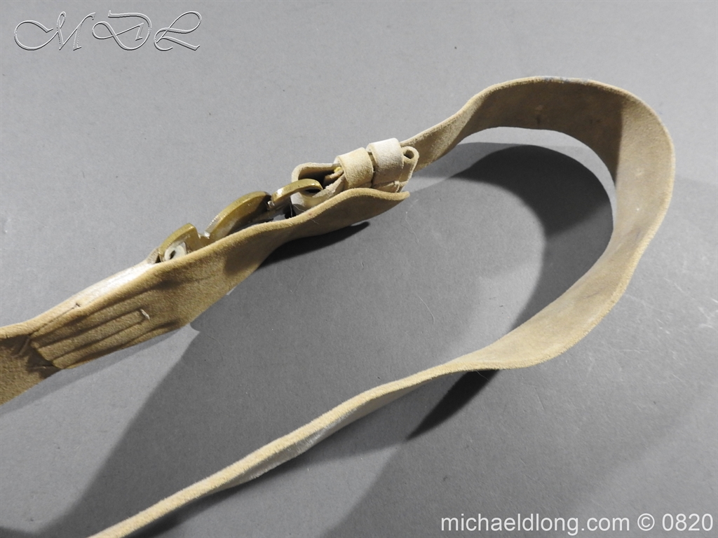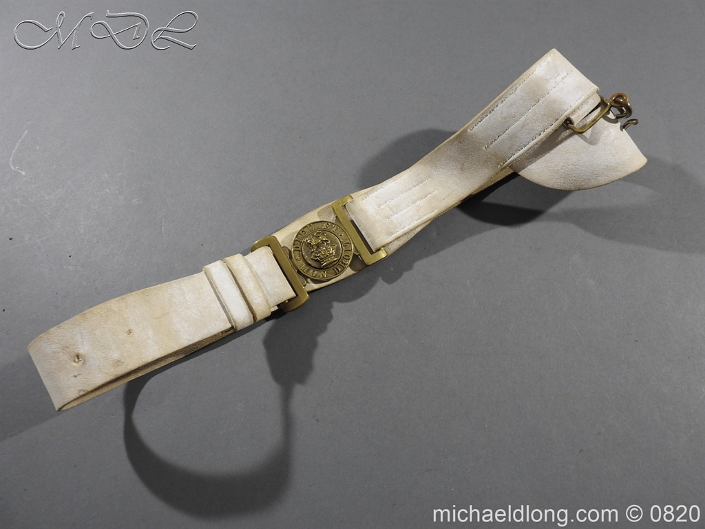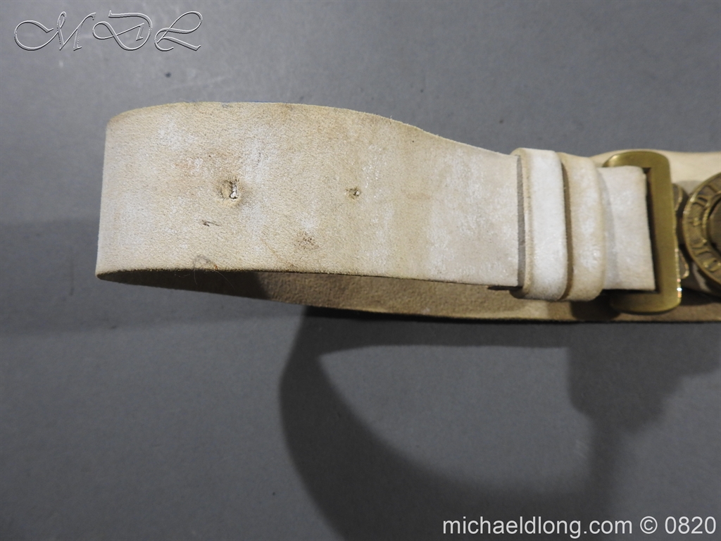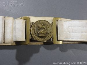 British White Buff Leather Victorian Belt with brass buckle with motto and lion above the crown