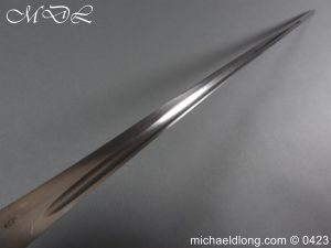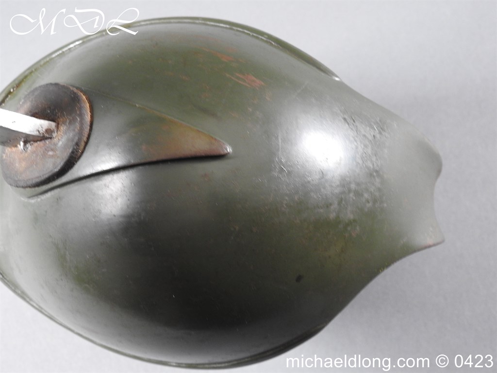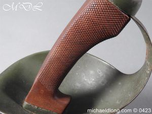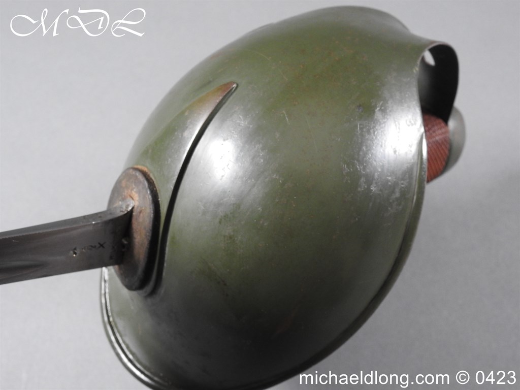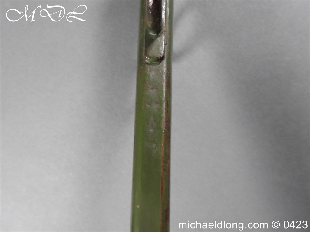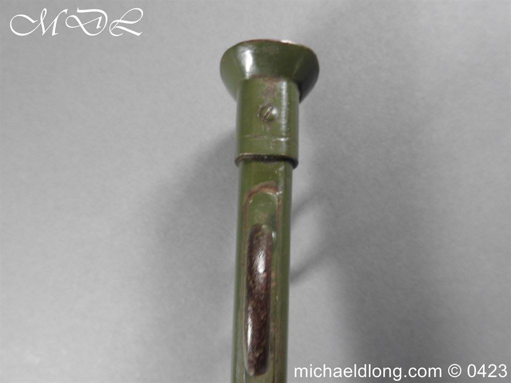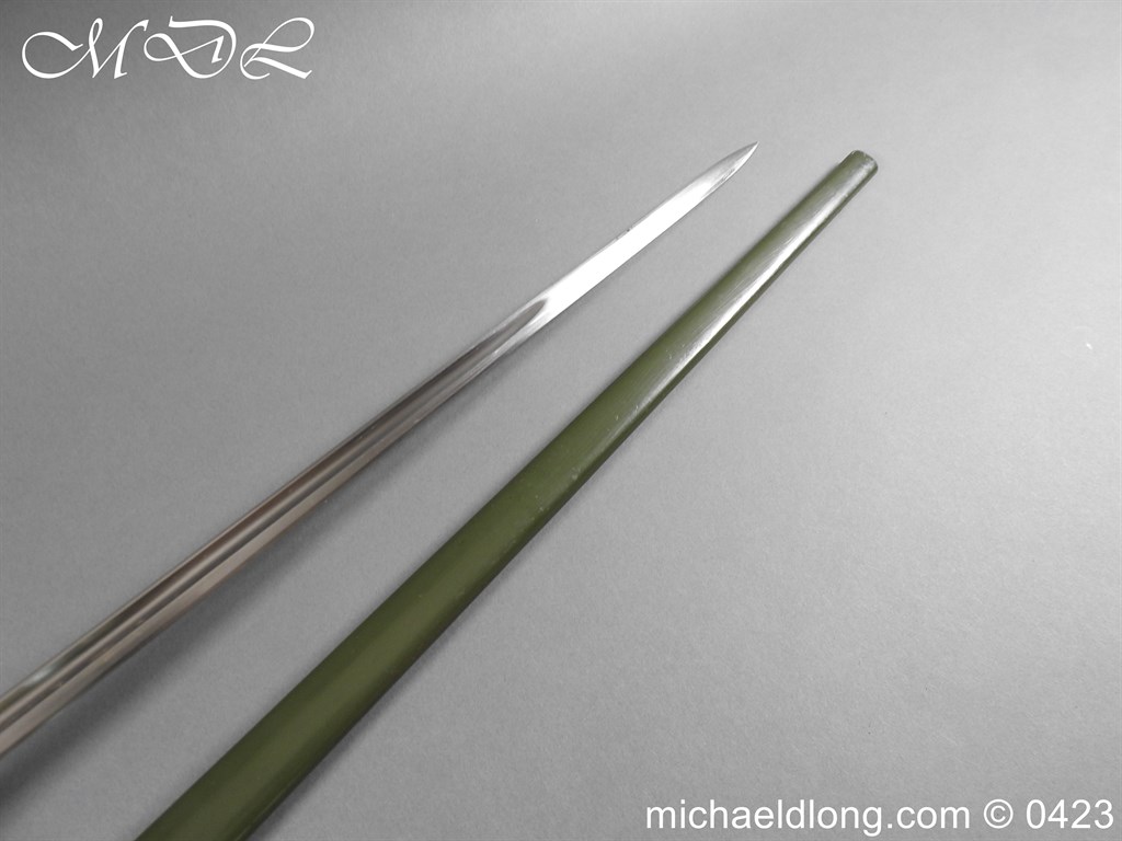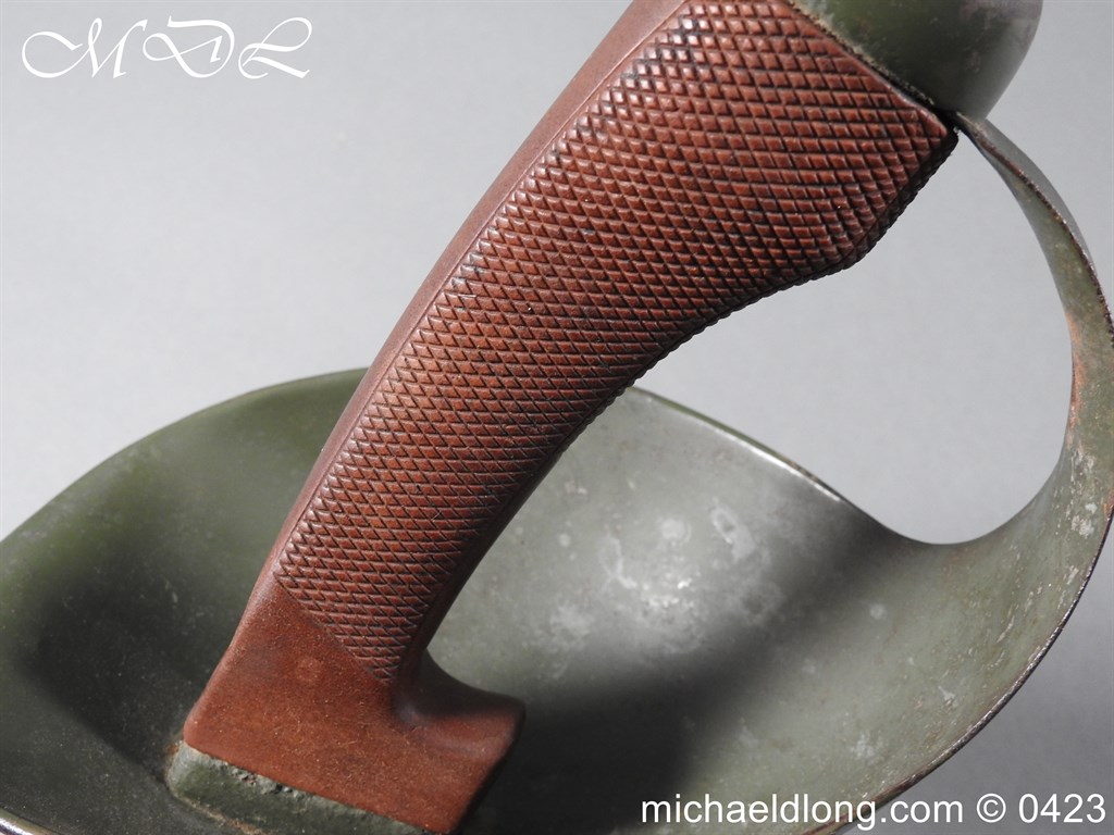 British WW1 1908 Troopers Sword By Wilkinson with inspection and issue stamps for 1915 to the blade and scabbard. Painted green finish with age wear to all area’s complete with composite grip blade in very good condition