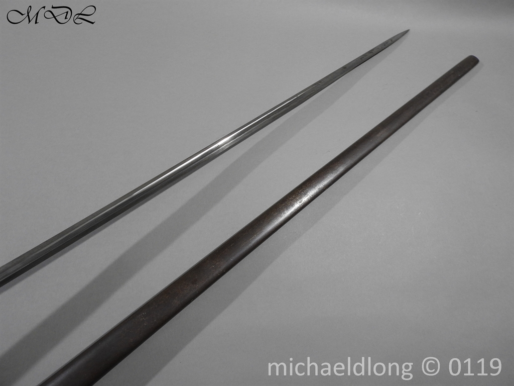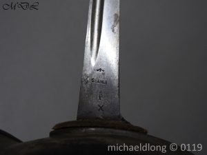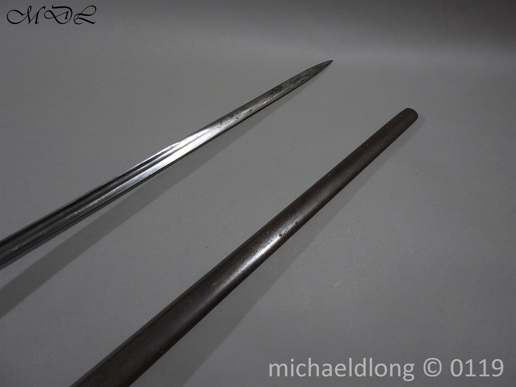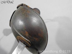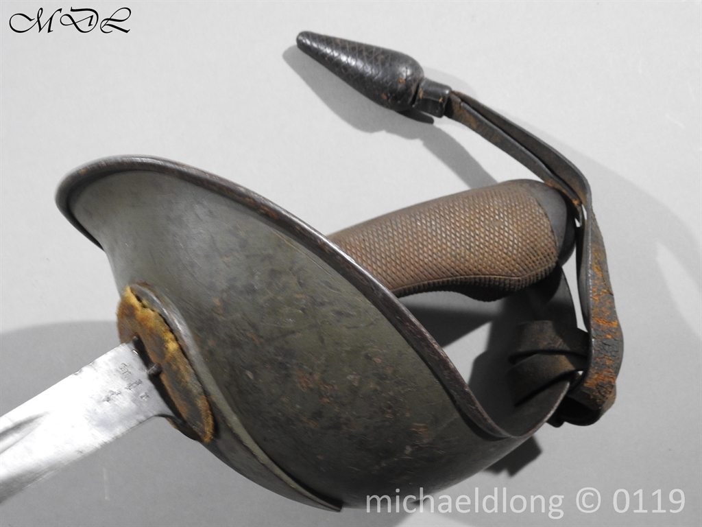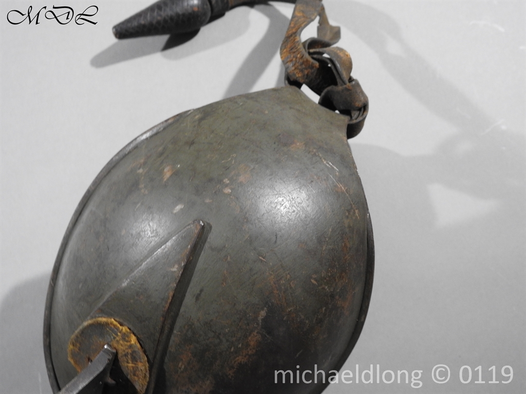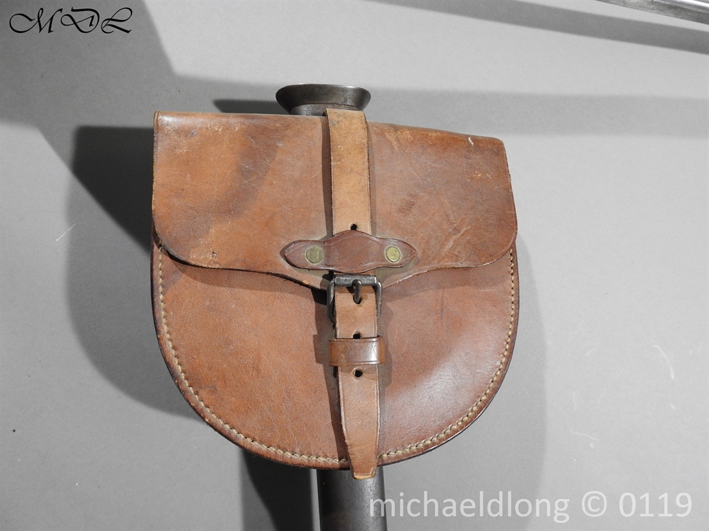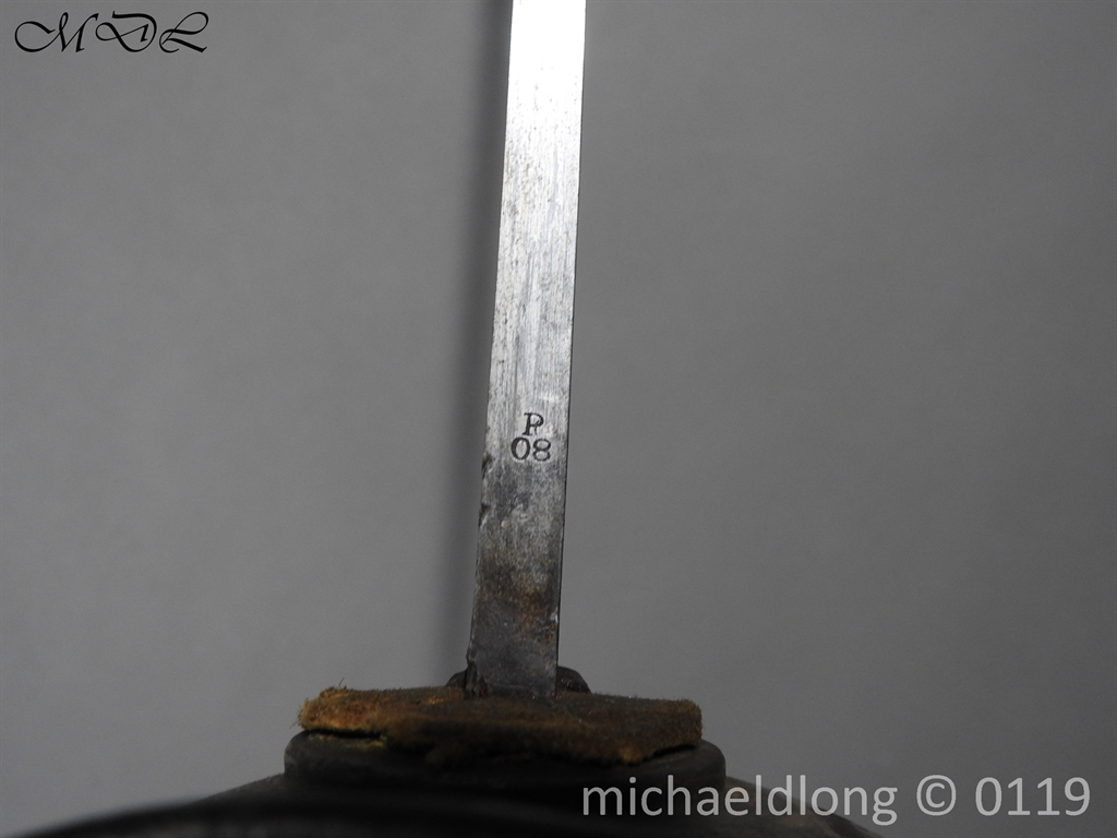 Super example untouched condition original paint to hilt and scabbard, blade with inspection stamps and dated 1915 and spine marked P08. Sold complete with horse shoe leather pouch and original knot.