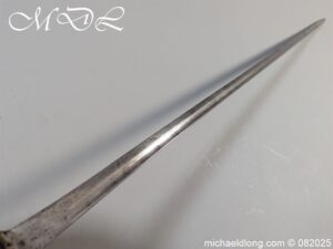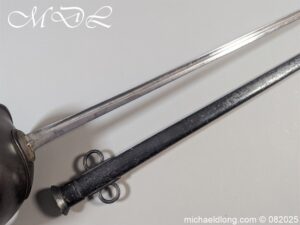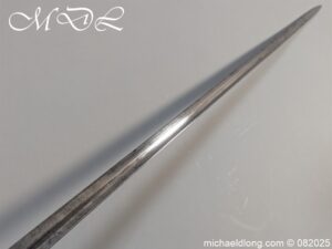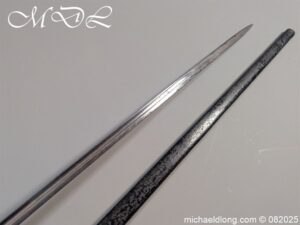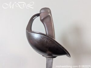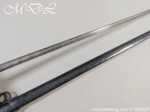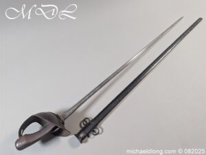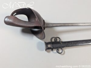 British WW1 Troopers 1908 Sword dated 1915 regulation sword and what seems to be original paint. The blade marked with issue and inspection marks as is the scabbard under the paint but it is also stamped 5R 904. No damage to sword or scabbard and age wear to paint overall length 42 inch the blade 34.75 inch.