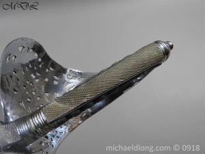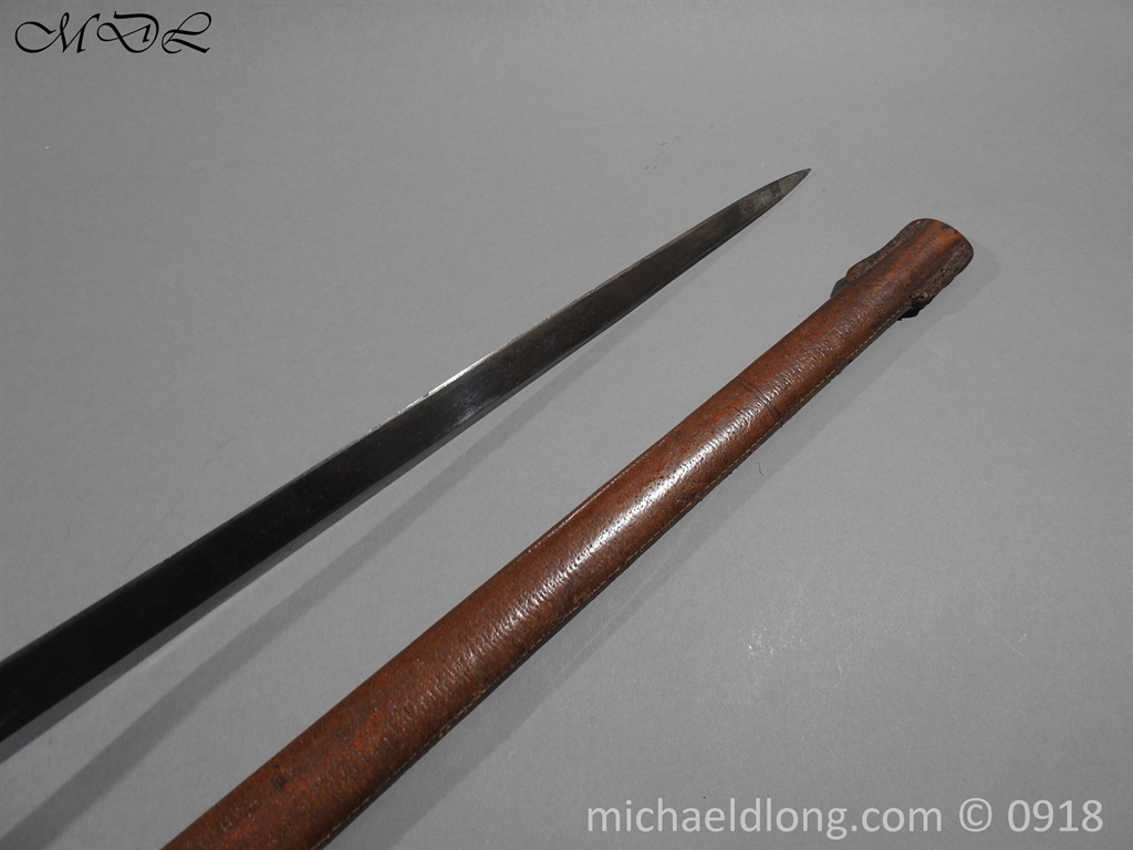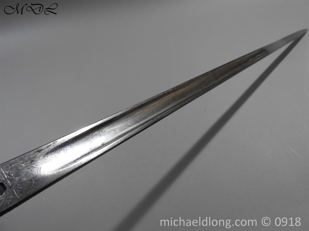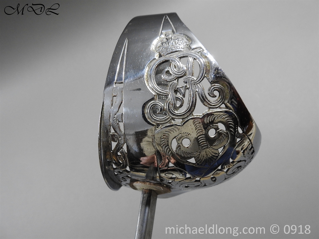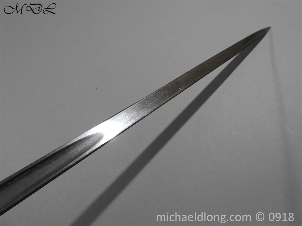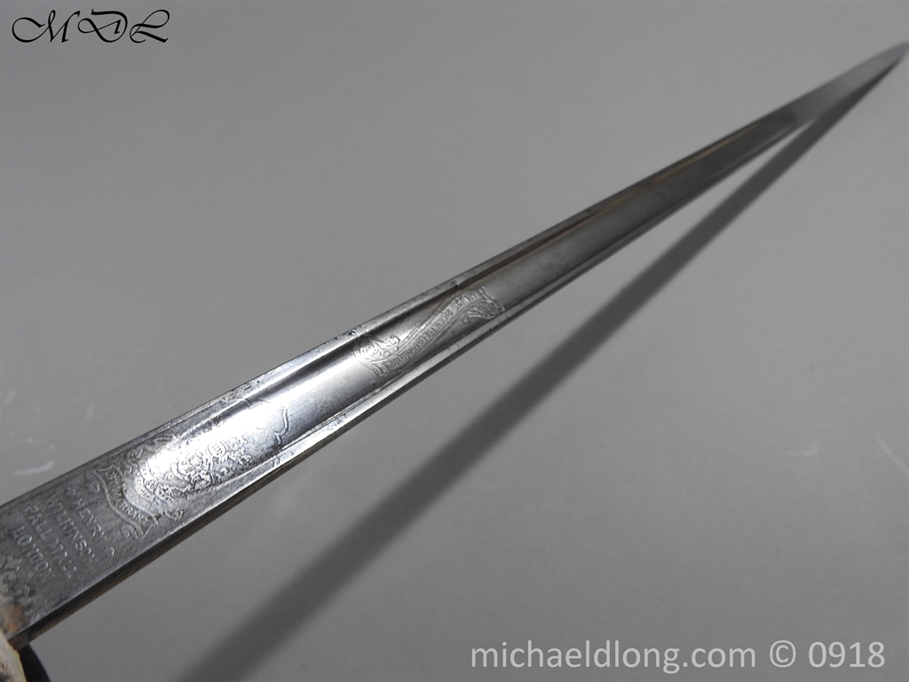 Belonging to Major S H Winterbottom MC produced by Wilkinson Sword, regulation infantry officer’s hilt with GR and crown, fish skin grip and chequered back strap. The staight plain blade is engraved with Major S H Winterbottom MC within scroll panal with makers details and proof plug. Complete with field scabbard overall length -98cm blade 83cm Notes: During the night of 9 – 10 May 1940, Germany invaded Belgium, the Netherlands and Luxembourg; and under pressure, the French Army, and the British Expeditionary Force, were ordered to withdraw. The enemy advanced towards Amiens and Arras with the intention of reaching the Channel coast. On the night of 20 May the German army reached the sea at Abbeville having transversed and cut the communications of the northern armies. All forward elements of the British Expeditionary Force were held in a vast pocket from which there was no escape other than by sea. In that pocket was 5 Group commanded by Lieutenant Colonel D J Dean VC TD which included 68 Company under the command of Major S H Winterbottom MC. During the third week of May the encircled British forces began their retirement to the Channel ports of Dunkirk, Calais and Boulogne: 5 Group were ordered to Boulogne.