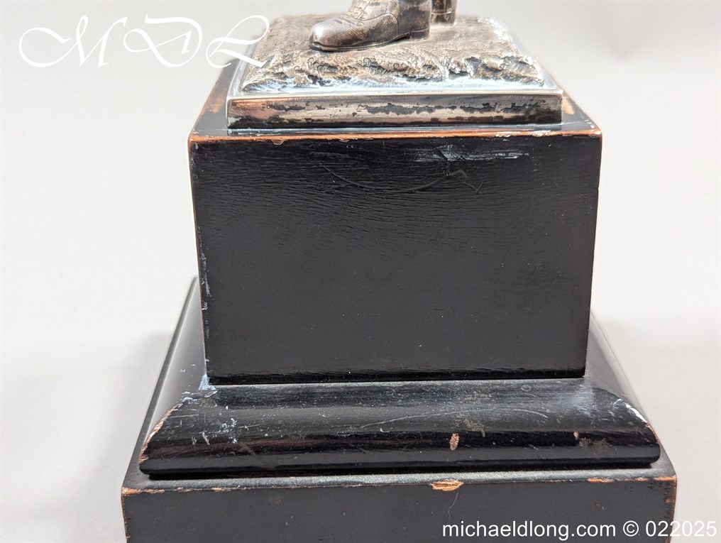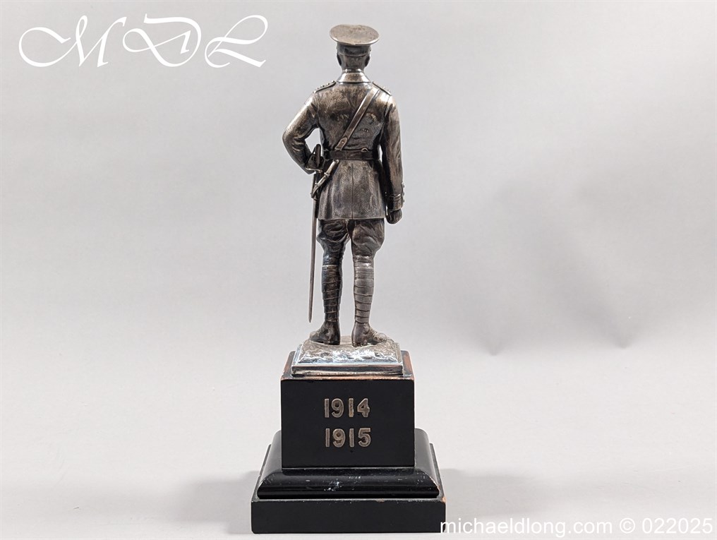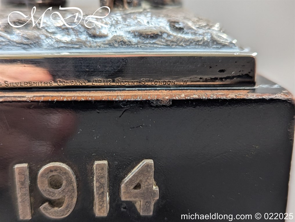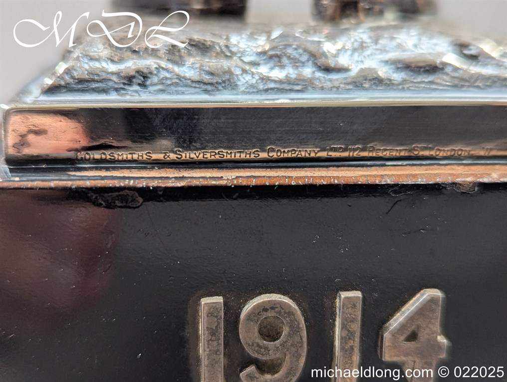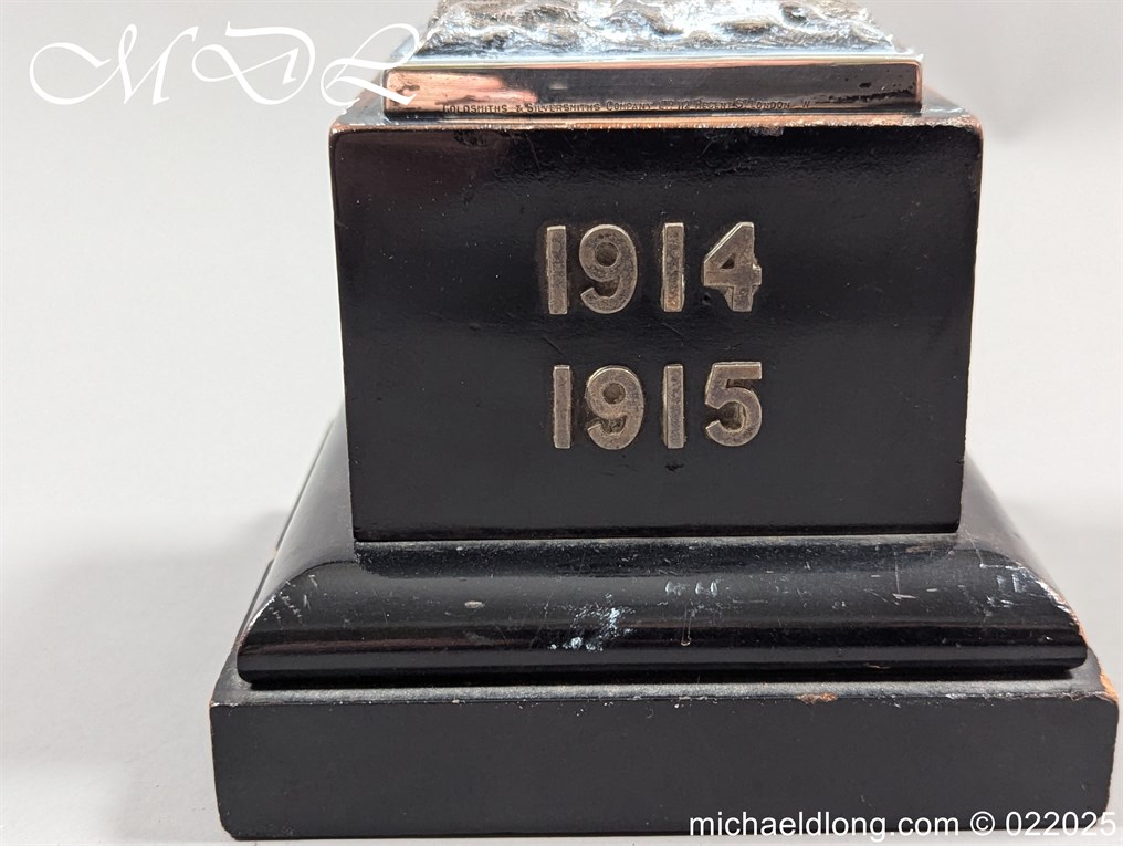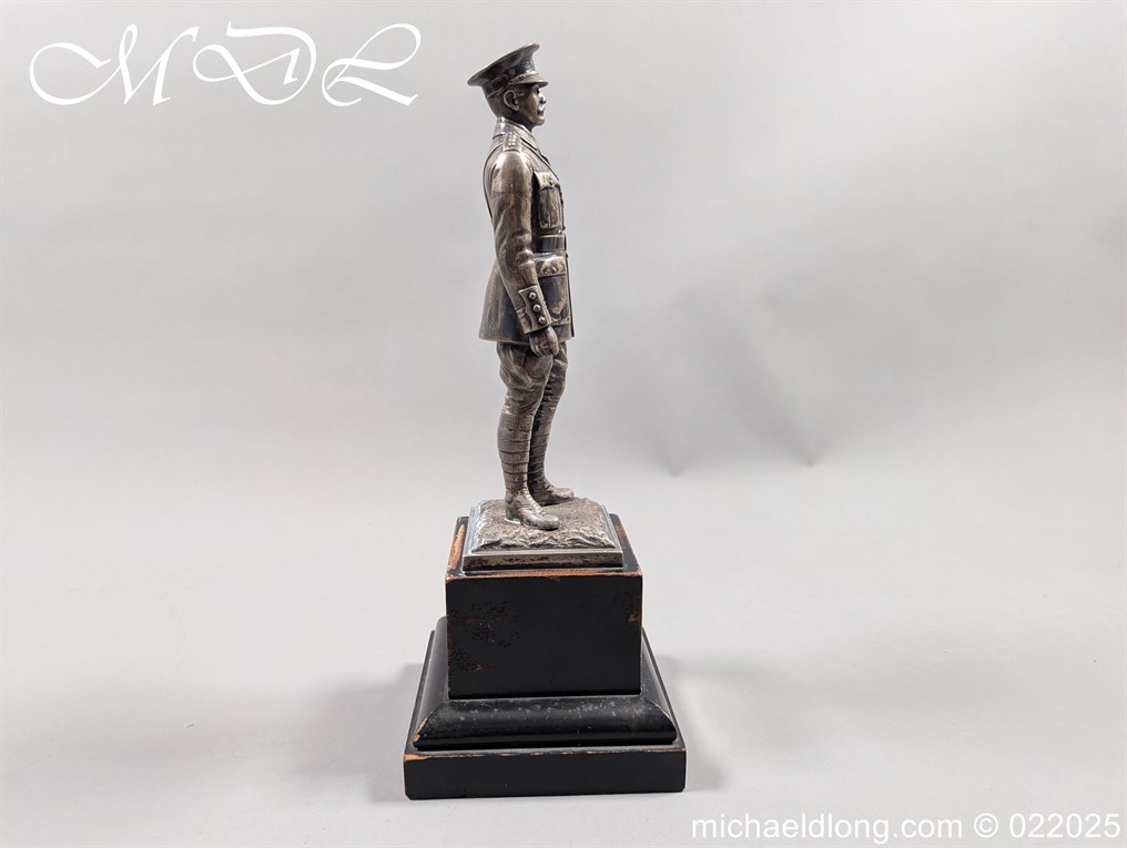 Captain Goudchaux Expedition Force 1914 Presentation Silver Statue both the plaque and statue are hallmarked the maker marked Goldsmith and Silversmiths Company Ltd Regent Street London. The presentation reads: Presented to Captain Goudchaux By The Officers Headquarter Staff 1st Division British Expeditionary Force 1914 – 1915 Super detail it stands 36cm in height on an ebony base.