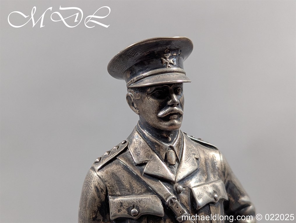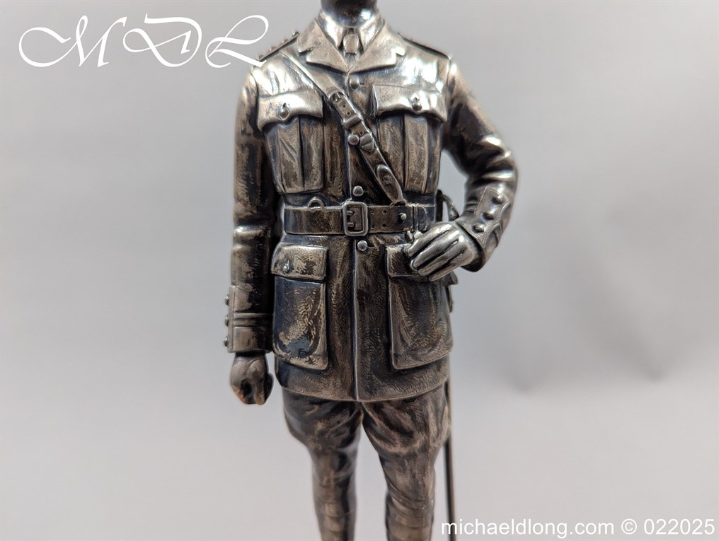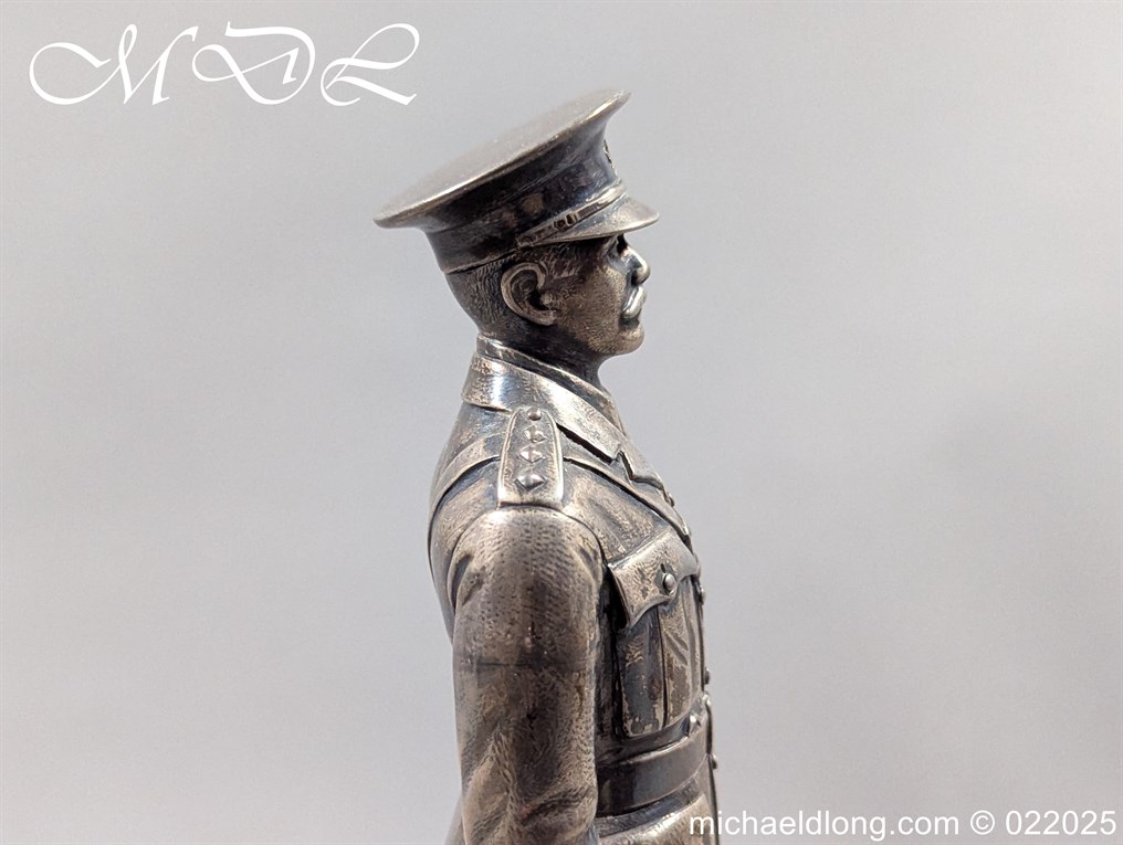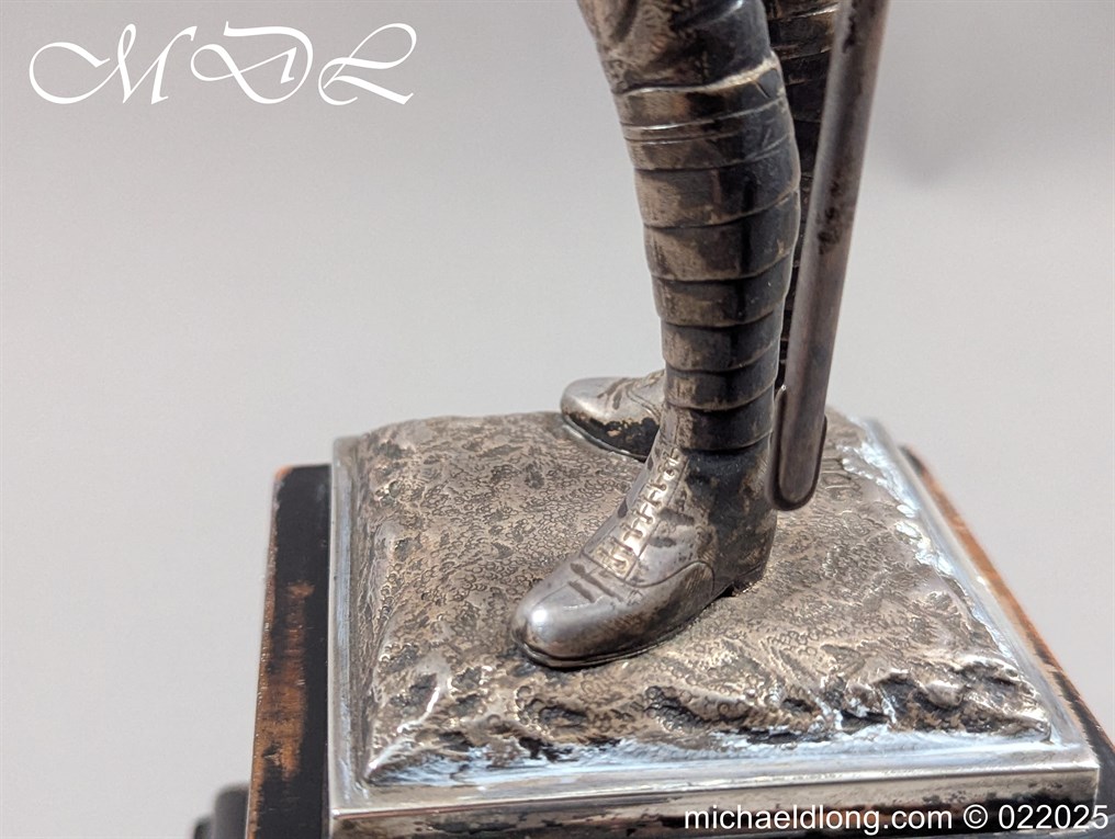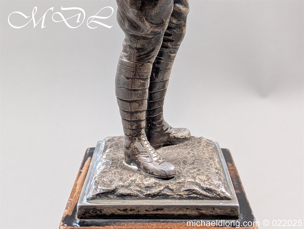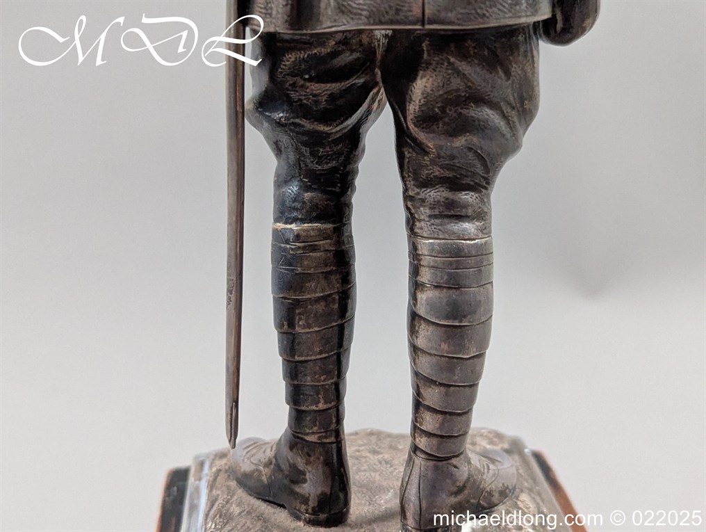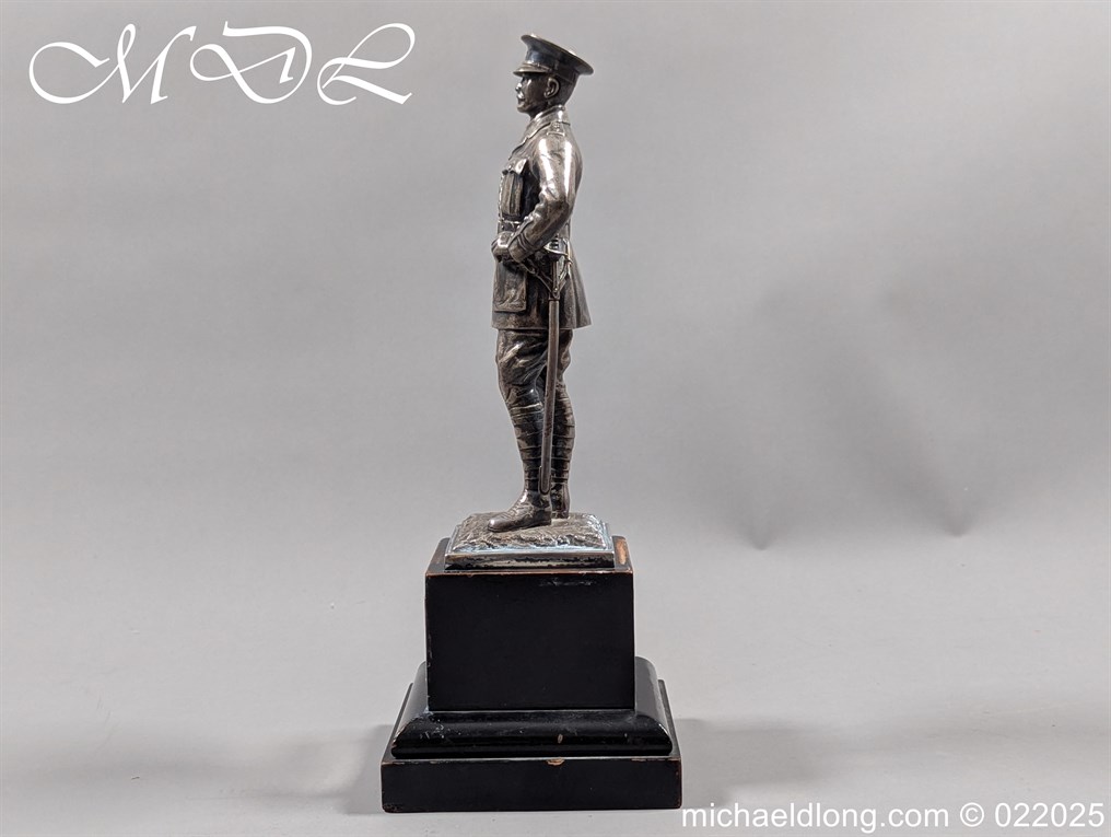 Captain Goudchaux Expedition Force 1914 Presentation Silver Statue both the plaque and statue are hallmarked the maker marked Goldsmith and Silversmiths Company Ltd Regent Street London. The presentation reads: Presented to Captain Goudchaux By The Officers Headquarter Staff 1st Division British Expeditionary Force 1914 – 1915 Super detail it stands 36cm in height on an ebony base.