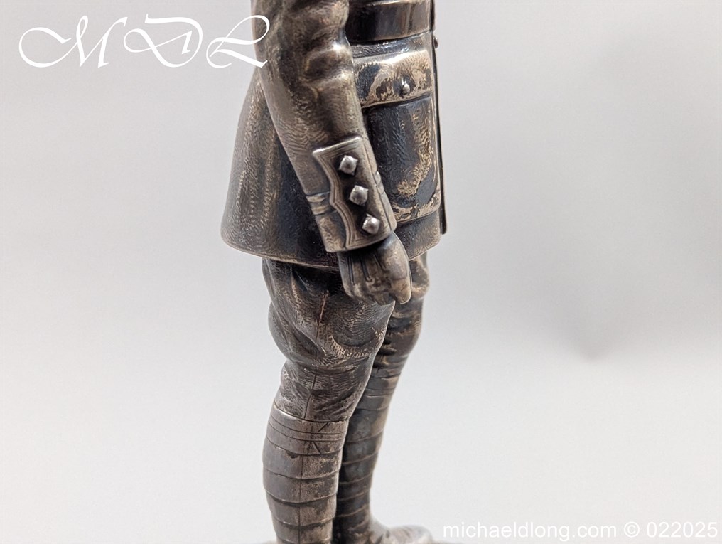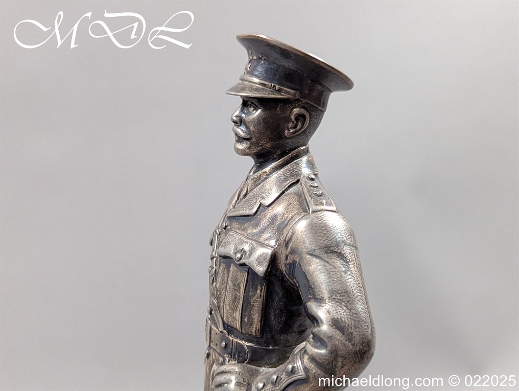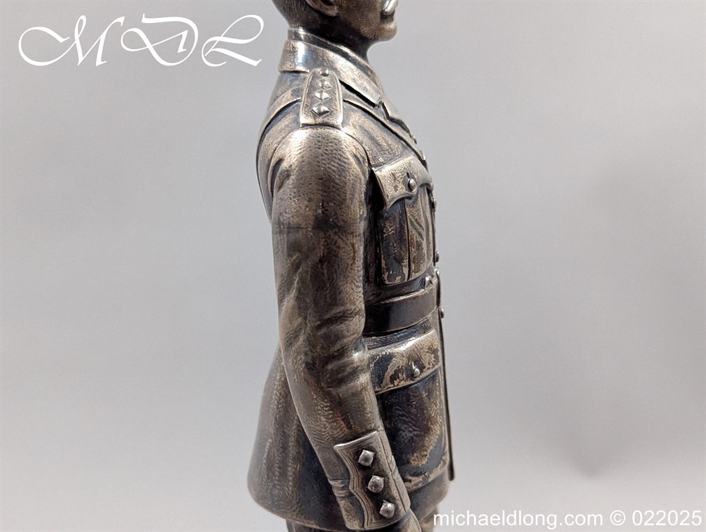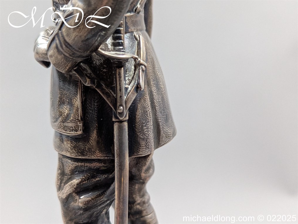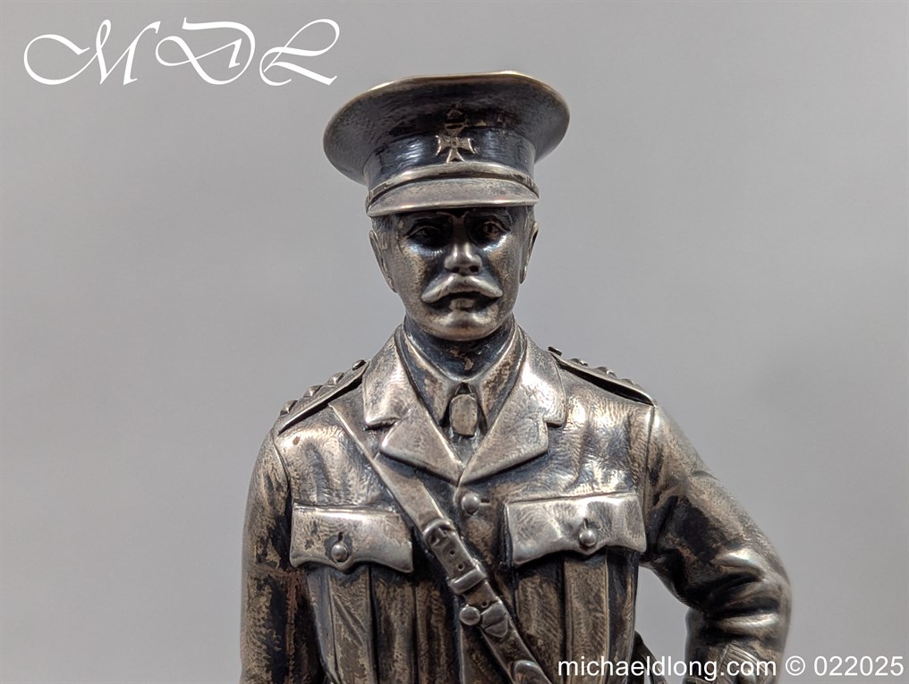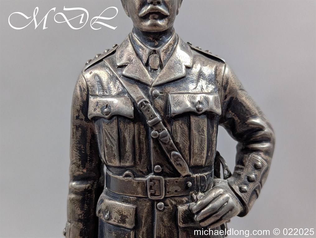 Captain Goudchaux Expedition Force 1914 Presentation Silver Statue both the plaque and statue are hallmarked the maker marked Goldsmith and Silversmiths Company Ltd Regent Street London. The presentation reads: Presented to Captain Goudchaux By The Officers Headquarter Staff 1st Division British Expeditionary Force 1914 – 1915 Super detail it stands 36cm in height on an ebony base.