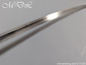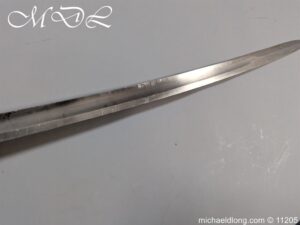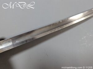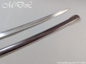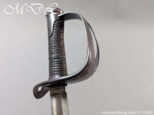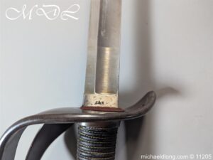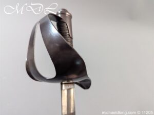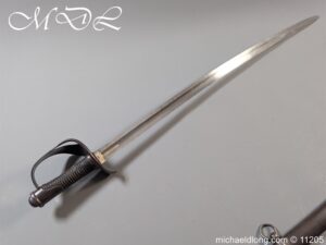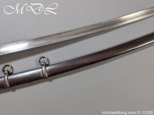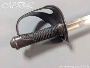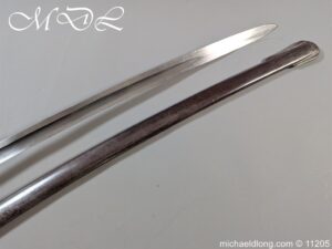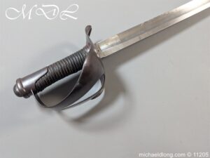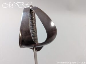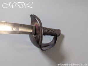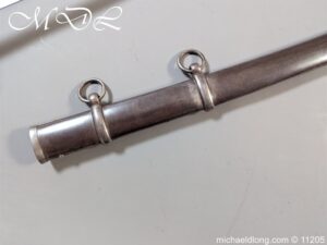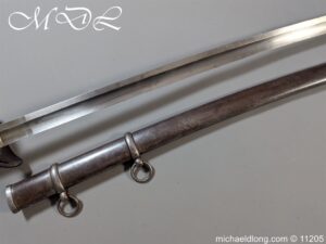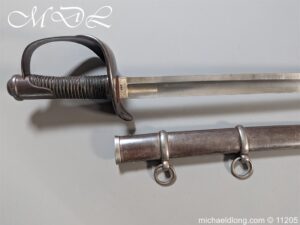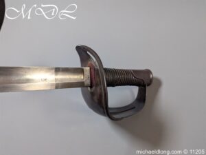 Danish Cavalry Troopers Sword by Schnitzer & Kirschbaum Solingen, the blade in excellent condition with area for cross polishing. Iron basket hilt with a single opening, ribbed and leather-covered handle with brass wire winding, matching scabbard with two loose rings, manufacturer’s stamp on blade with inspection stamp to reverse. Overall length 41.5 inch the blade 35 inch