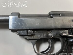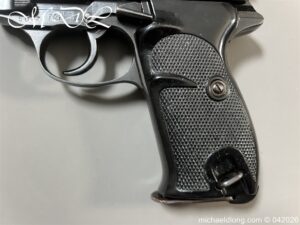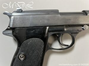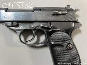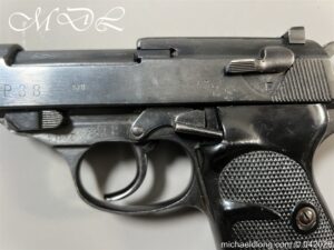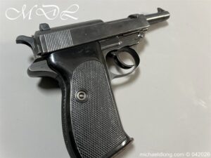 Deactivated WW2 German P38 CYQ 1943 this example matching serial numbers to frame, slide and barrel 5043F which I believe is for May 1943. Very good condition complete with magazine which is stamped P38, cocks and dry fires and complete with black leather holster. All deactivated weapons sold are deactivated in the United Kingdom and hold a London or Birmingham proof mark and certificate stating that the weapon has been deactivated correctly and is legal within the U.K.