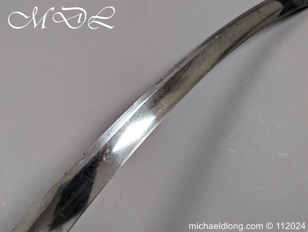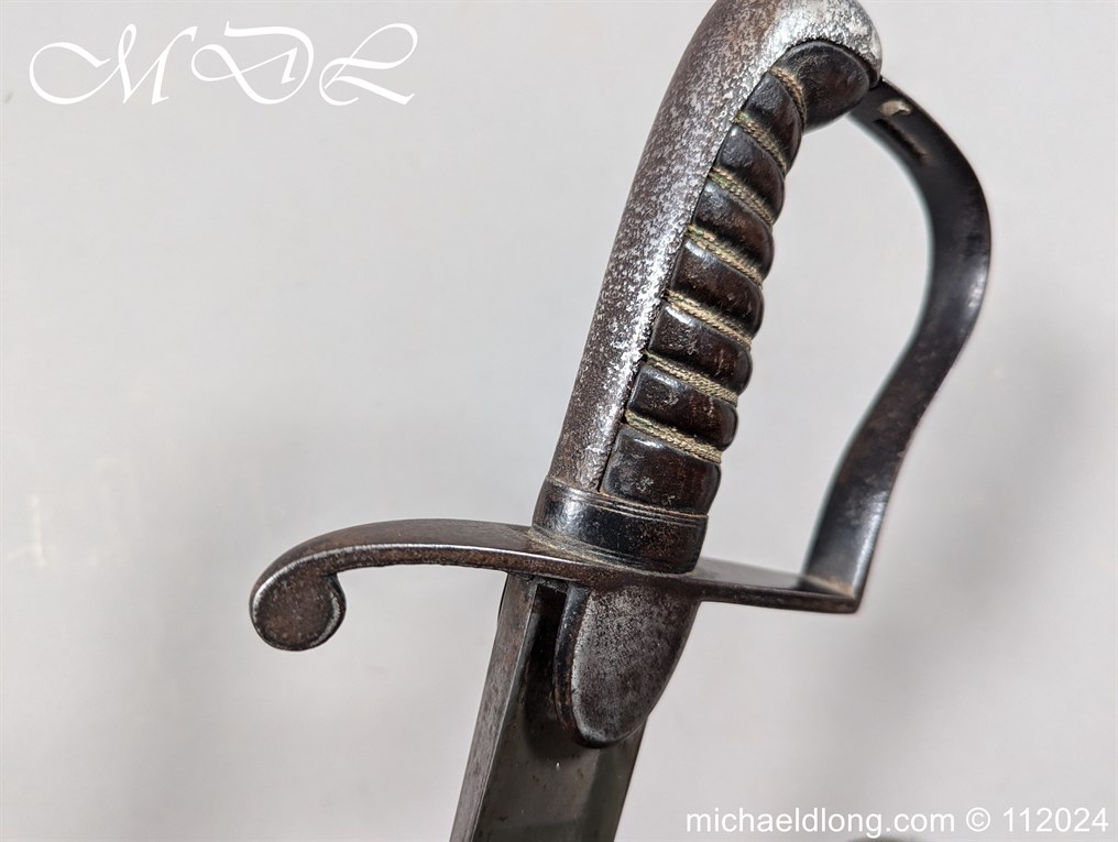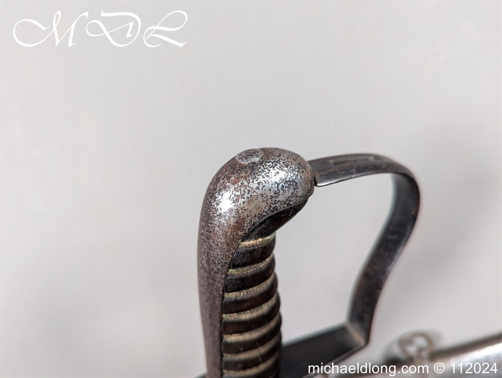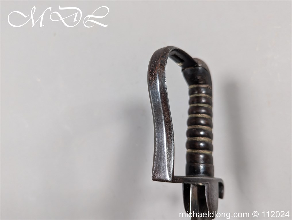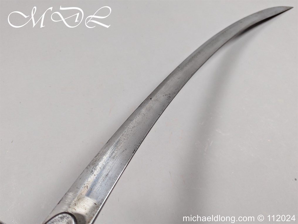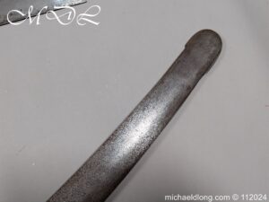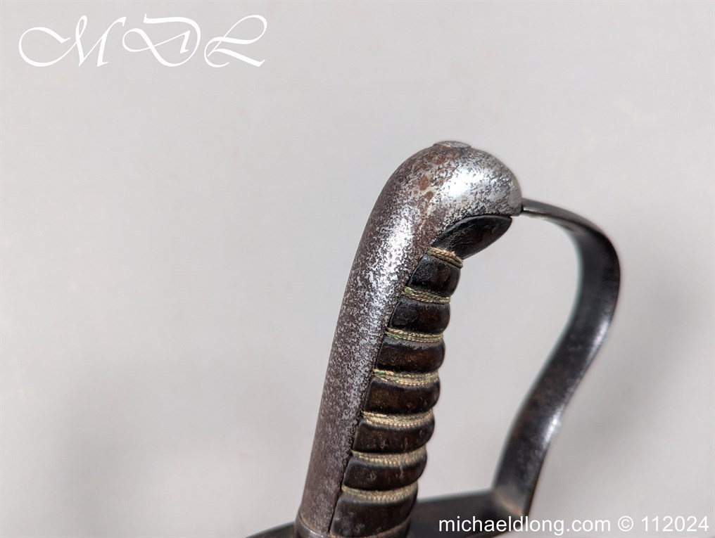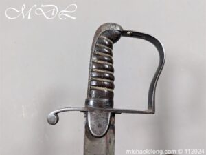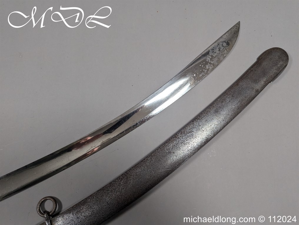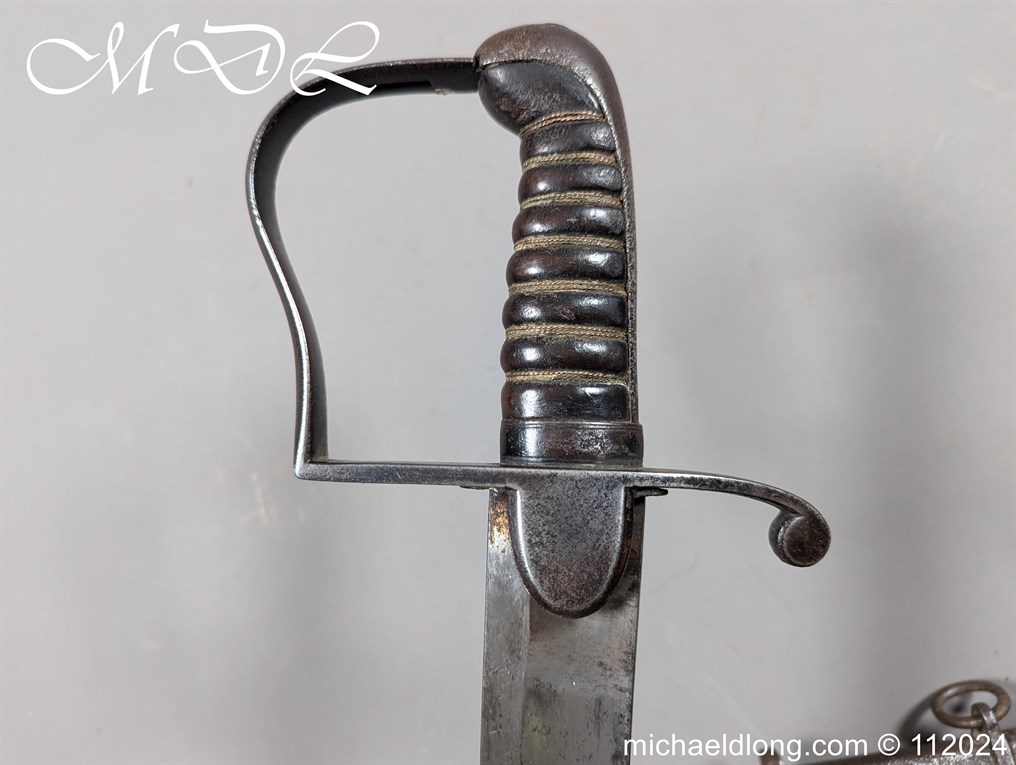English 1796 Officers Light Cavalry Sword, regulation sword with steel hilt and leather bound grip secured by twisted wire. The blade slightly curved and in very good condition no makers mark and complete with matching steel scabbard. Overall length 92cm the blade 79.5cm