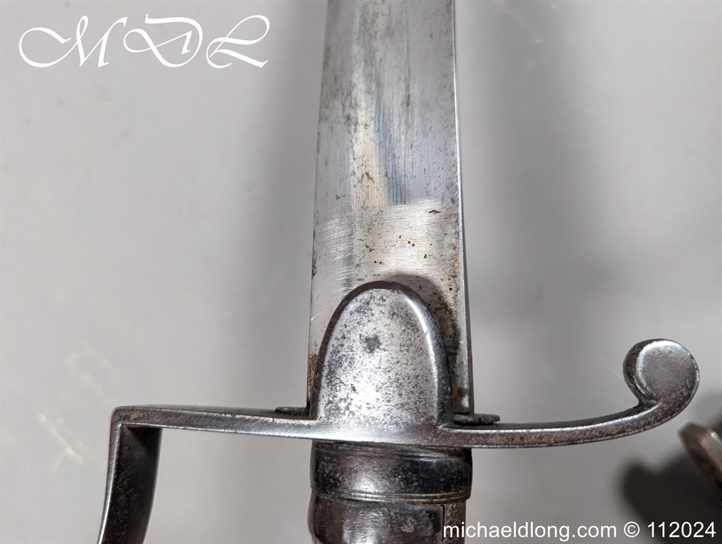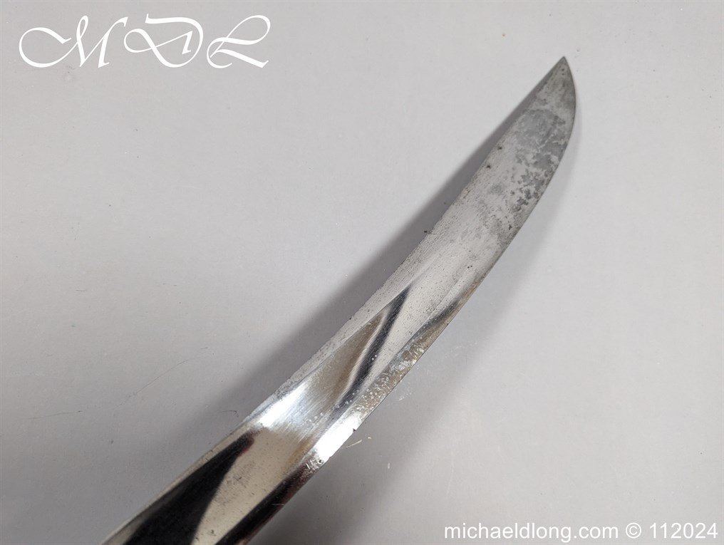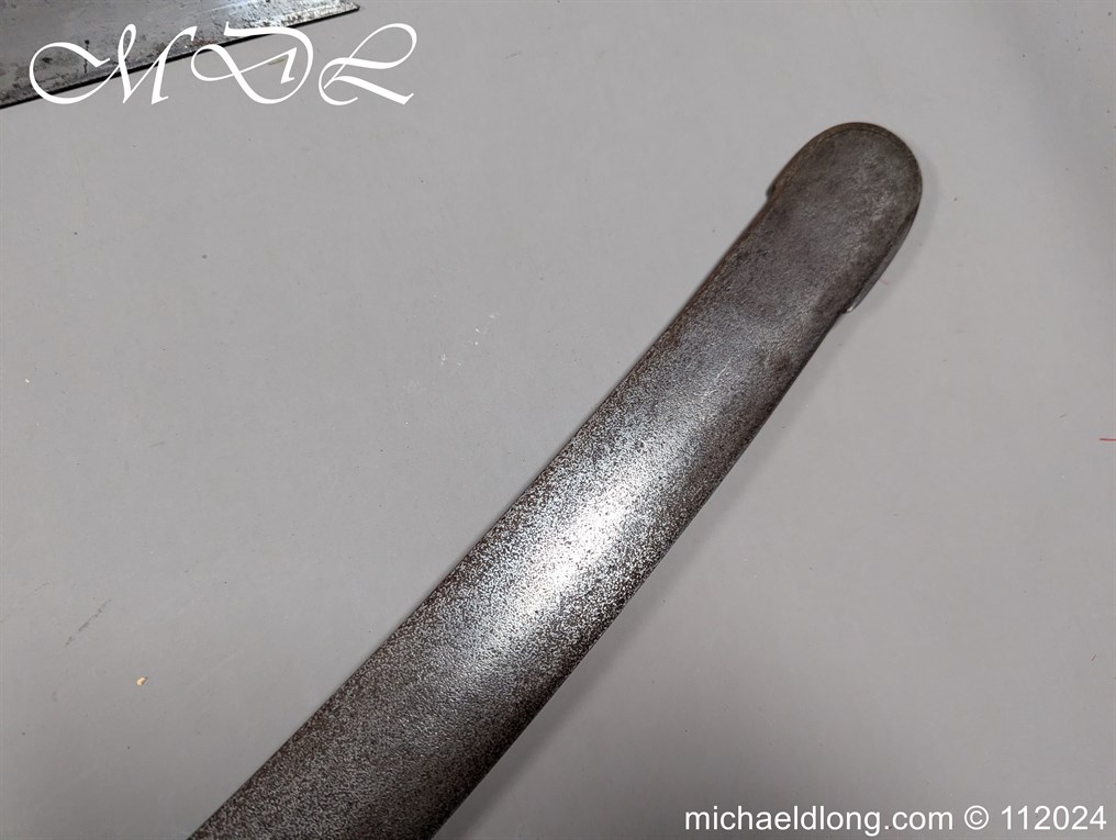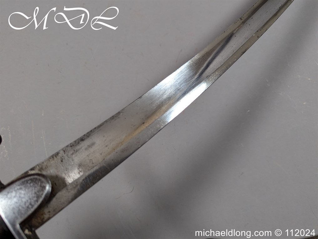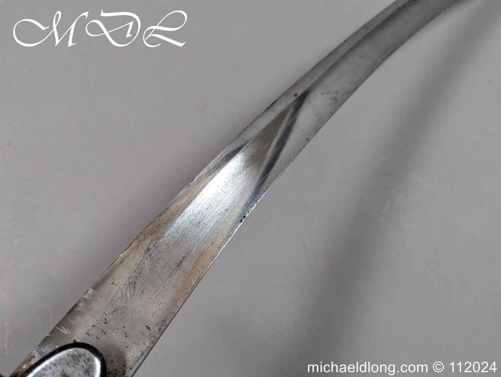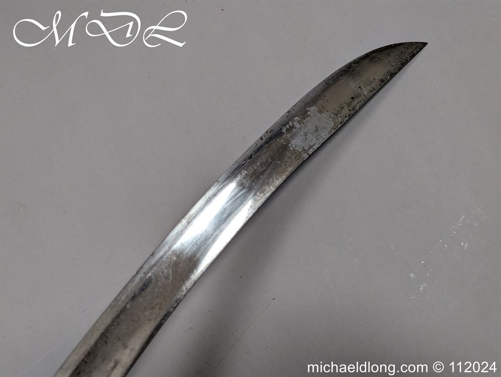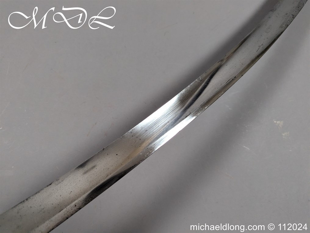 English 1796 Officers Light Cavalry Sword, regulation sword with steel hilt and leather bound grip secured by twisted wire. The blade slightly curved and in very good condition no makers mark and complete with matching steel scabbard. Overall length 92cm the blade 79.5cm