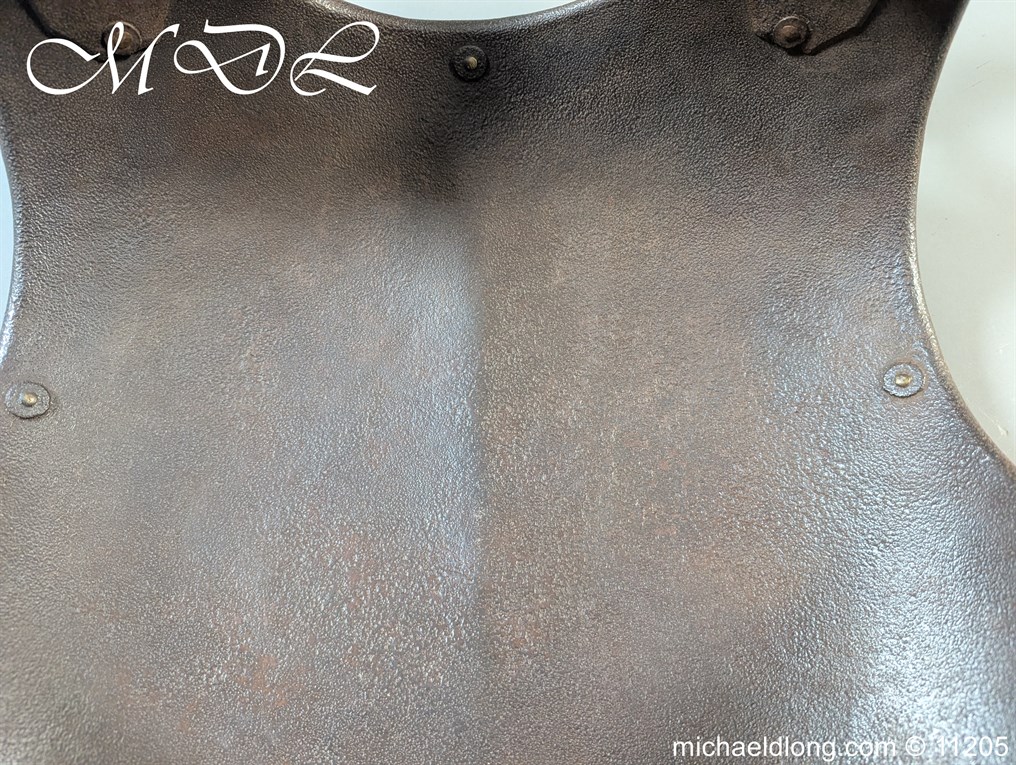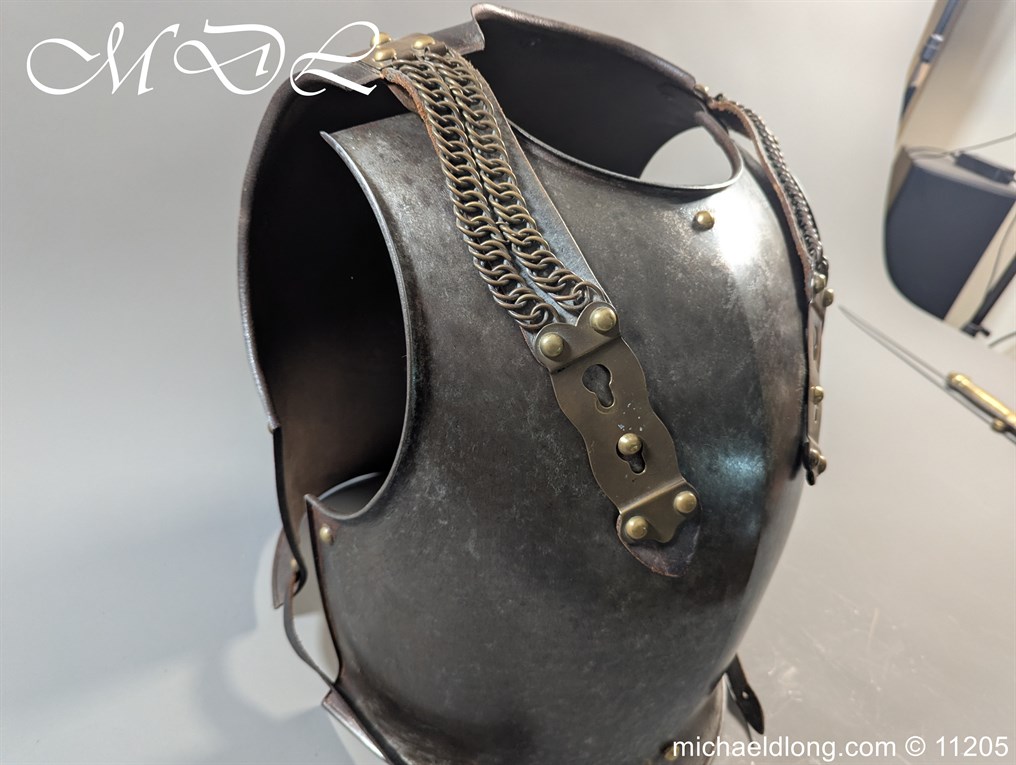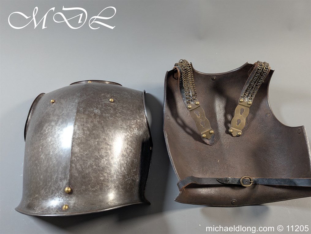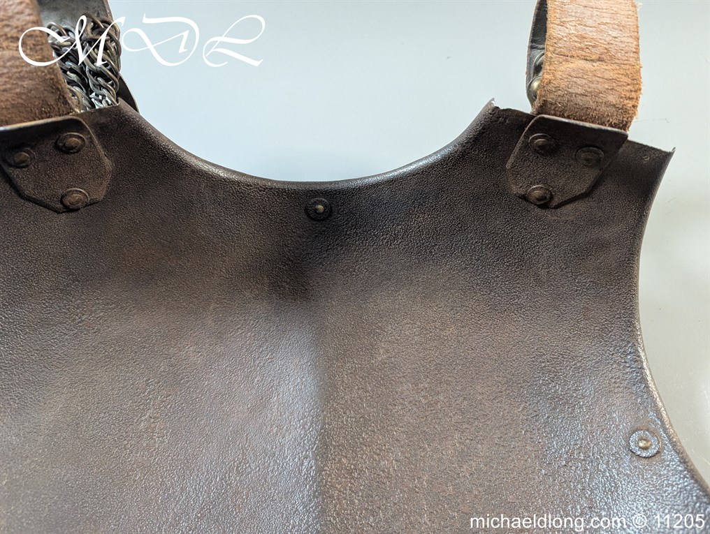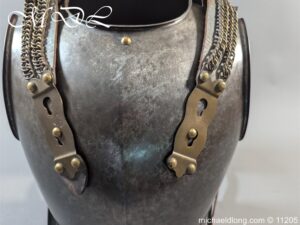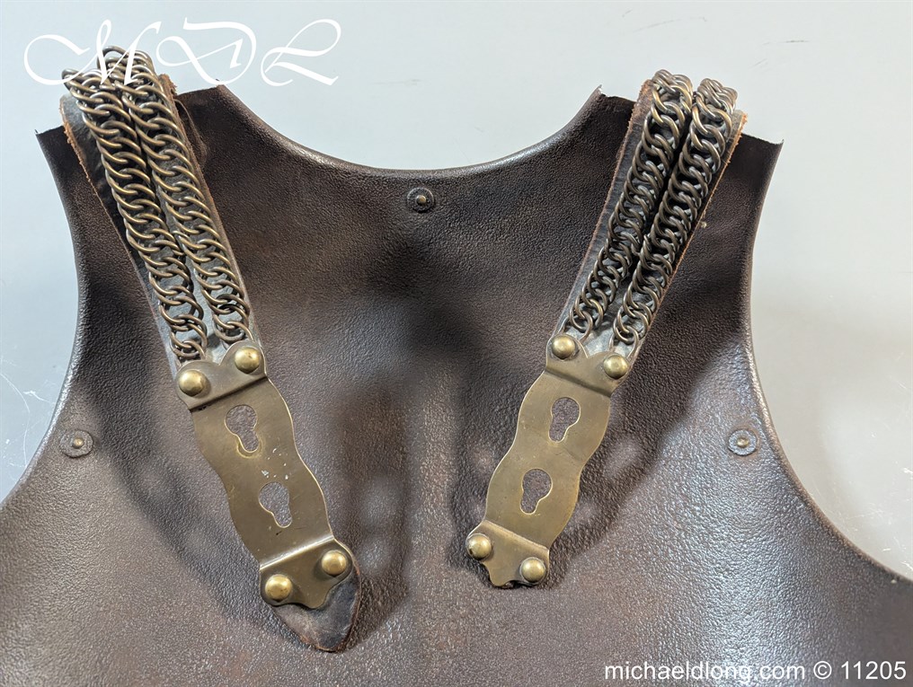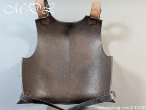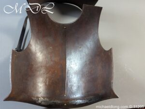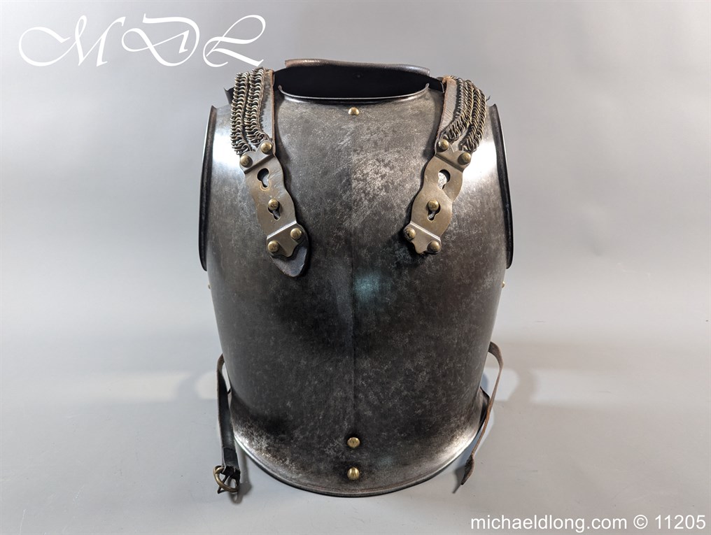 In good used condition 19th century French Cavalry Cuirass front and back plate with original brass wire straps with leather backing. The Front and back with numerous stamps, the front plate engraved with various numbers and French arsenal please see images. The rear plate is also complete with leather waist belt.