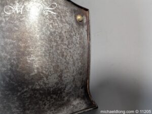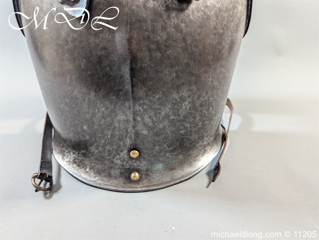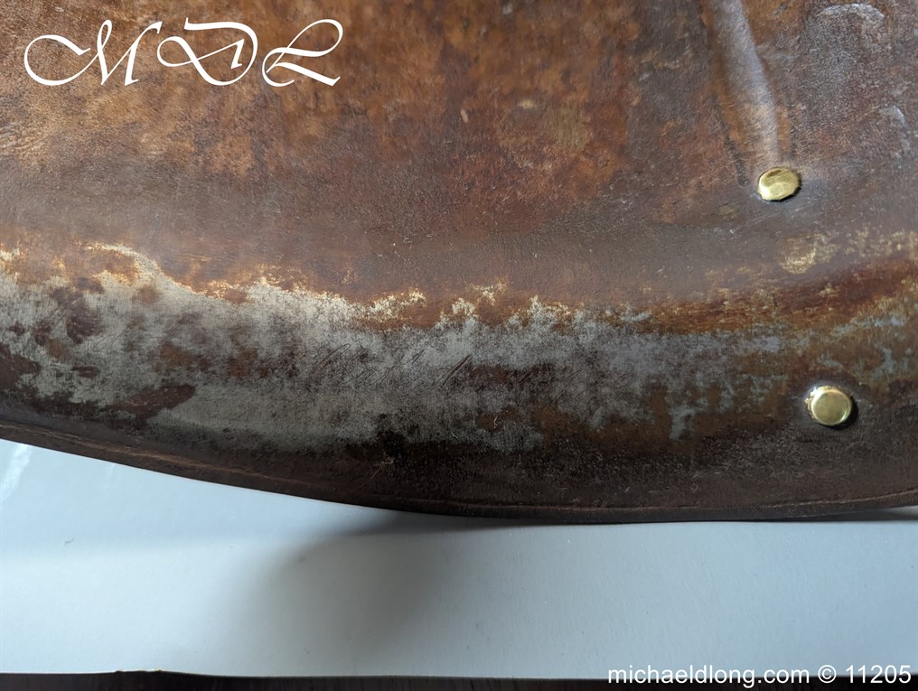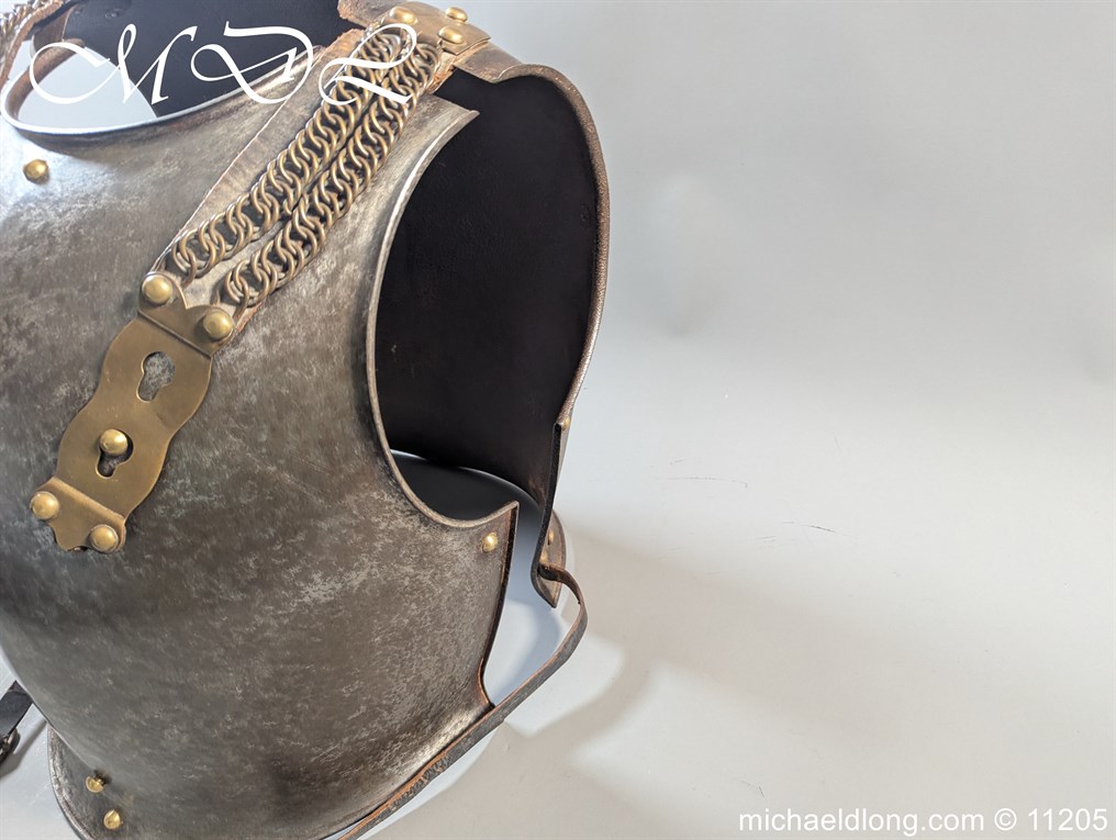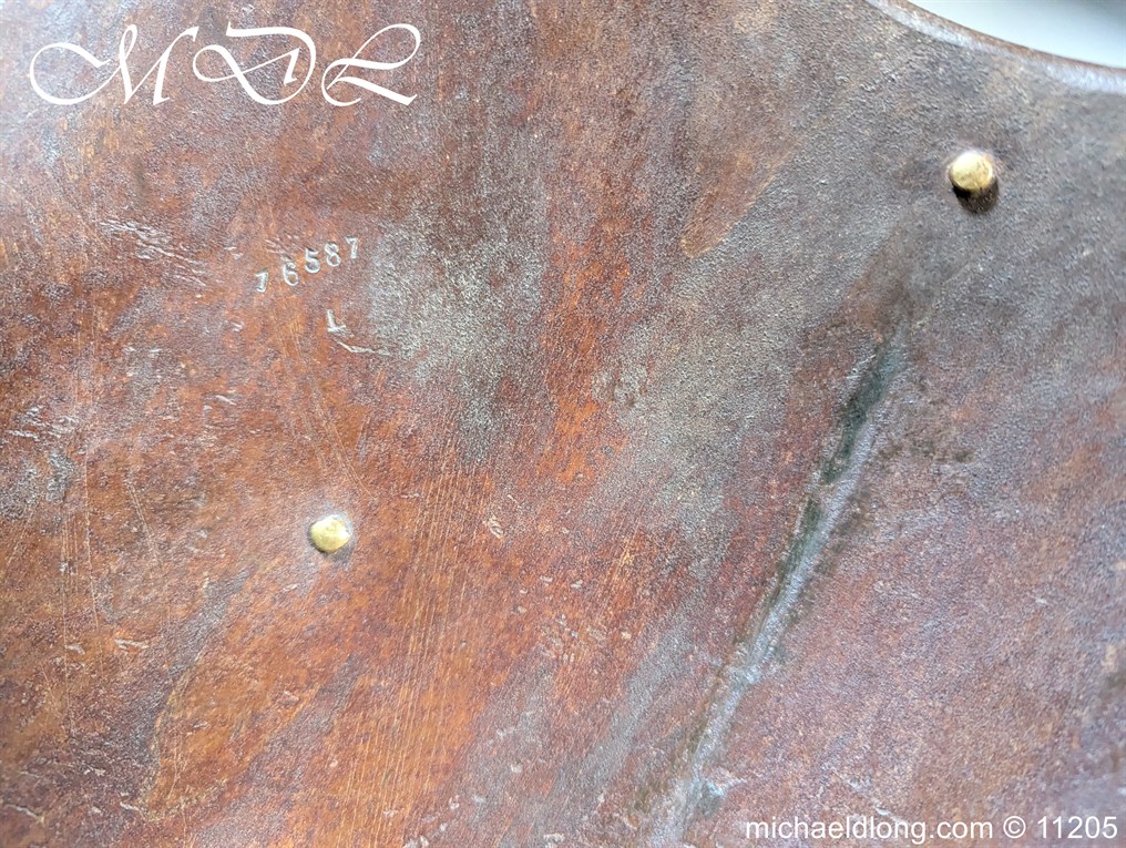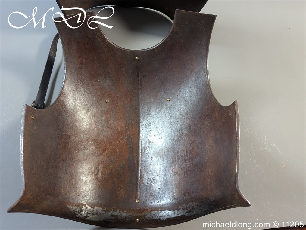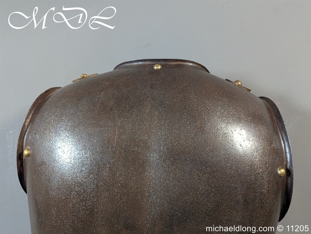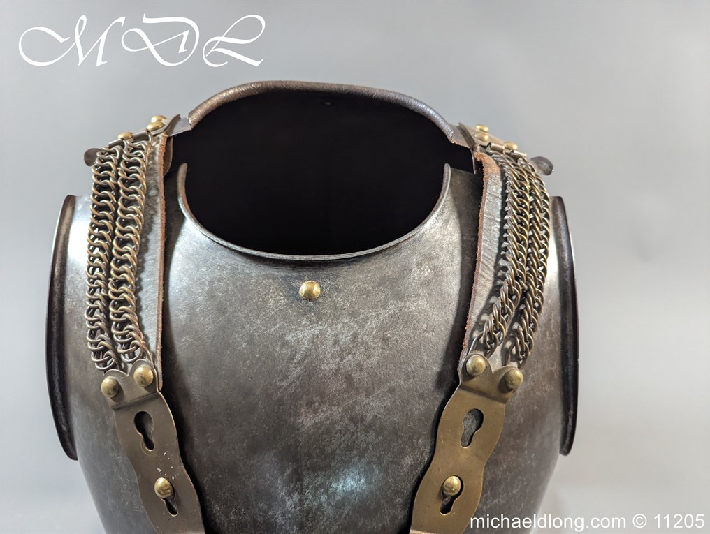 In good used condition 19th century French Cavalry Cuirass front and back plate with original brass wire straps with leather backing. The Front and back with numerous stamps, the front plate engraved with various numbers and French arsenal please see images. The rear plate is also complete with leather waist belt.