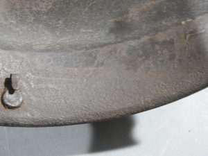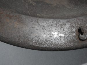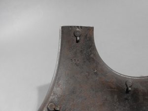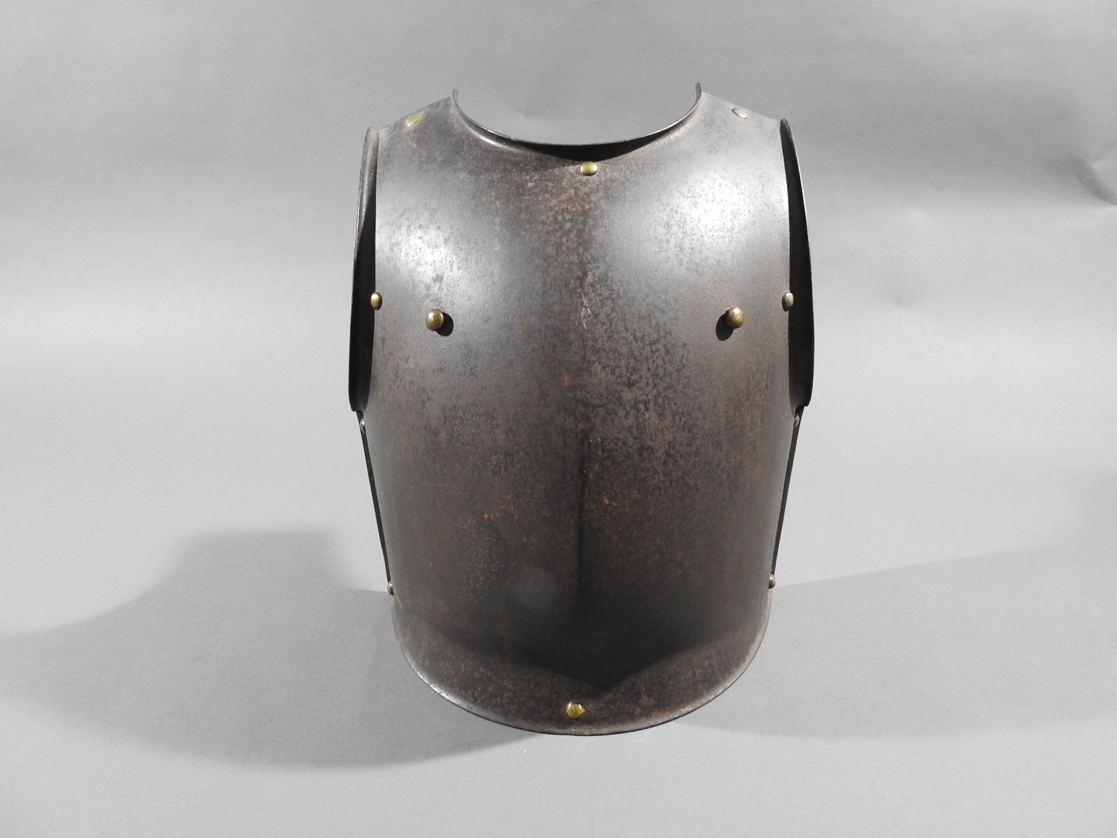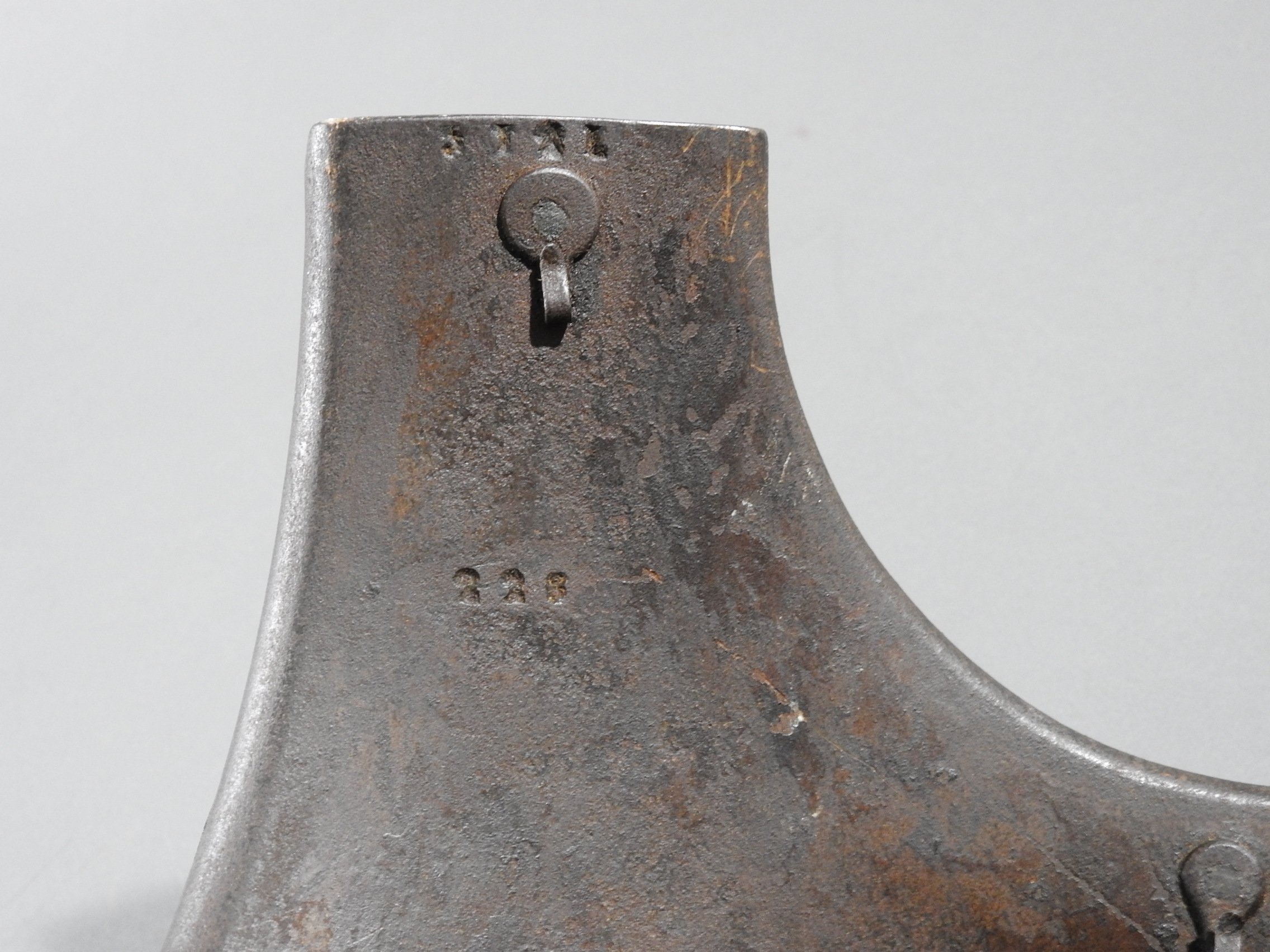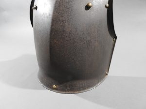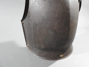 Worn by French heavy cavalry troopers, it has a heavy front plate with brass studs to the edges date and maker marks not visible however various number stamps to inside please see images