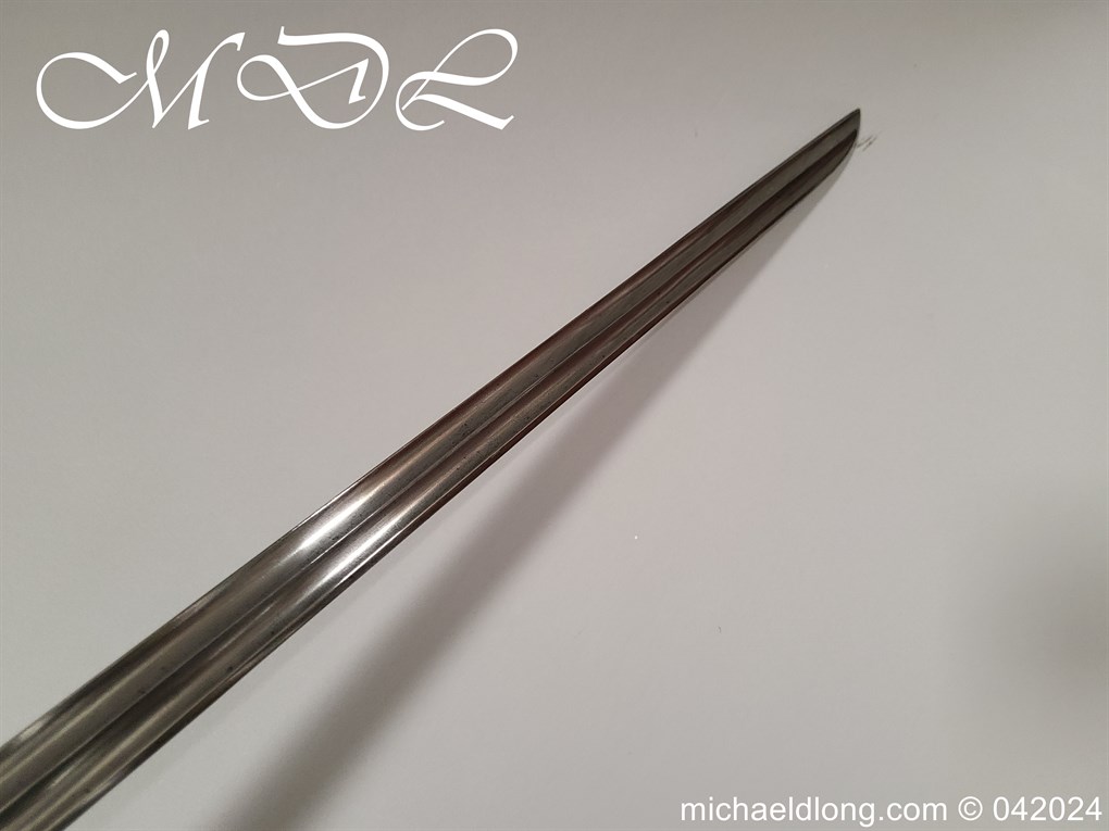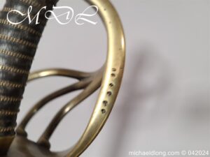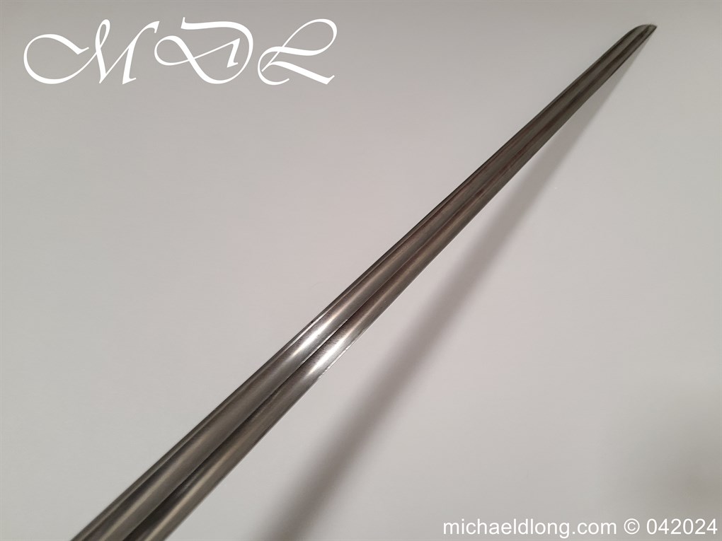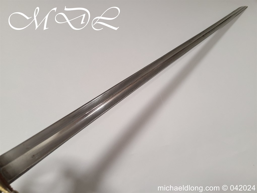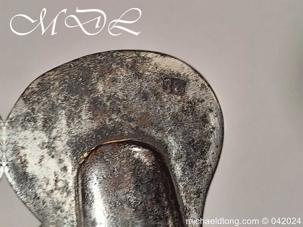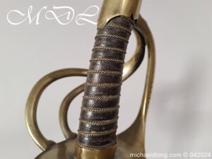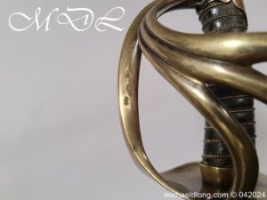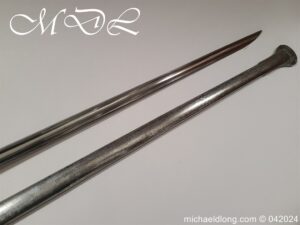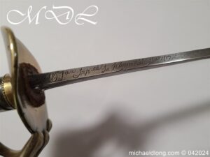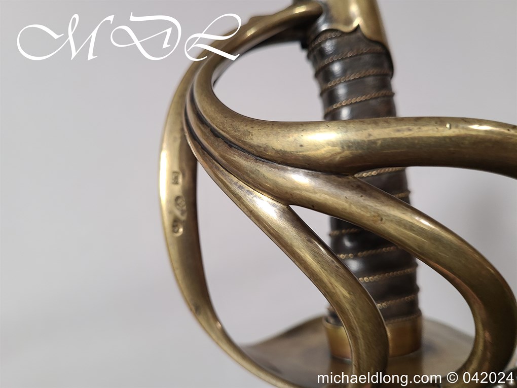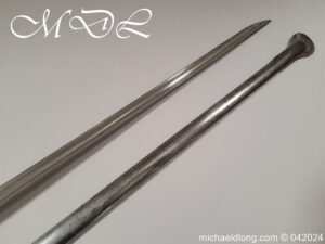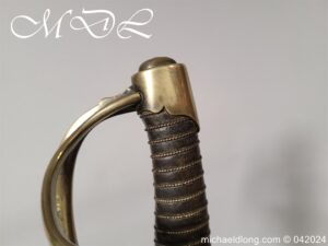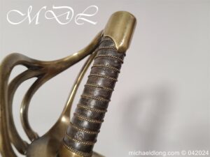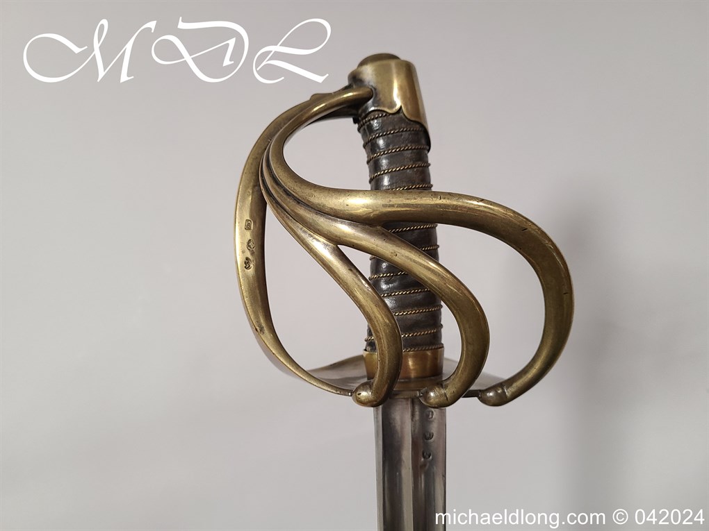 Pre Waterloo period production French Cuirassier Heavy Cavalry Sword, brass hilt with inspection stamp and numbered 90 and original leather grip secured by wire binding. The blade with original hatchet point, inspectors’ stamps and the spine marked Klingenthal and dated June 1813. The steel scabbard with inspection mark to drag and with two loose rings. Overall length 113cm the blade 98cm. Please note this a totally original sword in super condition
