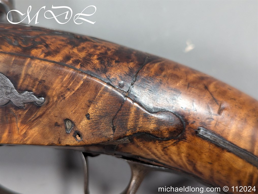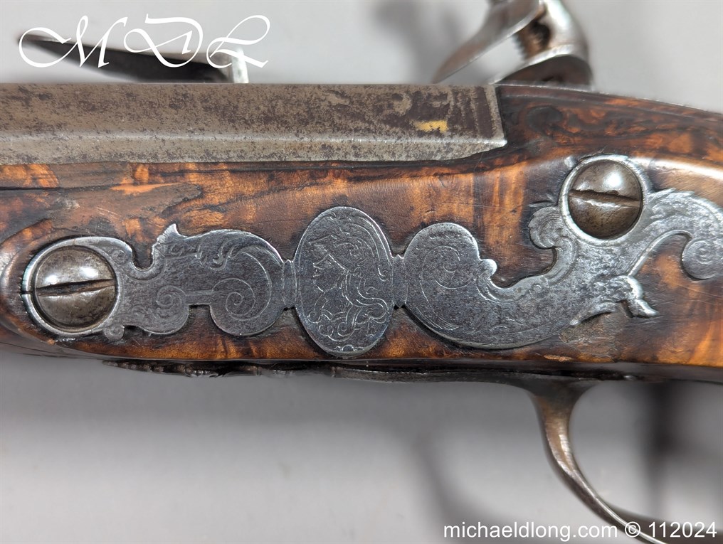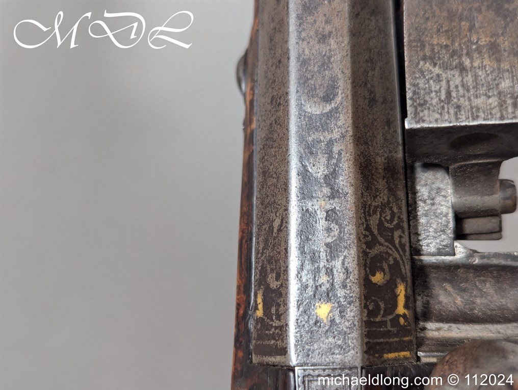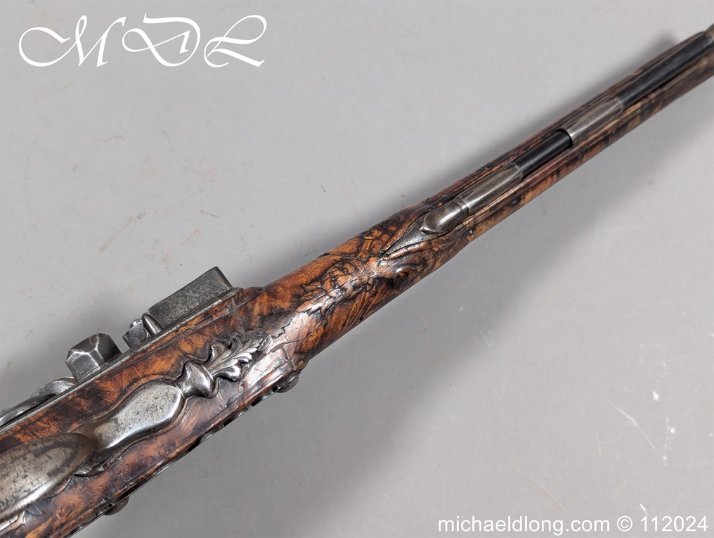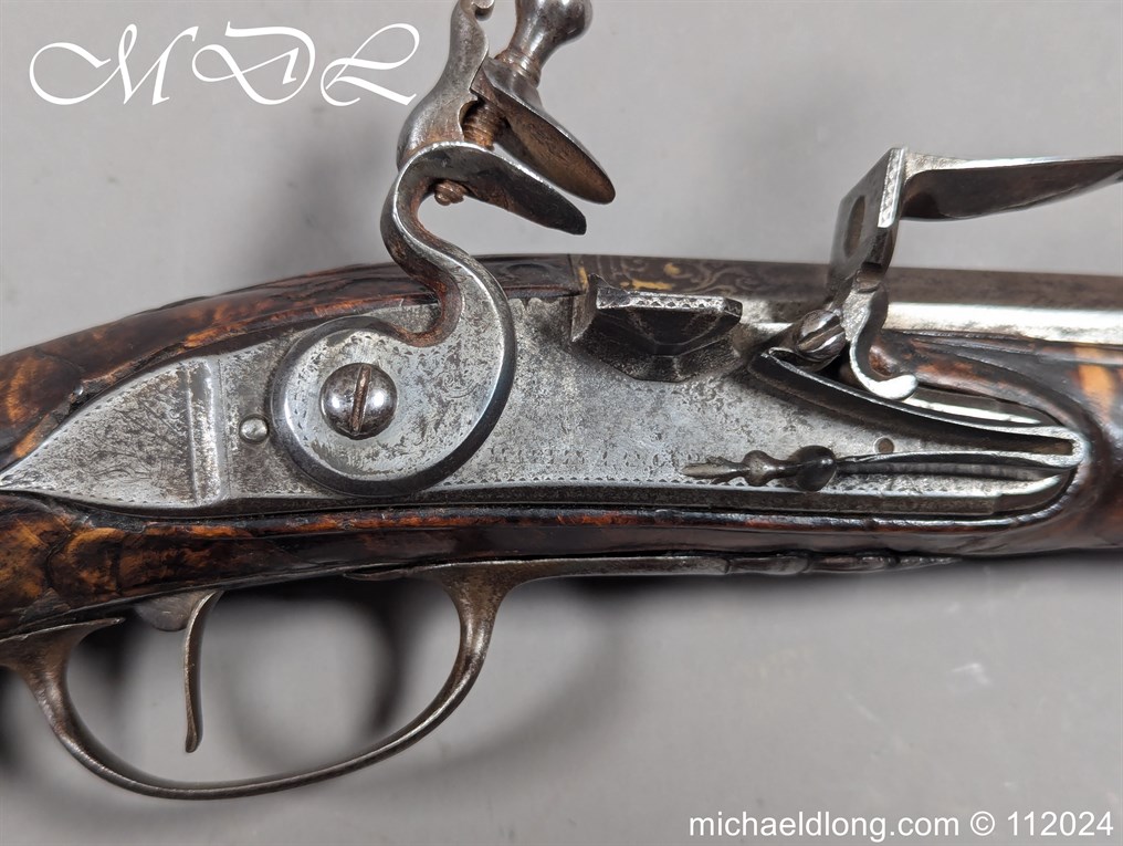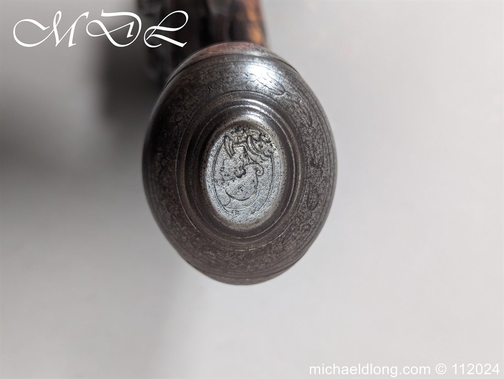 French Flintlock Pistol by Martin of Angers c 1690 Very early pistol Martin is recorded in Angers between 1680 and 1710, but his Christian name is not known. Angers was one of the principal provincial gun making centres – other significant Angers gunmakers were Boular, Bleiberg and Pierre Monlong. Although the name is very worn you can with a glass make it out. The pistol shows some age repairs to the stock and the barrel markings are also worn but visible please see images. Lock is in good working condition overall length 49cm the barrel 31cm. lease Note UK shipping free the rest of the world at cost.