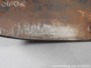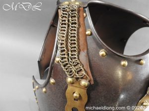 French Heavy Cavalry Cuirass – Breast and Back Plate Breast-plate, of steel with a slight medial ridge, rounded flange at the waist, flanged neck and inward-turns to the other main edges. The main edges are bordered by round-headed, brass lining rivets retaining fragments of a canvas lining-band. At either side of the chest is a stud for the shoulder-straps. The exterior with age colour, stamped at the right shoulder ZUDERELL. It is complete with back plate well marked with arsenal and dated 1833 plus size and serial number