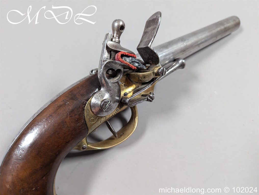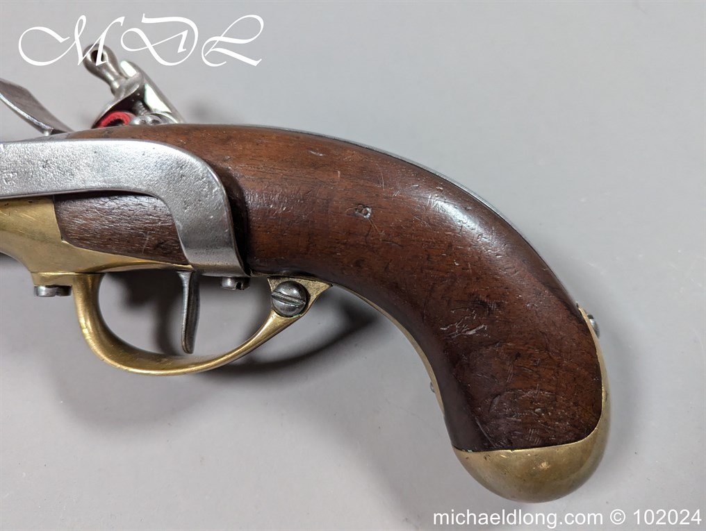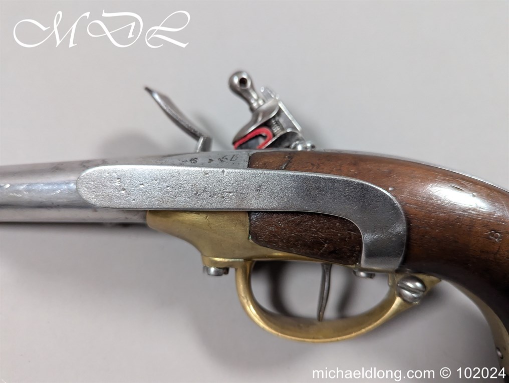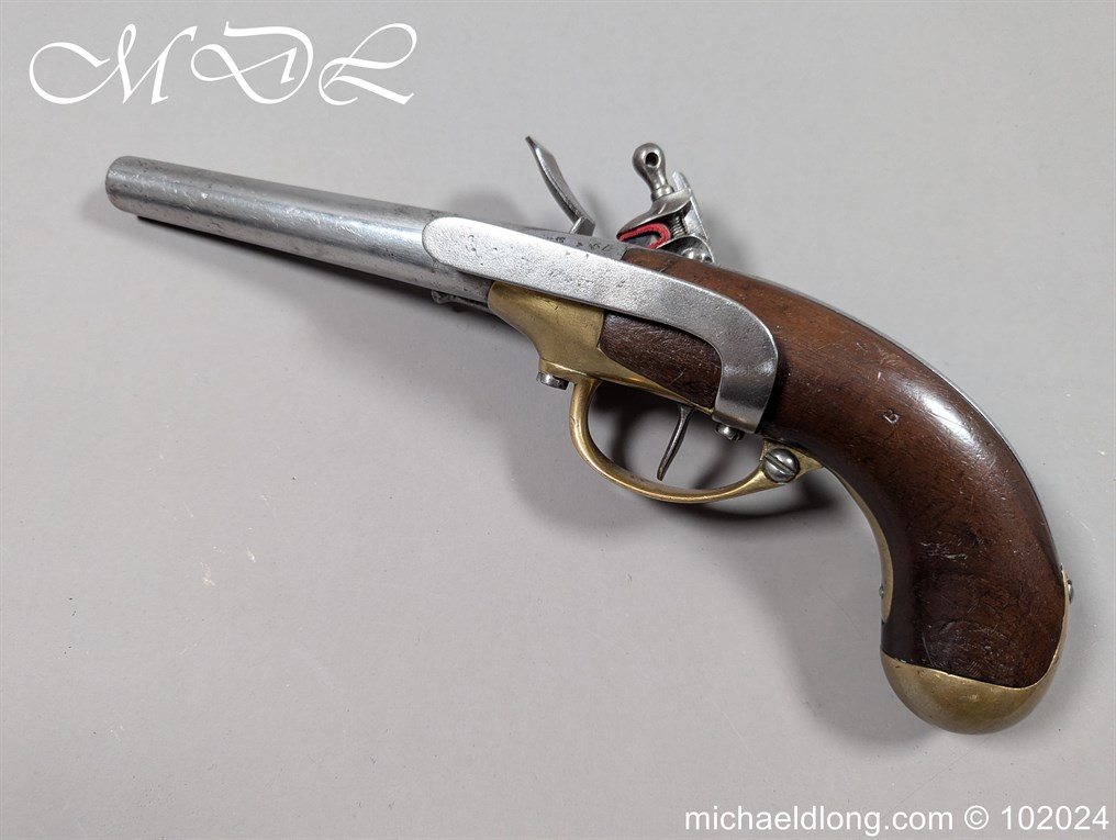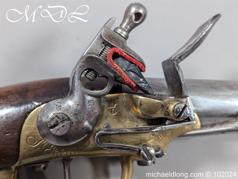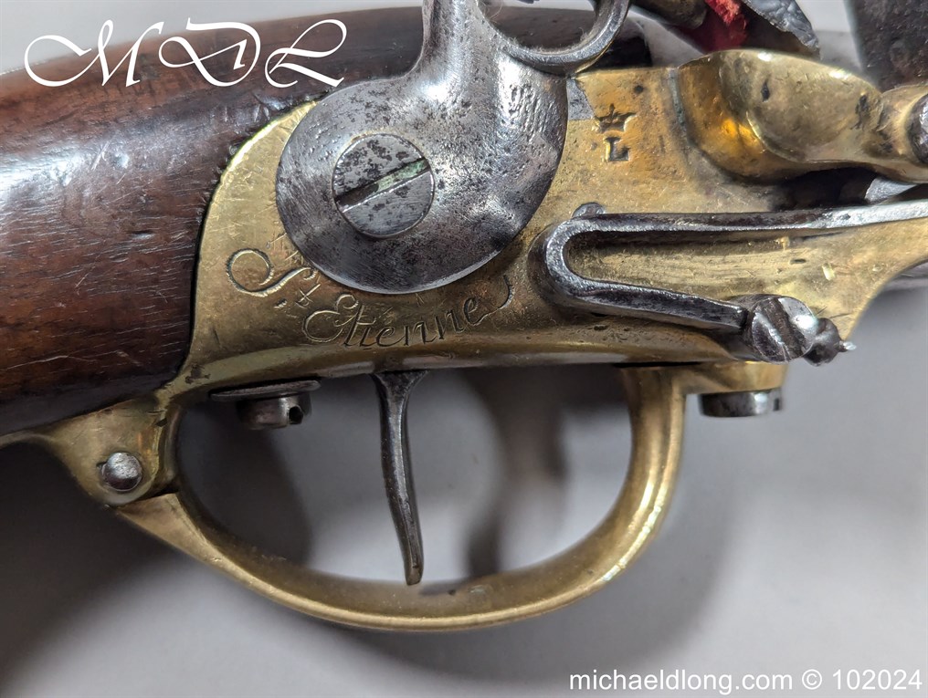 French Mle 1777 Flintlock Cavalry Pistol with belt hook dated 1779. St Etienne marking to lock plate along with L stamp of Louis XVI plus additional stamps to butt cap and stock please see images. The pistol is in very good condition and original plus works perfectly. Please note shipping to the UK is free, export shipping will be at cost.
