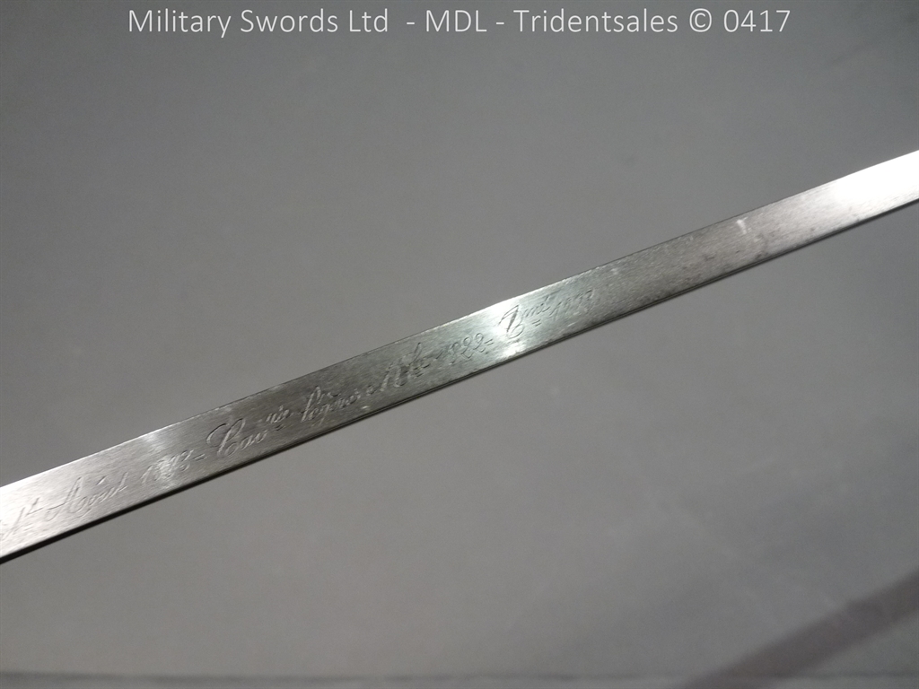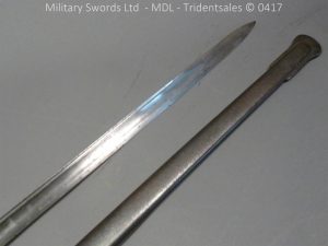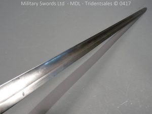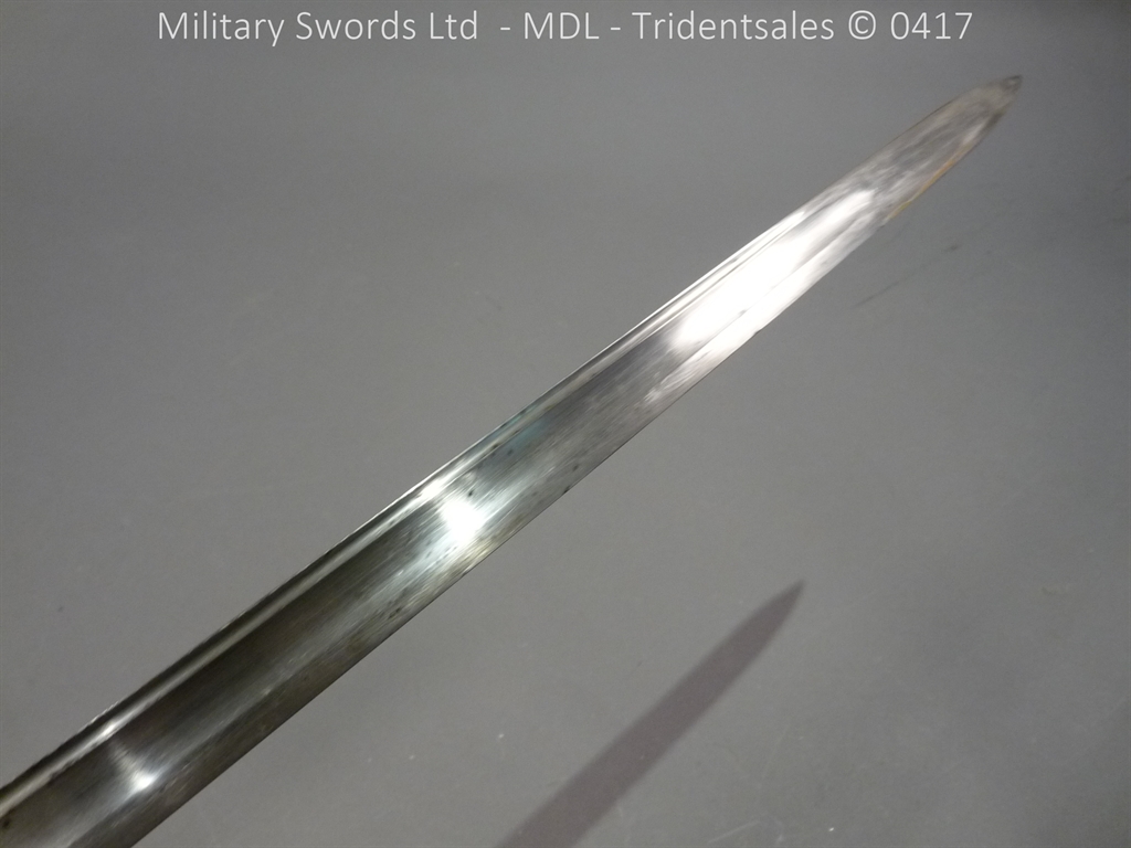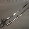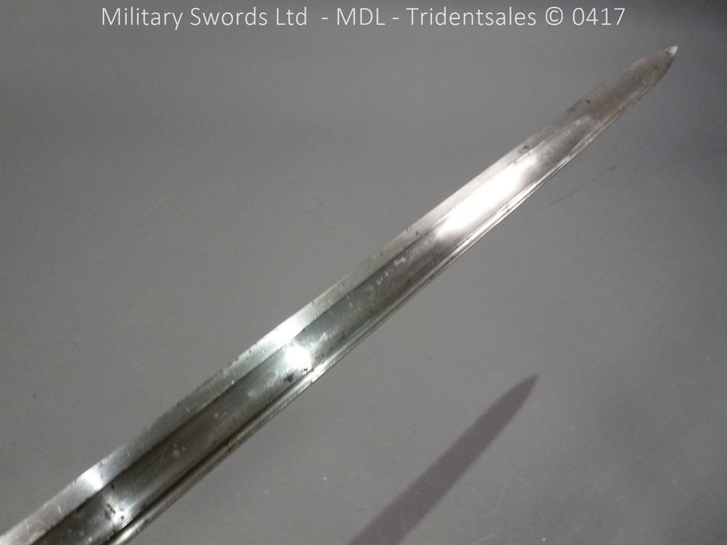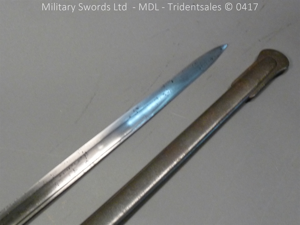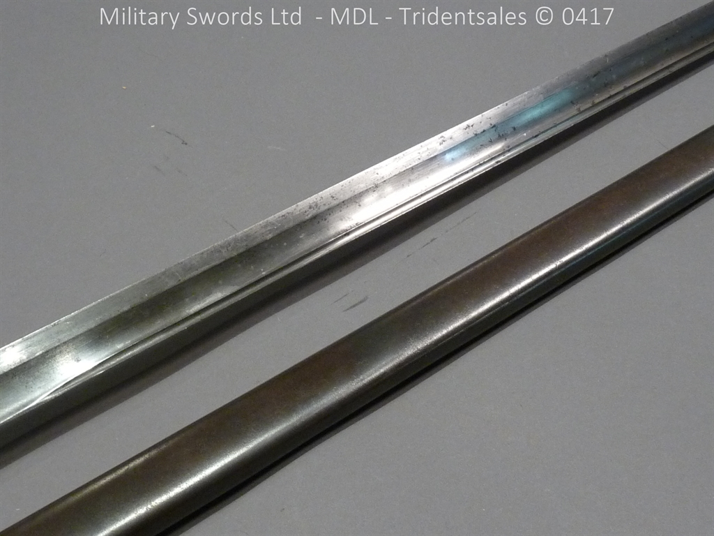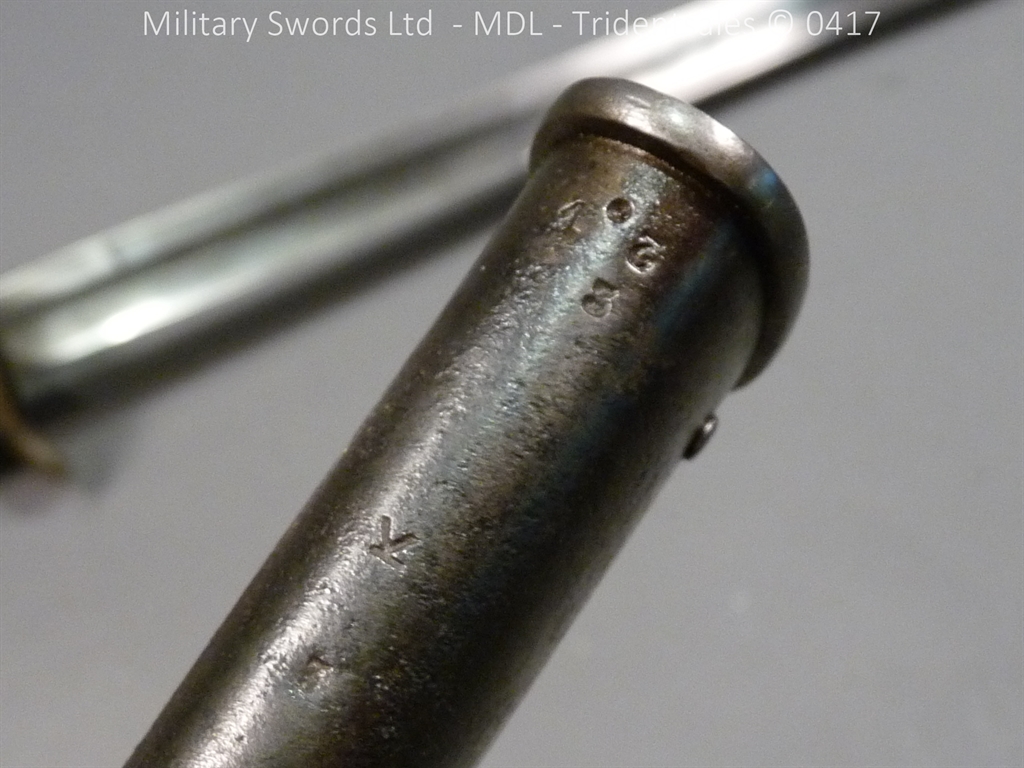 Original example, it has a brass hilt with a two bar guard with correct inspection marks, the wood handle is leather bound with brass wire, it has a straight blade which is in good condition again with inspection stamps, the spine is engraved with the manufacturer and dated 1883, complete with steel scabbard with single loose rings. Size: Overall Length 104cm / Blade 87cm