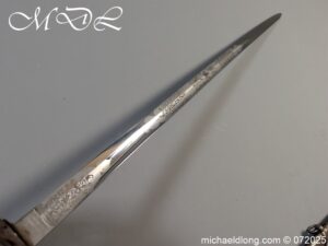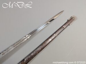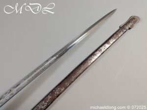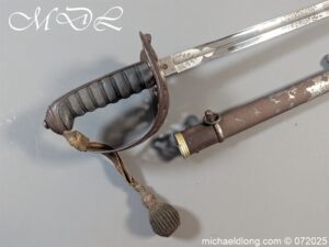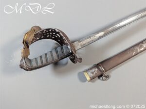 Heavy Cavalry pattern sword which is correct for Honourable Corps of Gentlemen at Arms the hilt and scabbard showing age but the blade is in stunning condition. Super etching including V R Crown and portcullis with side chains which is their Corp badge. It is complete with full dress knot. Lieutenant-Colonel Sir Gustavus Hume 25 February 1826 – 16 June 1891 was a soldier in the British Army who served during the Crimean War 1854–56 and the Indian Rebellion of 1857. He took part in the Battle of the Alma, during which he was wounded, the Battle of Inkerman, the Siege of Sebastopol.