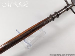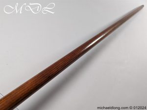 Georgian Sergeant’s Spontoon 30.5cm head with double edged blade over cross bar with pointed terminals, all of which unscrew from the top shaft fitting. The wood shaft is 177cm in length and complete with pointed steel shoe. Sergeant’s Spontoon were carried by a Sergeant in the British Army as a weapon of defence, and a symbol of discipline and authority. Please note shipping to the UK is free however worldwide would be at cost due to the overall length.