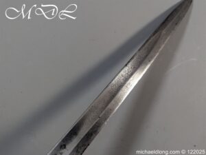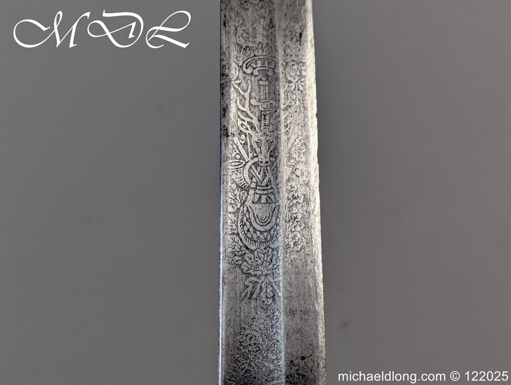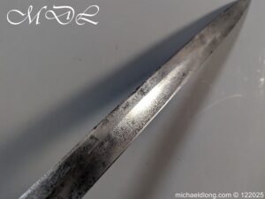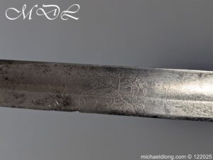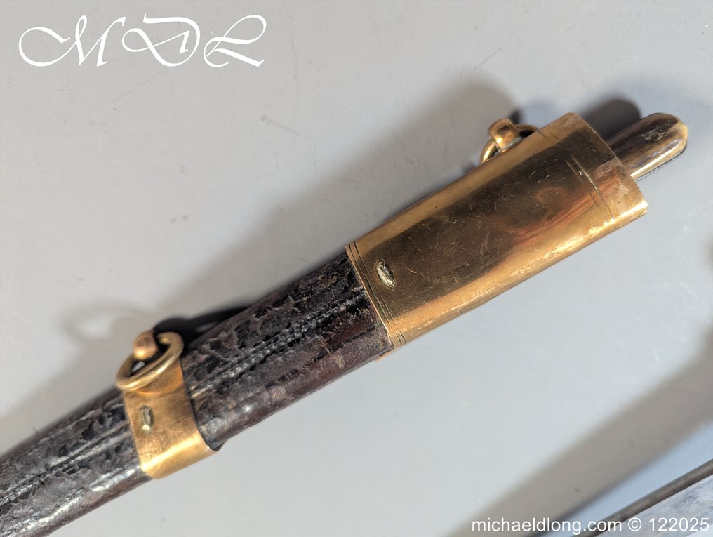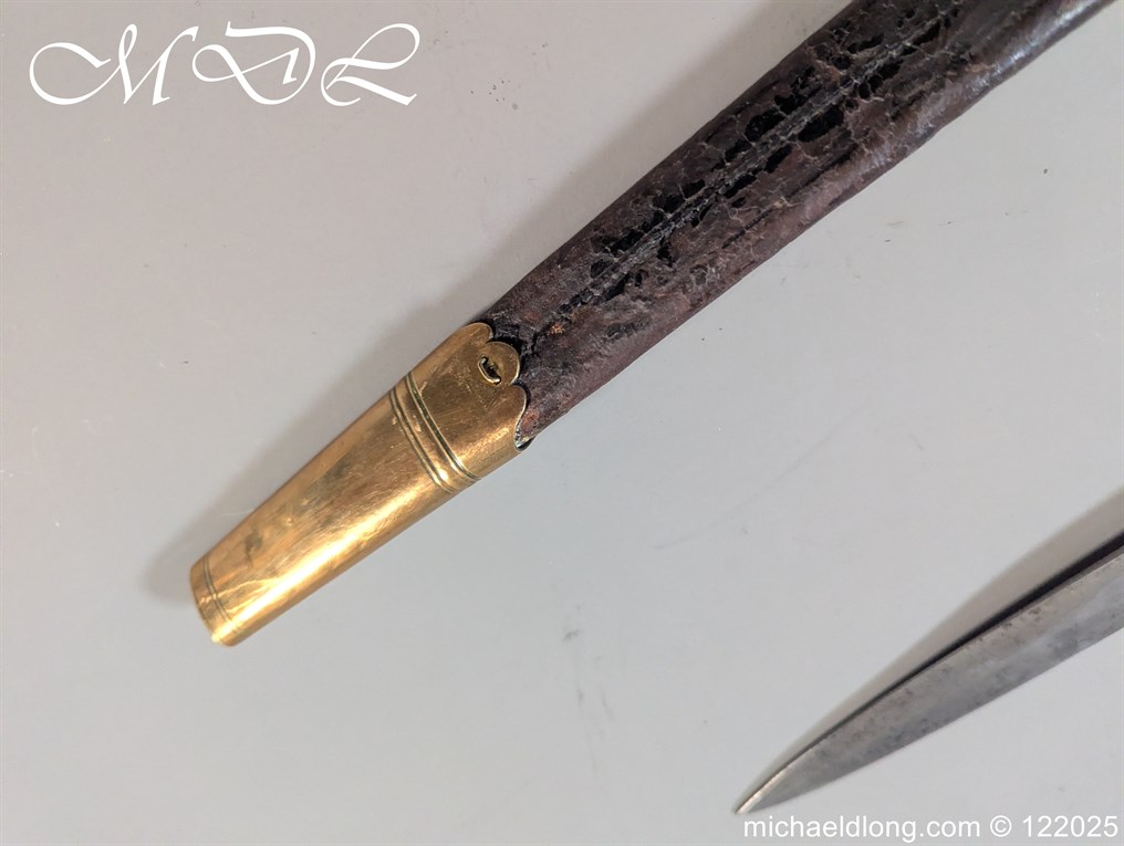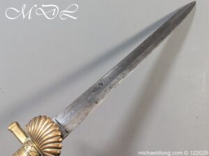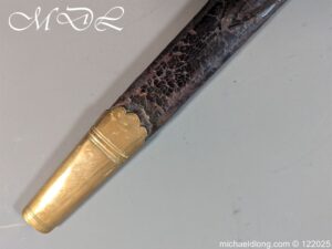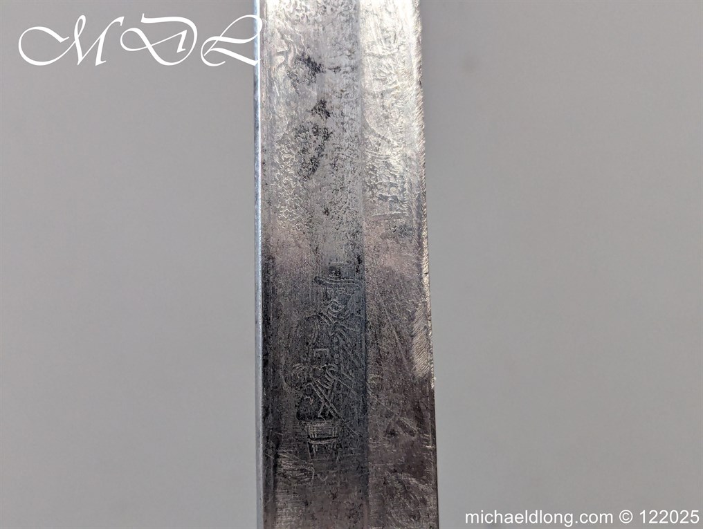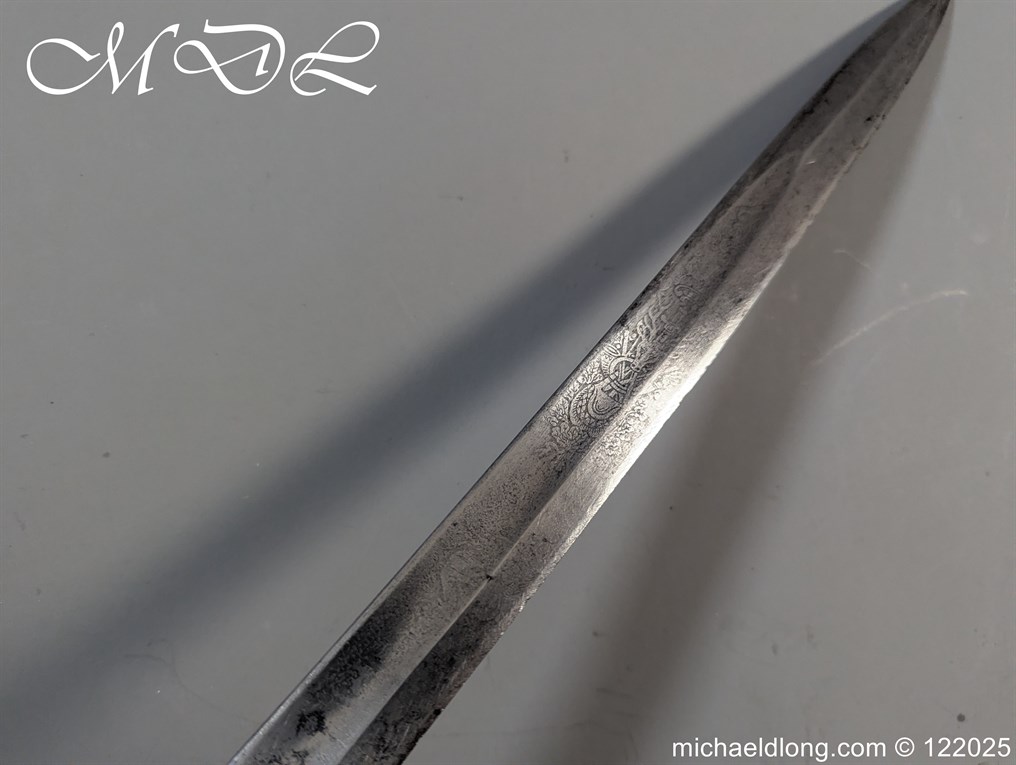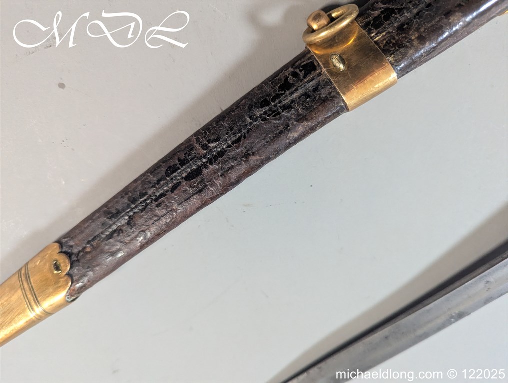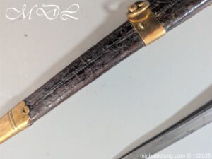 German 19th Century Hunting Hanger by Weyersberg Kirschbaum & Cie. Super quality, gilt brass hilt with riveted stag horn grips and small shell guard and straight quillions. The blade engraved with hunting scene’s and wildlife and stamped with markers mark under the shell guard W K & C – Weyersberg Kirschbaum & Cie was the amalgamation of two very old Solingen family companies in 1883 Complete with leather scabbard with matching mounts and ensuite knife. Overall length 20.5 inch the blade 15.5 inch