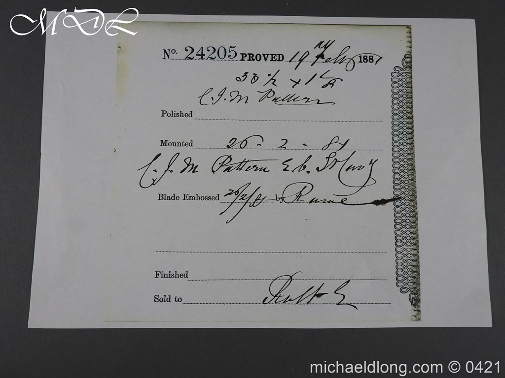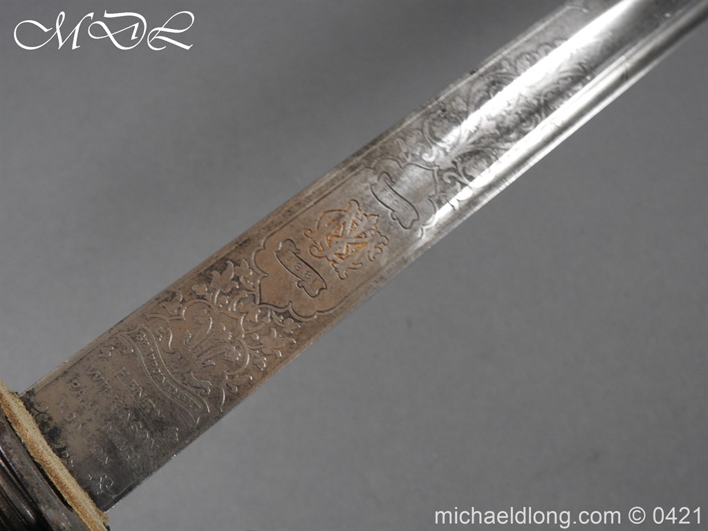 With floral decoration and makers details Henry Wilkinson London spine numbered 24205 complete with steel scabbard and copy of the Wilkinson sword register