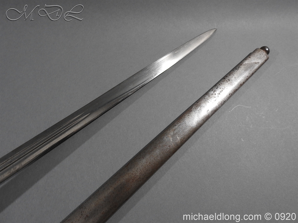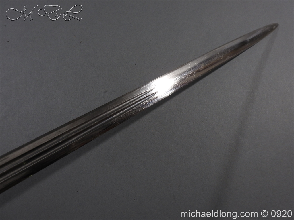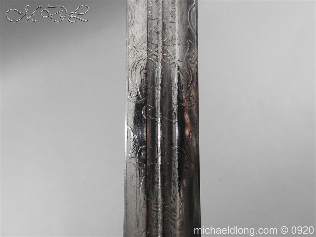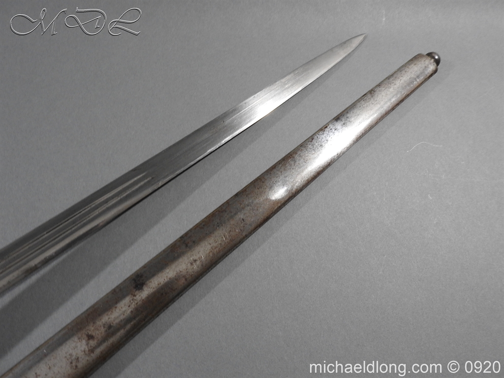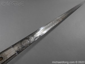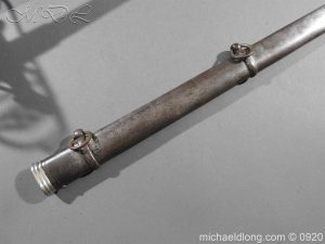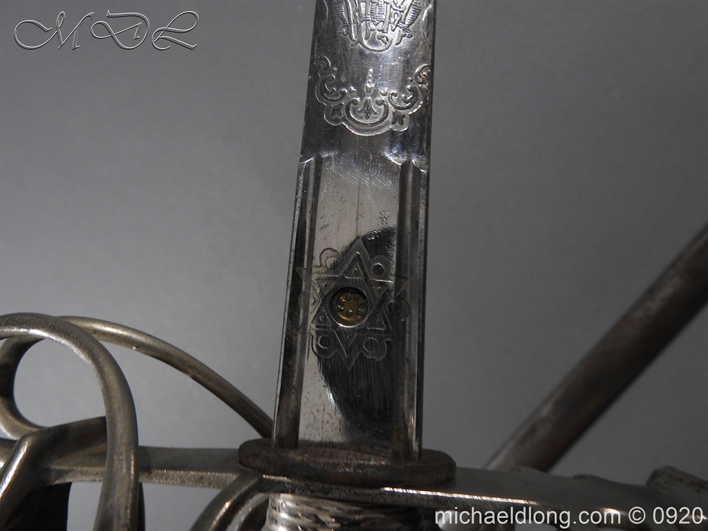 Scottish Gordon Highlanders Officer’s Sword Victorian nice regulation basket with fish skin grip and fringe. The board sword blade well etched with VR and crown the reverse with regimental badge and owners initials in the form of a monagram so very hard to read all surrounded by floral decoration. Retailed by Marshall and Aitkens Edinburgh and complete with steel scabbard overall length 40 inches blade 33 inches Although the monagram is hard to read and made ip of 4 initials some research has been done and it is possible the sword belonged to BAIRD, ALEXANDER WALTER FREDERIC – BAIRD, ALEXANDER WALTER FREDERIC, Lieutenant, was born 2 October 1876, son of Sir Alexander Baird, Baronet, and the Honourable Annette Palk, daughter of the 1st Baron Haldon. He was educated at Eton (Cricket Eleven, 1894, 1895), and New College, Oxford, and joined the Army 15 May 1897, as a Second Lieutenant in the Gordon Highlanders; was