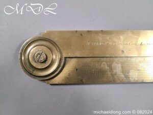 Gunners Brass Calipers by Wakins London c 1830 – 1840. In super condition and of high quality construction with steel inserted tips, the arms marked with bore size and gummers calculations. Maker marked Watins Charing Crofs London this set is one of the largest I have seen and have a good age patina, overall length 57cm