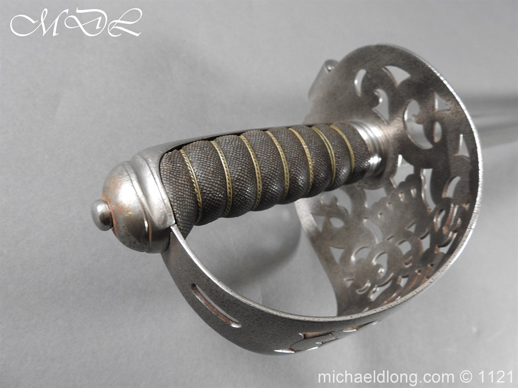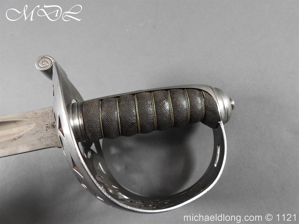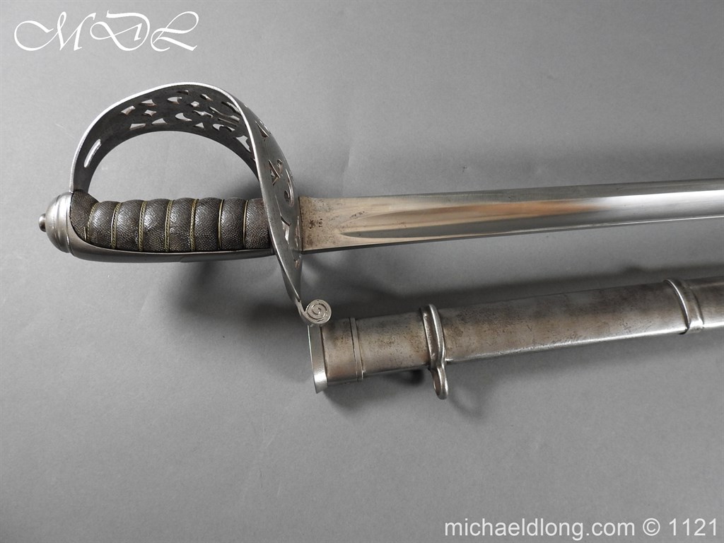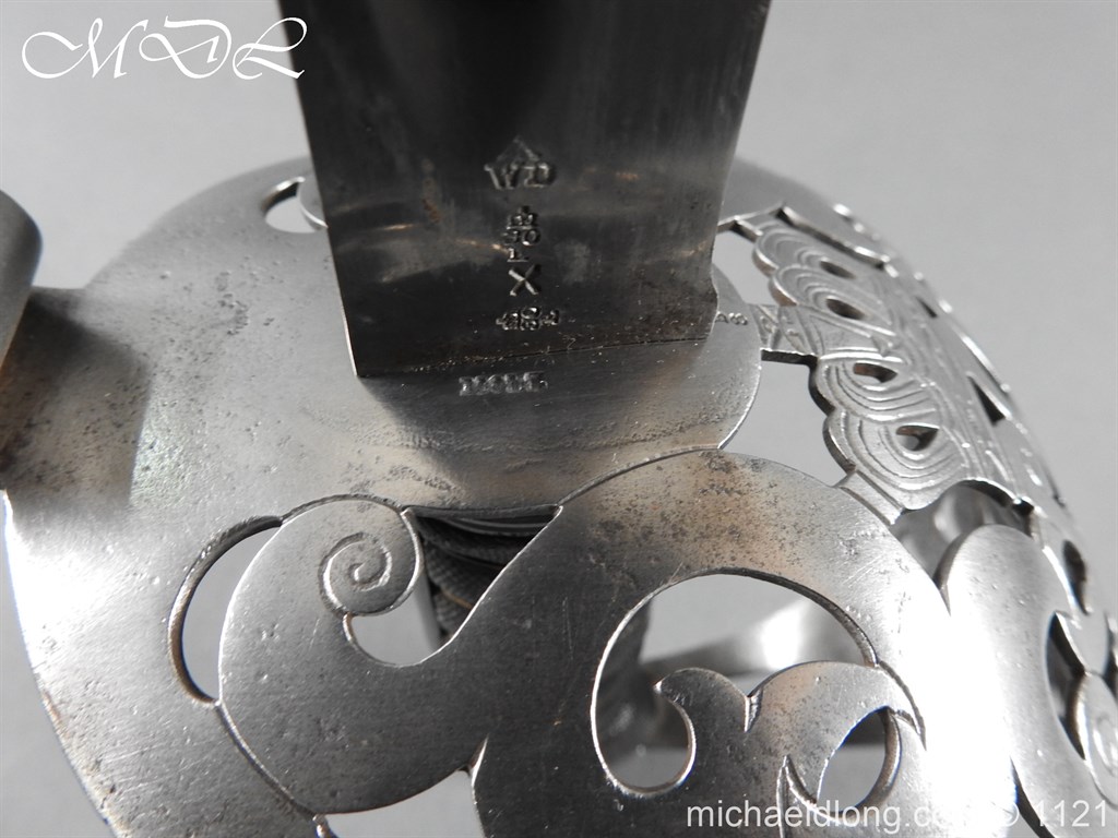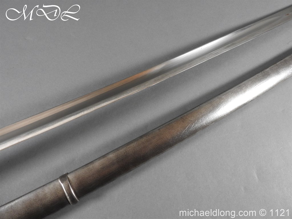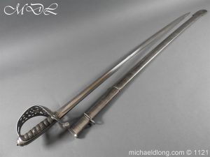 Household Cavalry 1888 Cavalry Troopers Sword rare sword to find in this condition The steel scrolled basket hilt incorporating the Household Cavalry motif and Victorian Crown with makers name Mole and inspection stamps. The blade slightly curved with spear point is stamped with various inspection and issue mark plus 91 date issued 1891 and WD. Complete with steel scabbard single fixed ring and again dated 91 with issue stamp. Overall length 43.5 inches the blade 37.25 inches